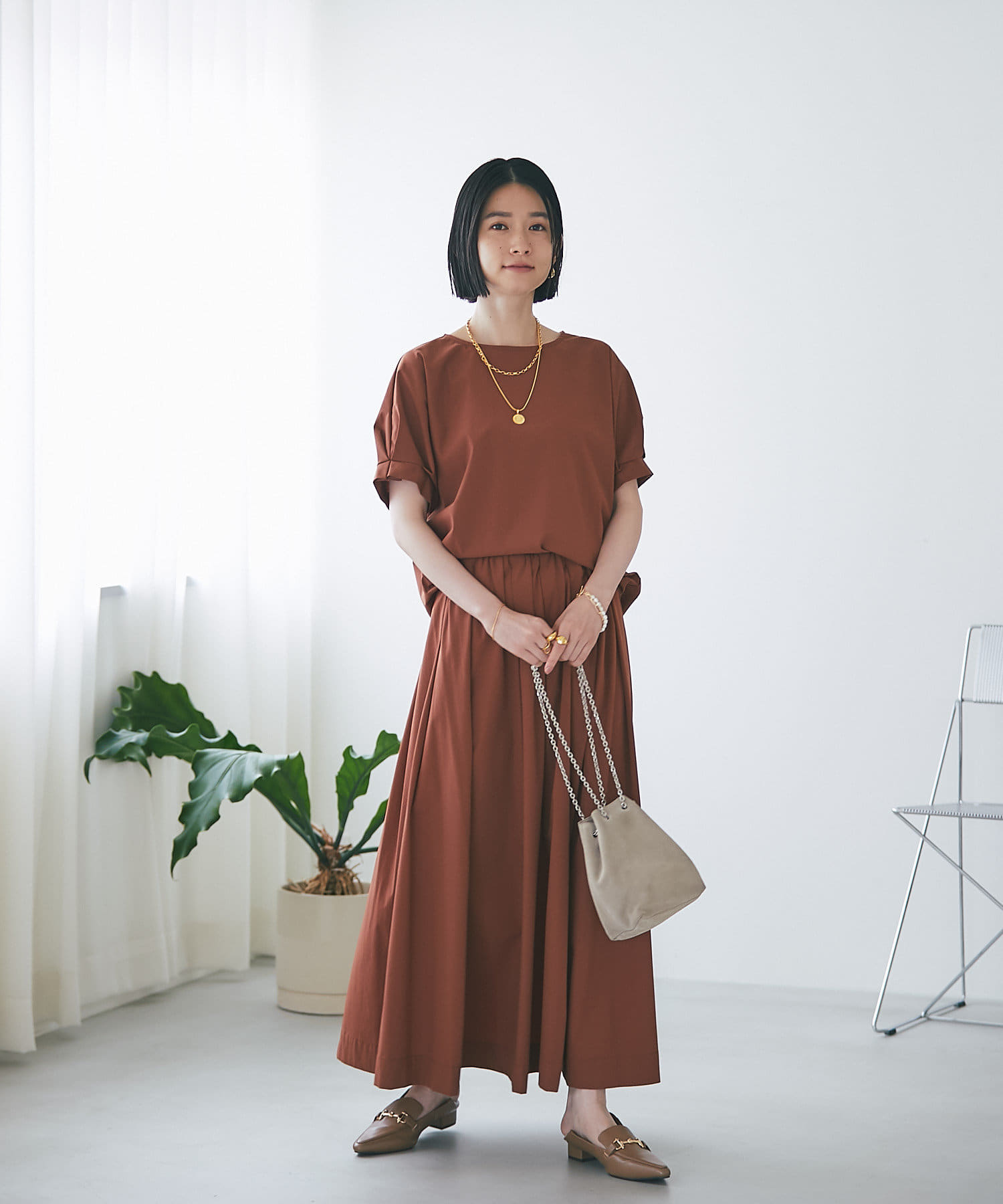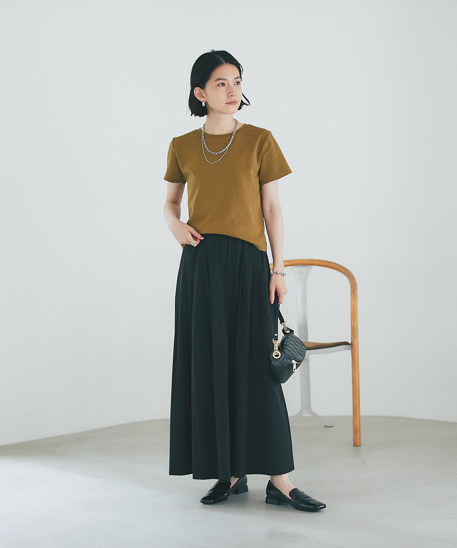 シンプルなTシャツスタイルもシックで秋らしい着こなしにスイッチ可能な色展開が魅力。