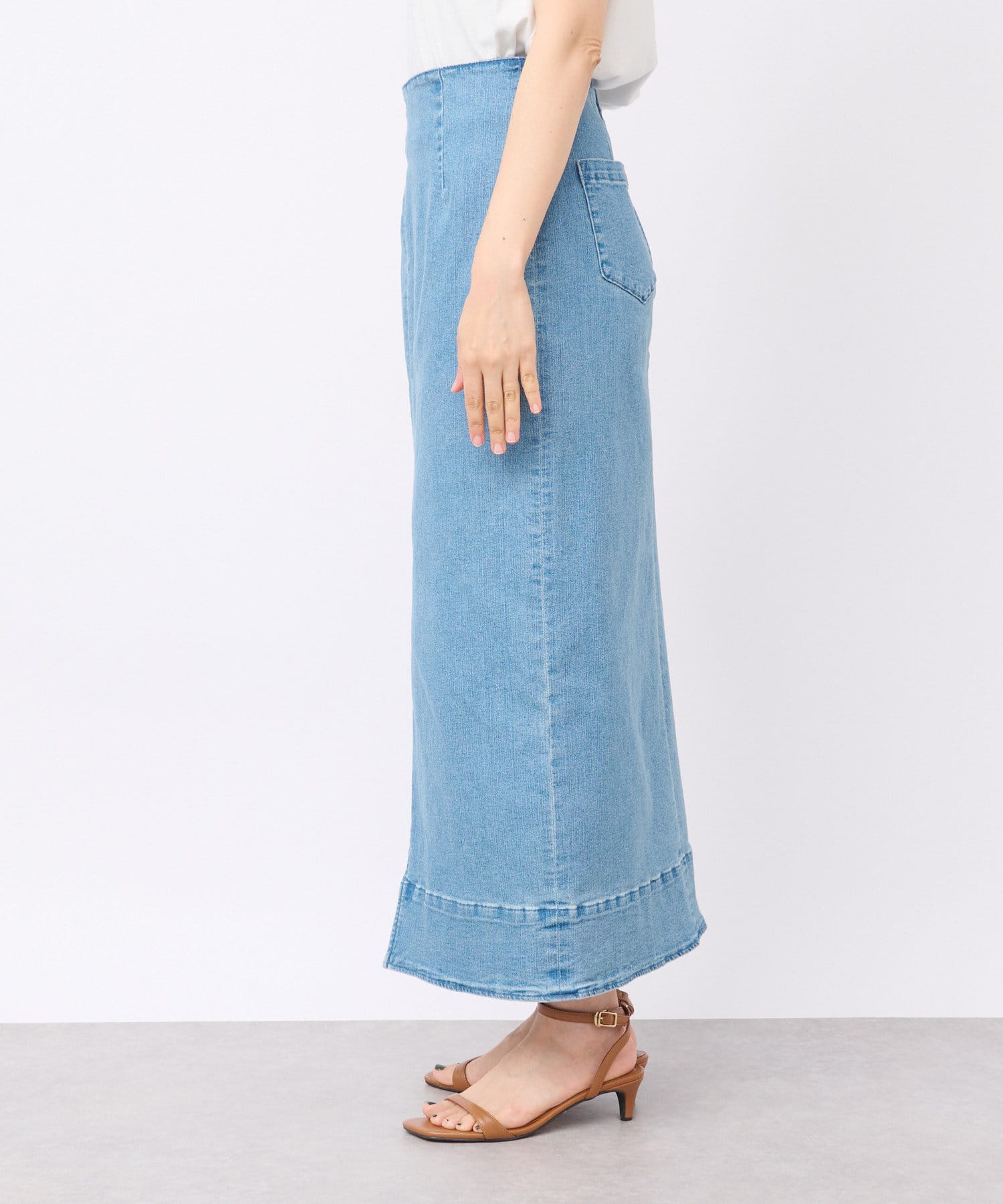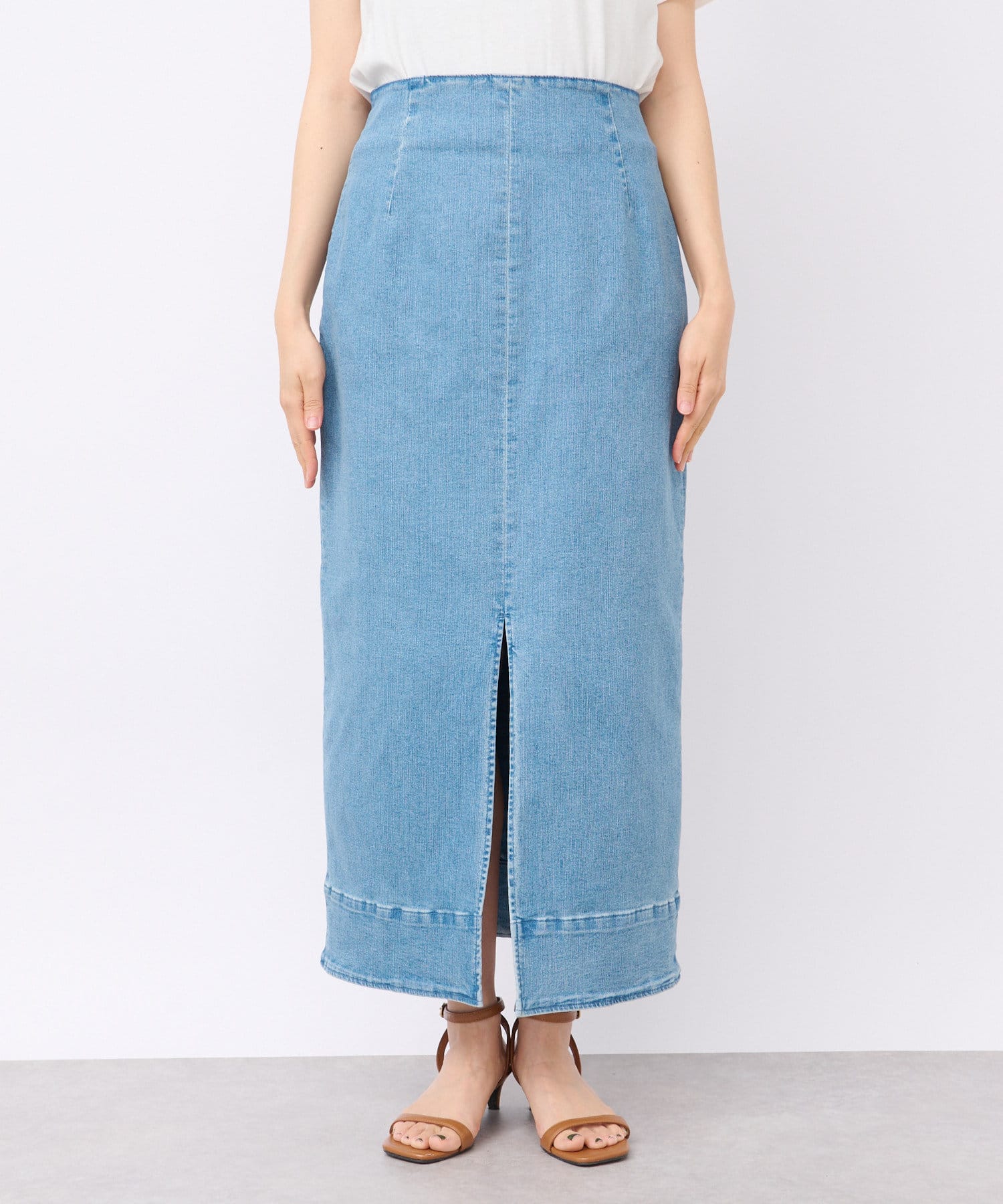 カジュアルな印象の強いデニム素材ですが、無駄をそぎ落としたすっきりとしたシルエットで大人の方にもオススメのデニムスカート。