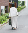 フレアなのにストンと落ちるシルエットで、落ち着いた品の良い雰囲気に。