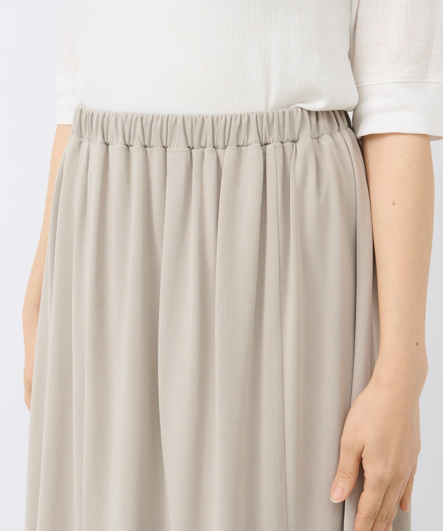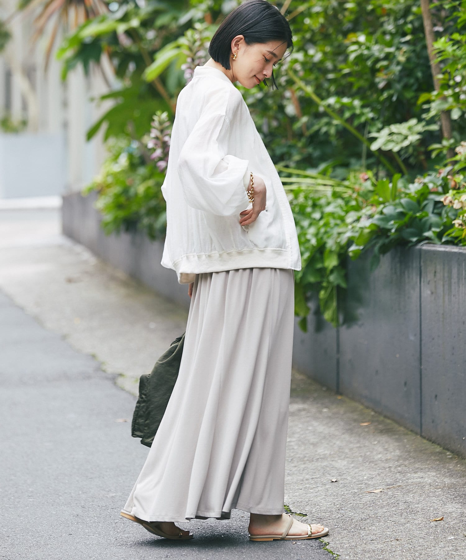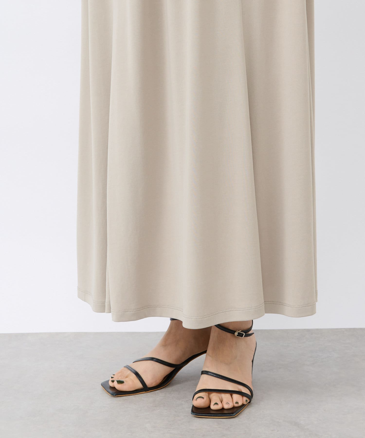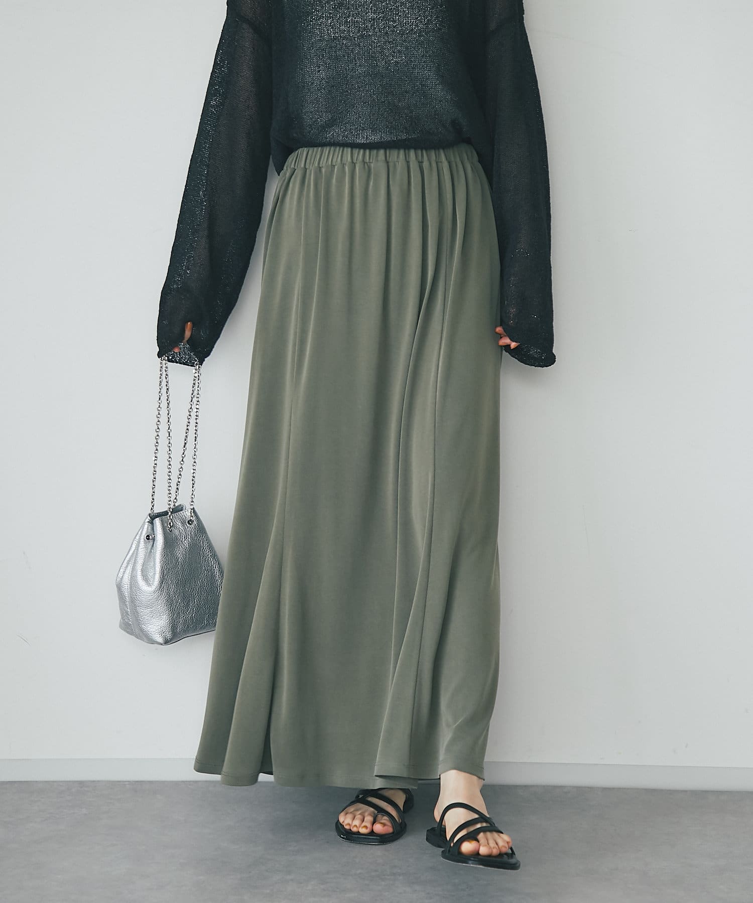 フレアなのにストンと落ちるシルエットで、落ち着いた品の良い雰囲気に。