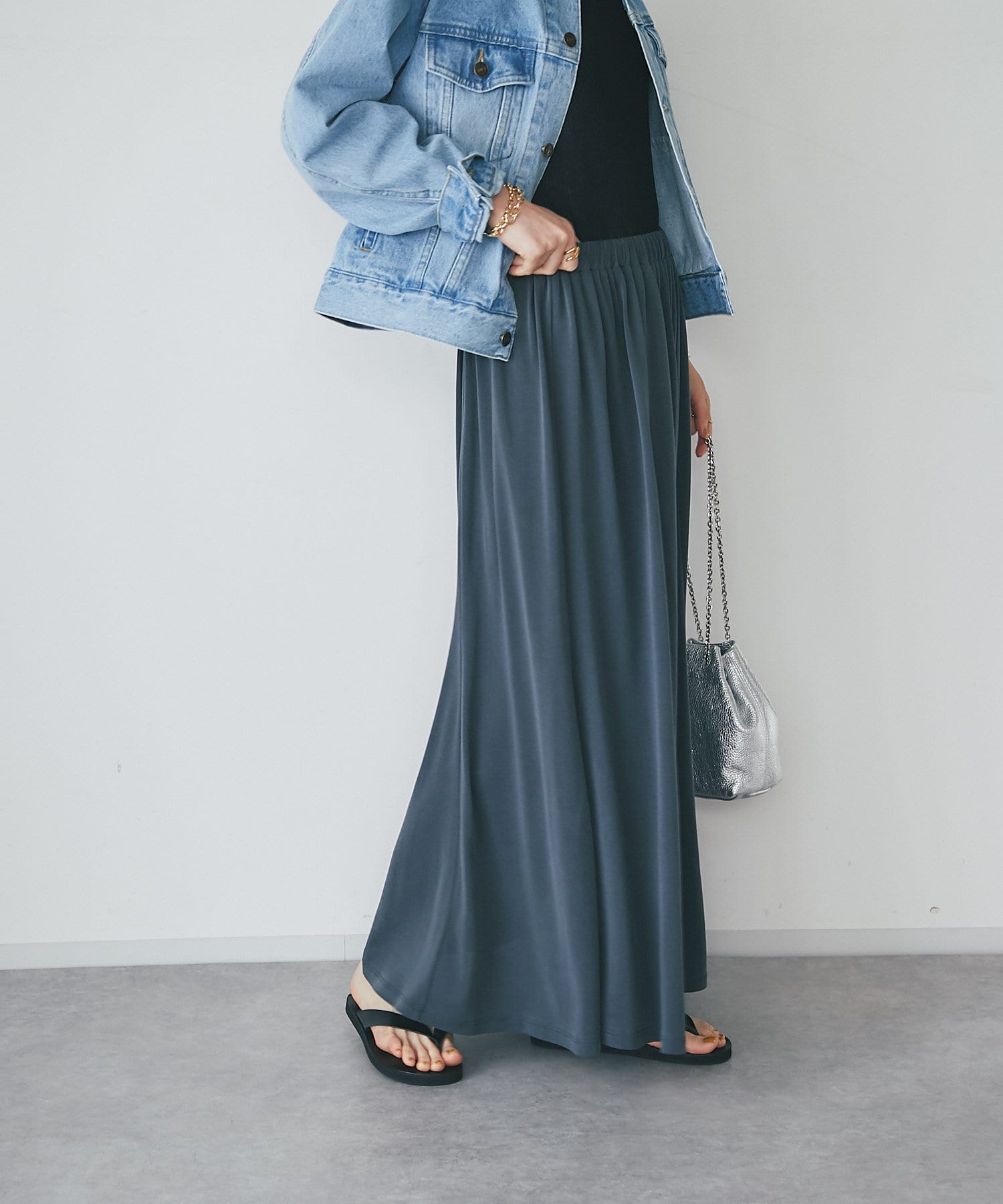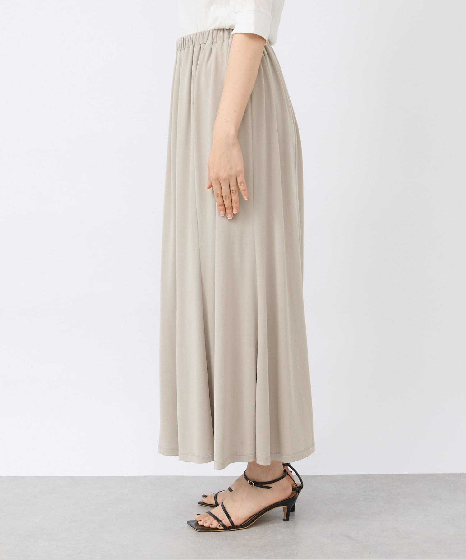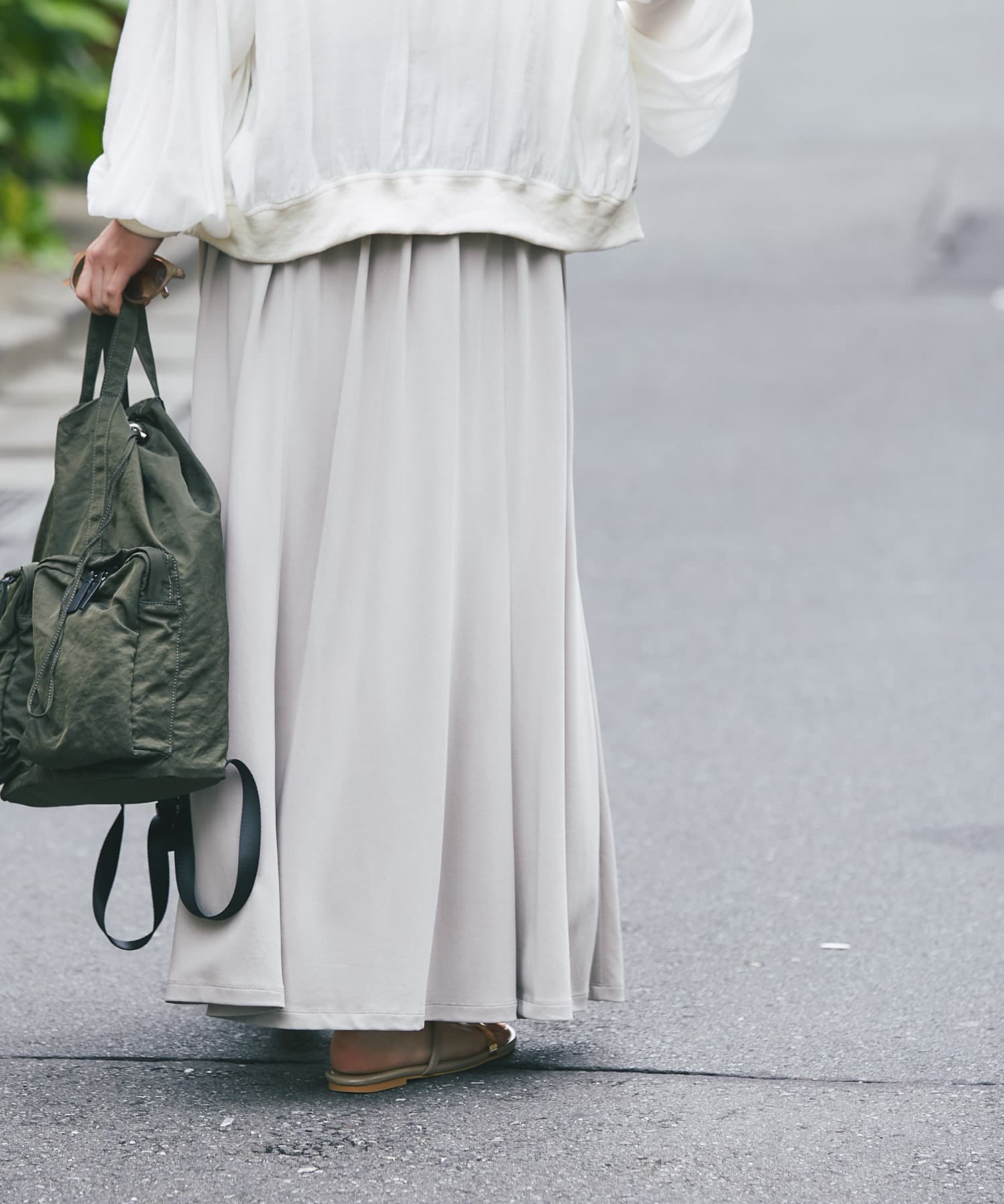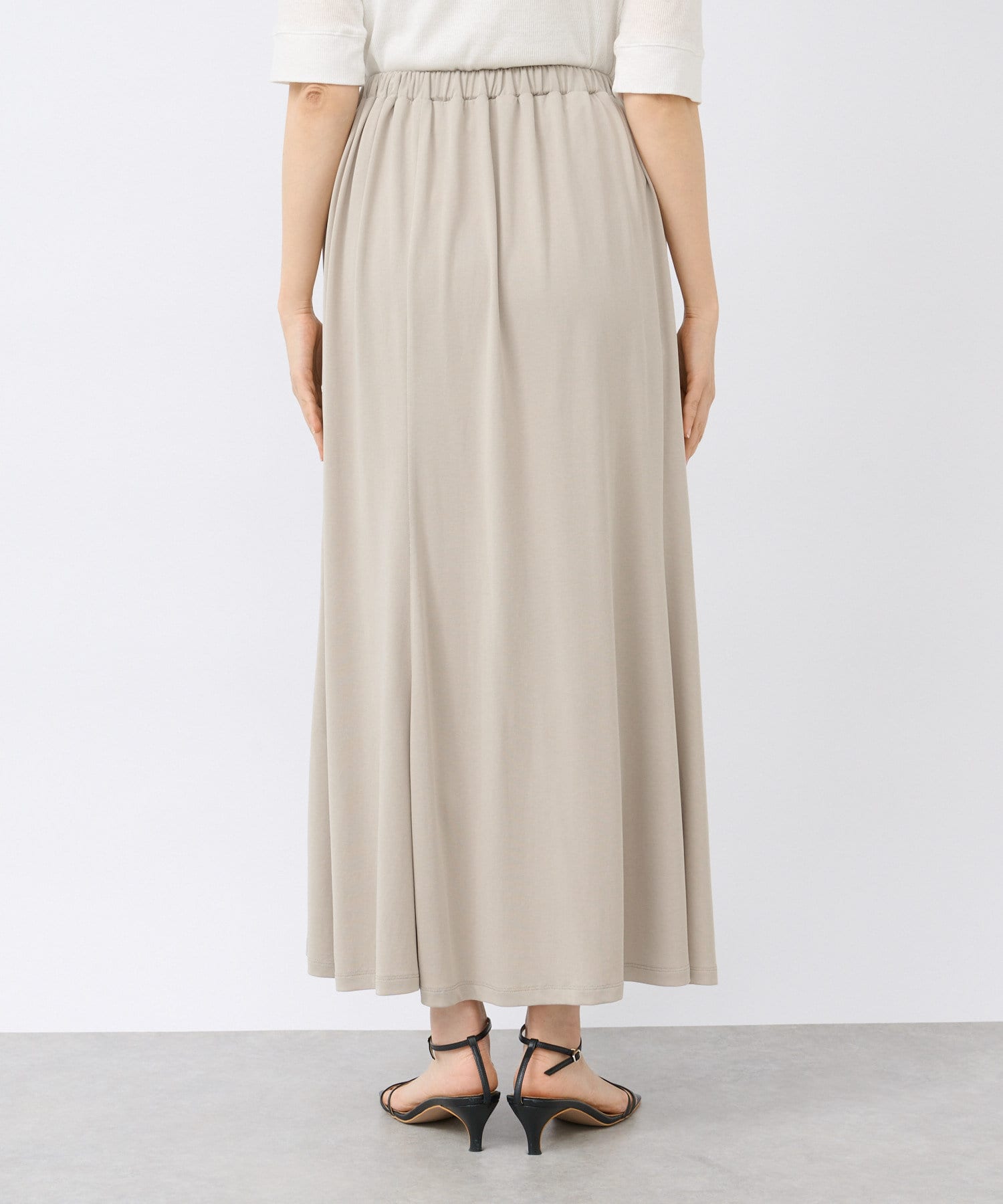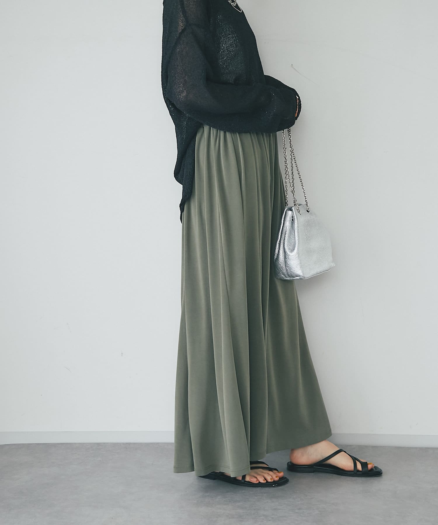 フレアなのにストンと落ちるシルエットで、落ち着いた品の良い雰囲気に。