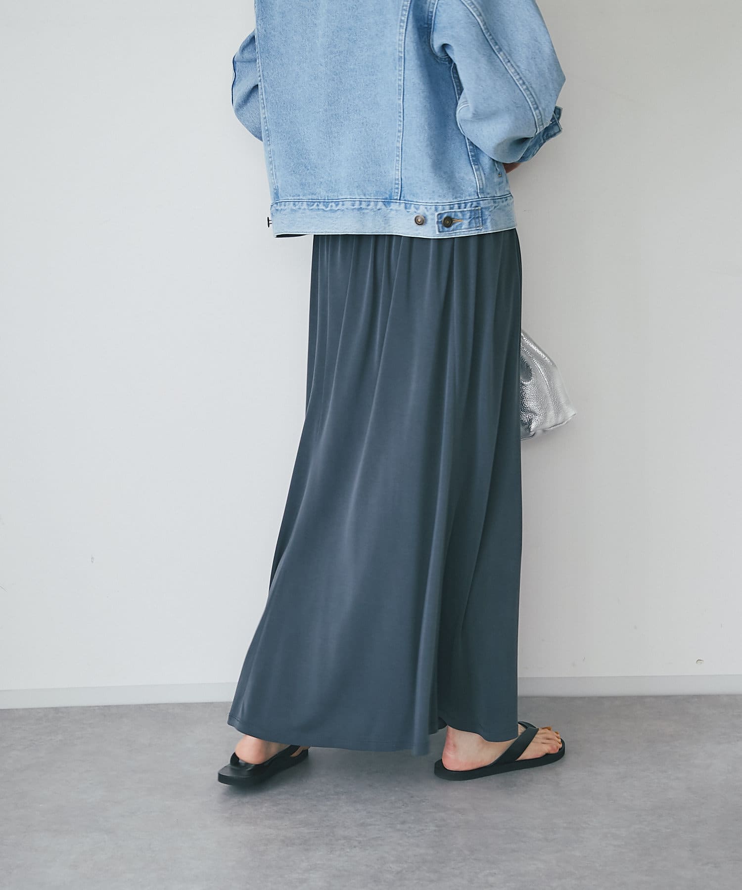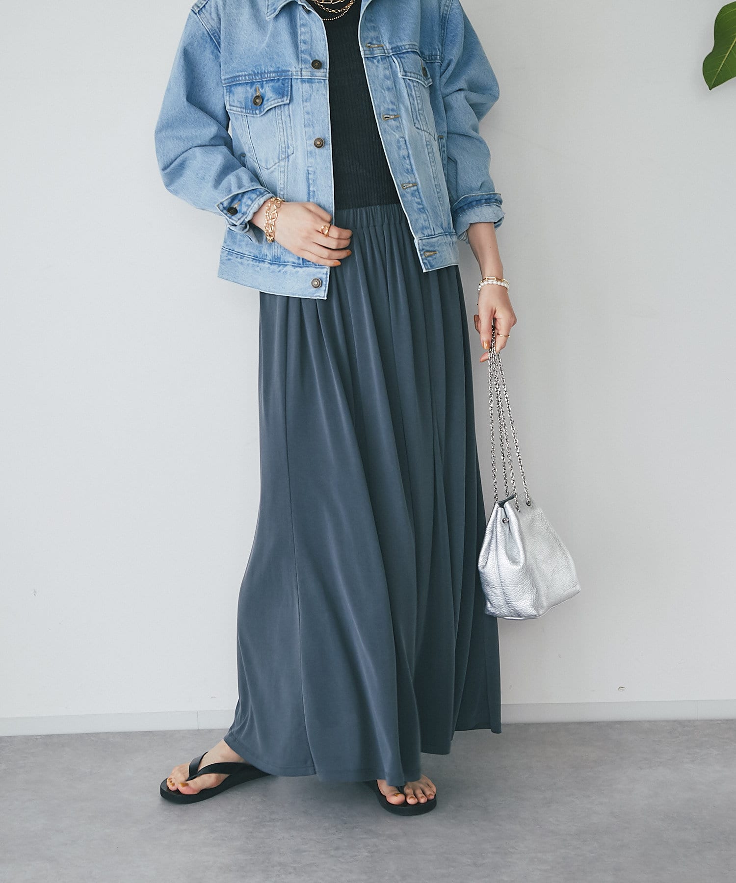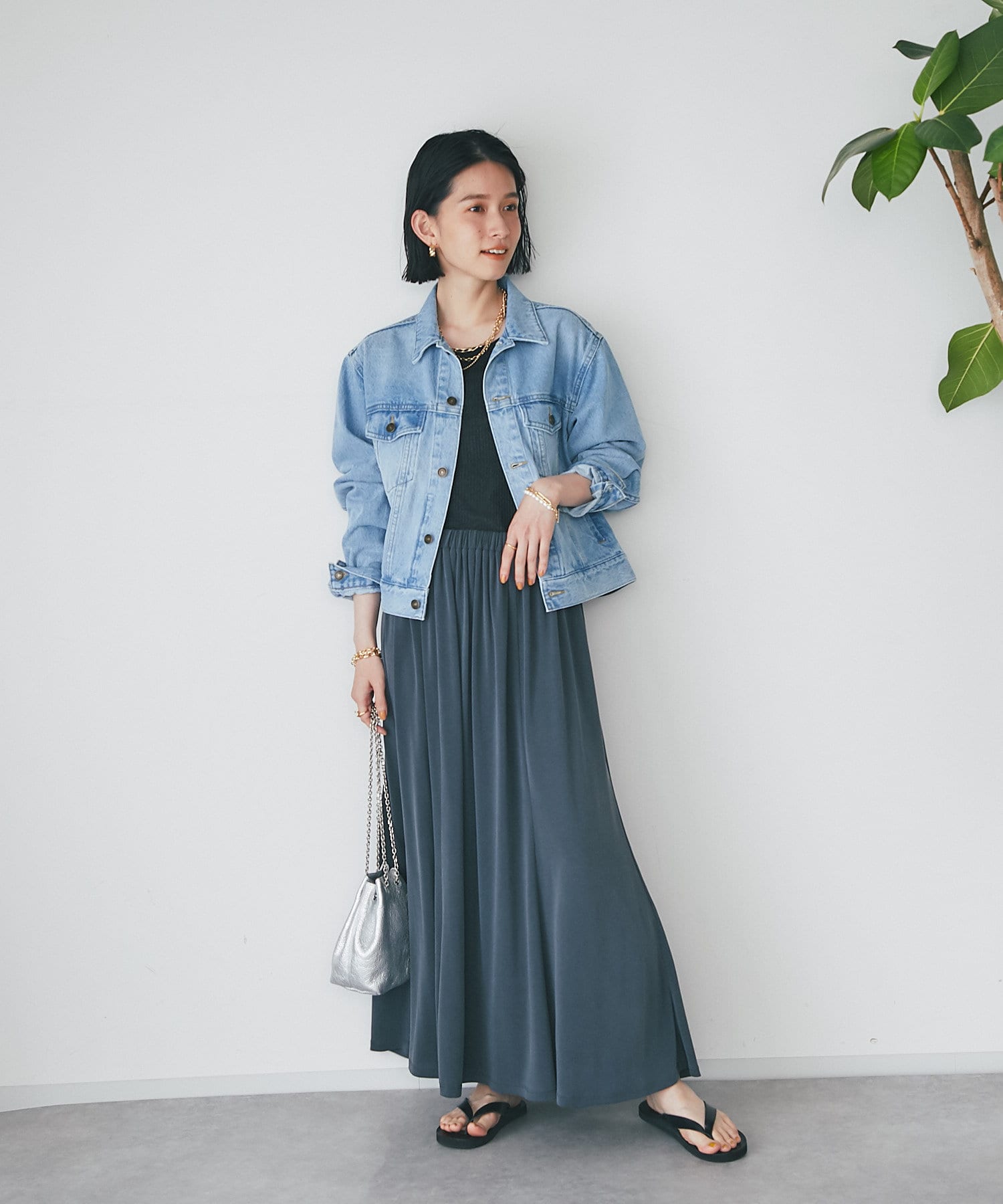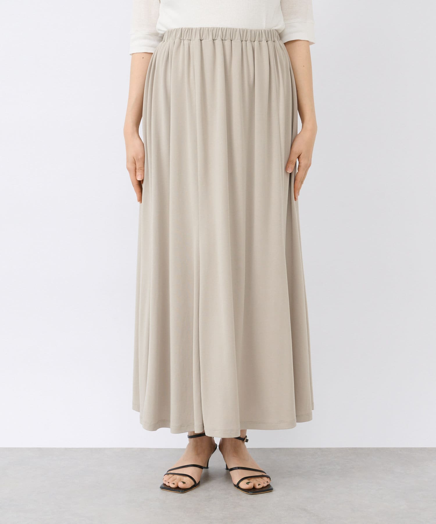 フレアなのにストンと落ちるシルエットで、落ち着いた品の良い雰囲気に。