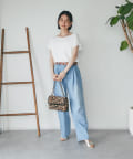 二の腕カバーで、なんでも合わせやすい白ニットです。