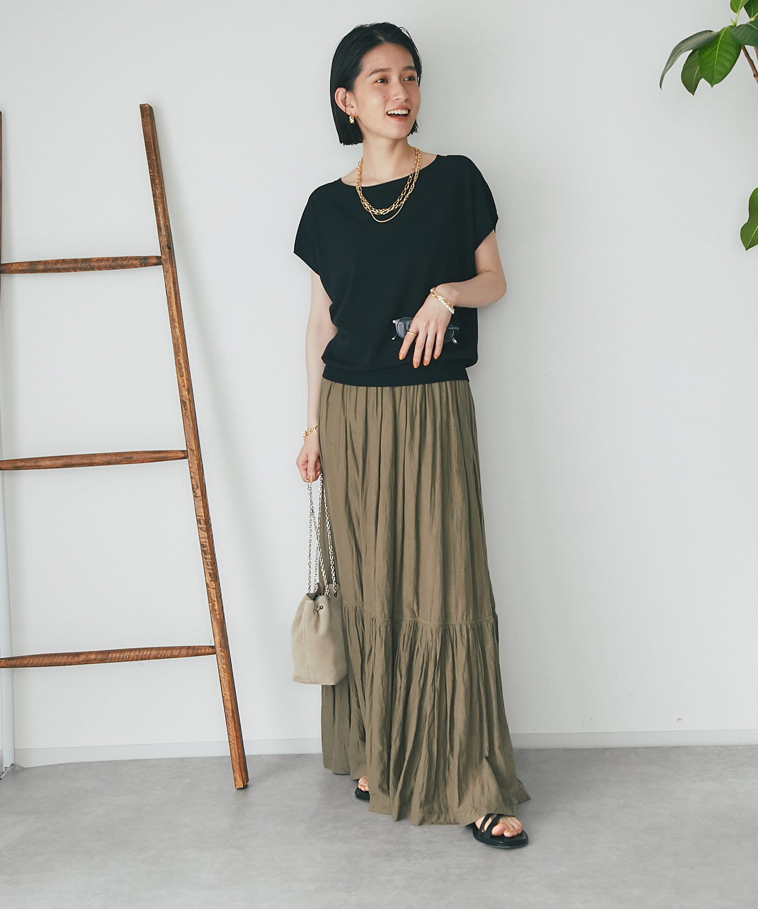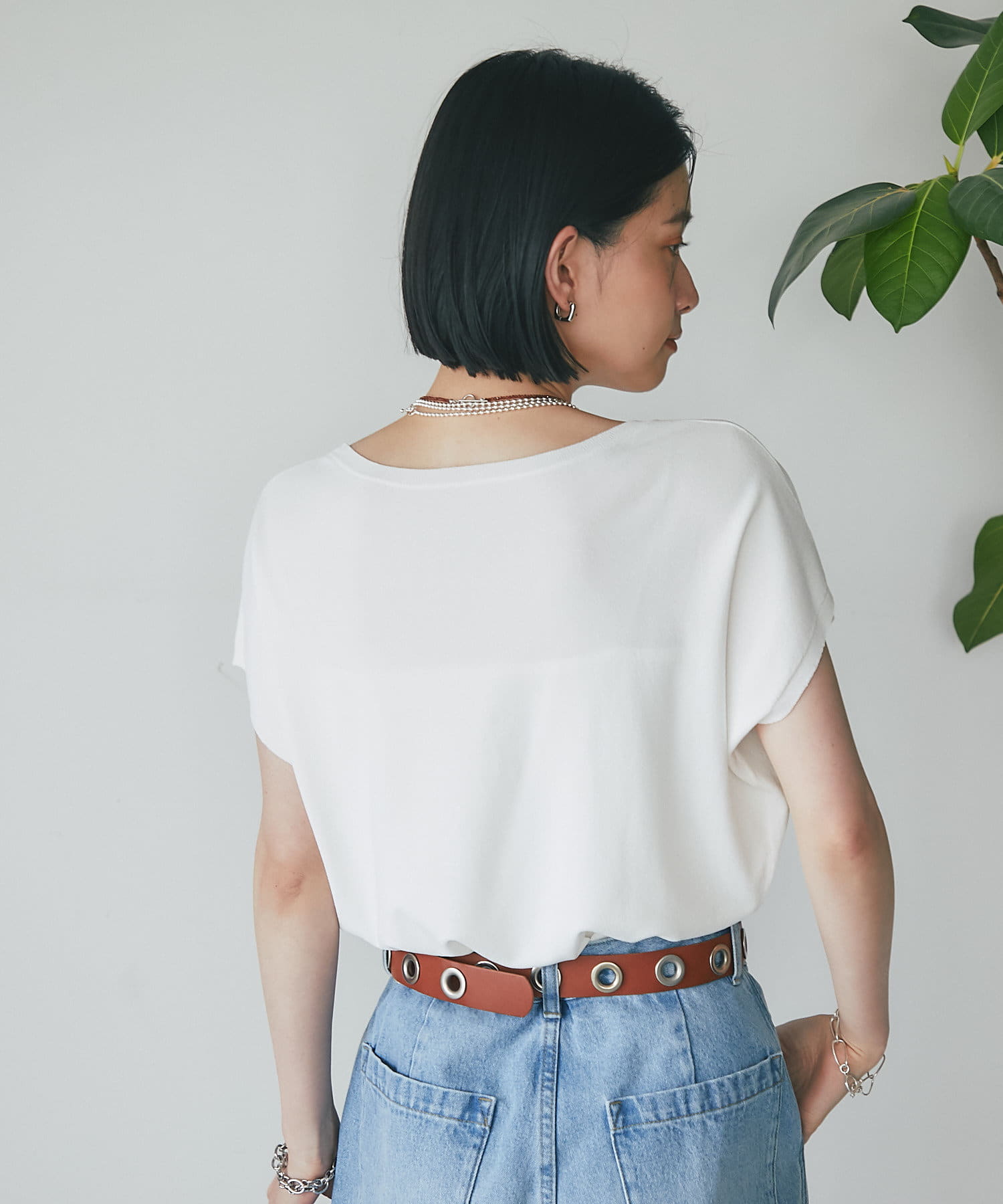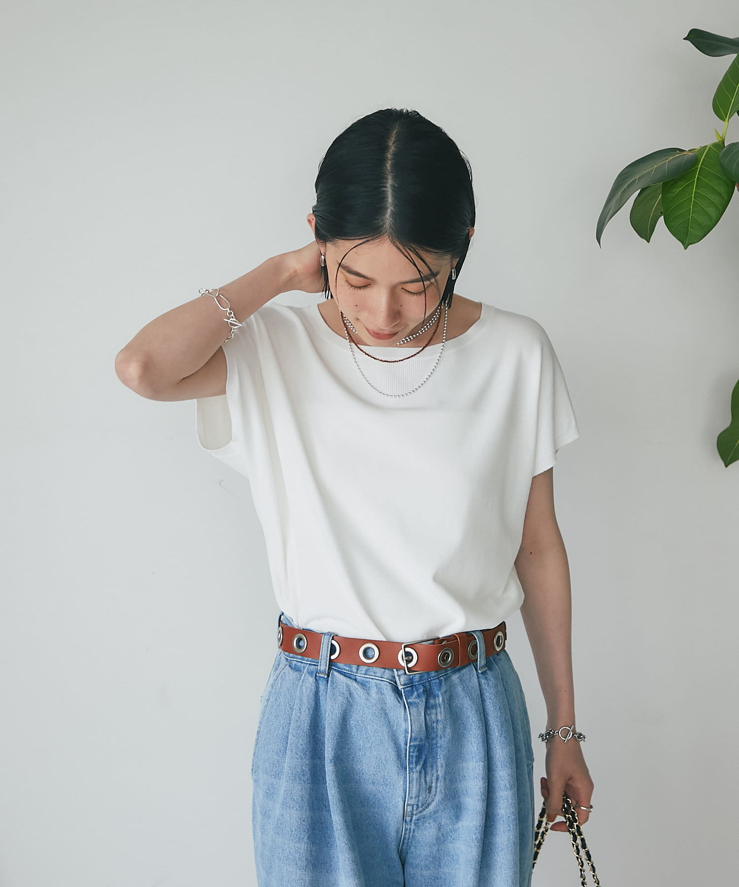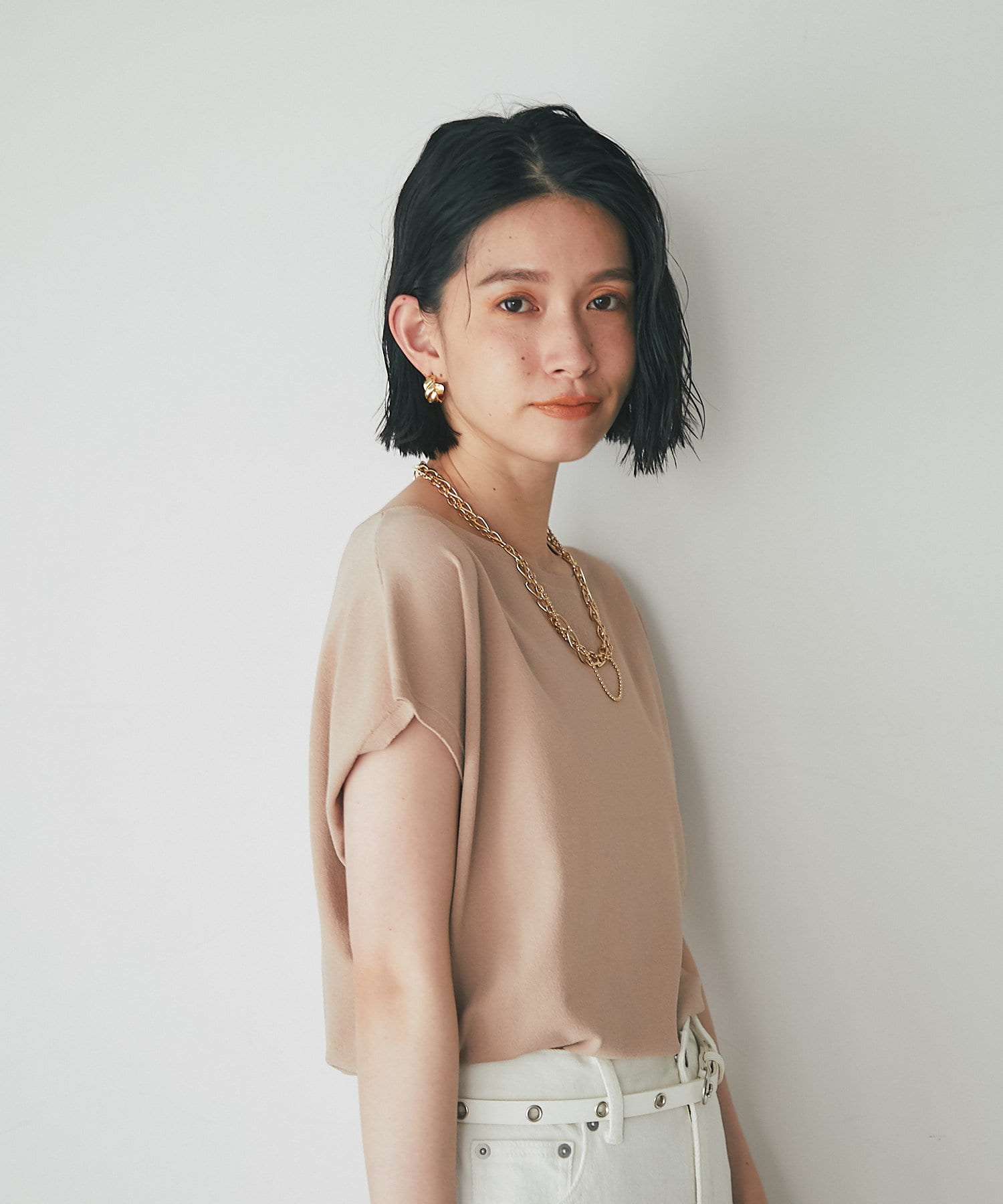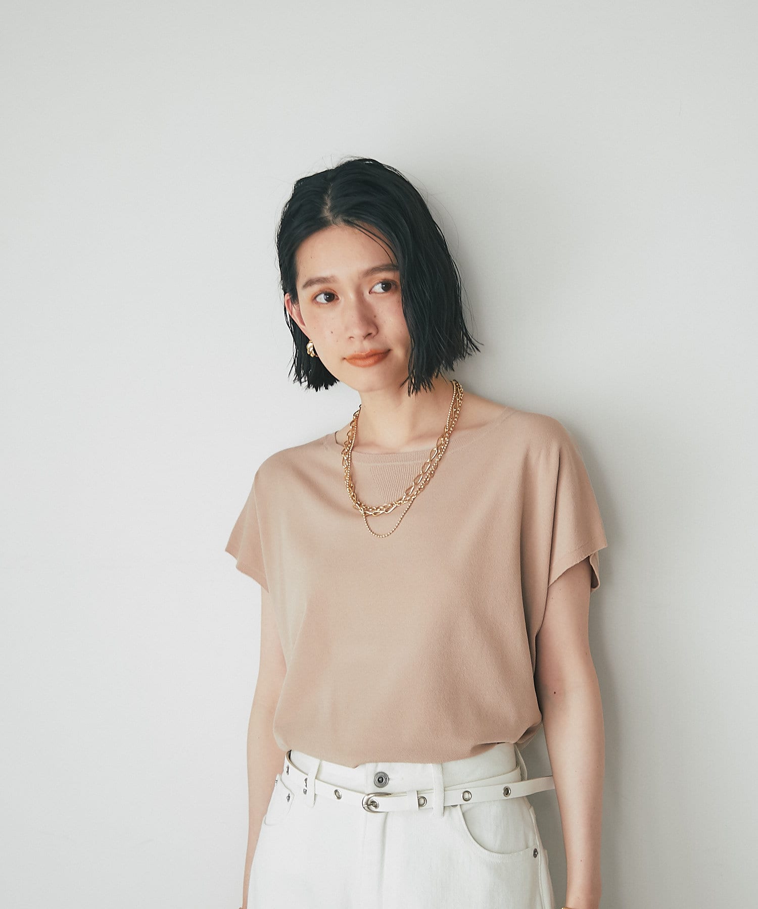 また、控えめなドルマンスリーブで汗ばむこれからの時季にもニットが肌に張り付きづらいという嬉しいポイントも。