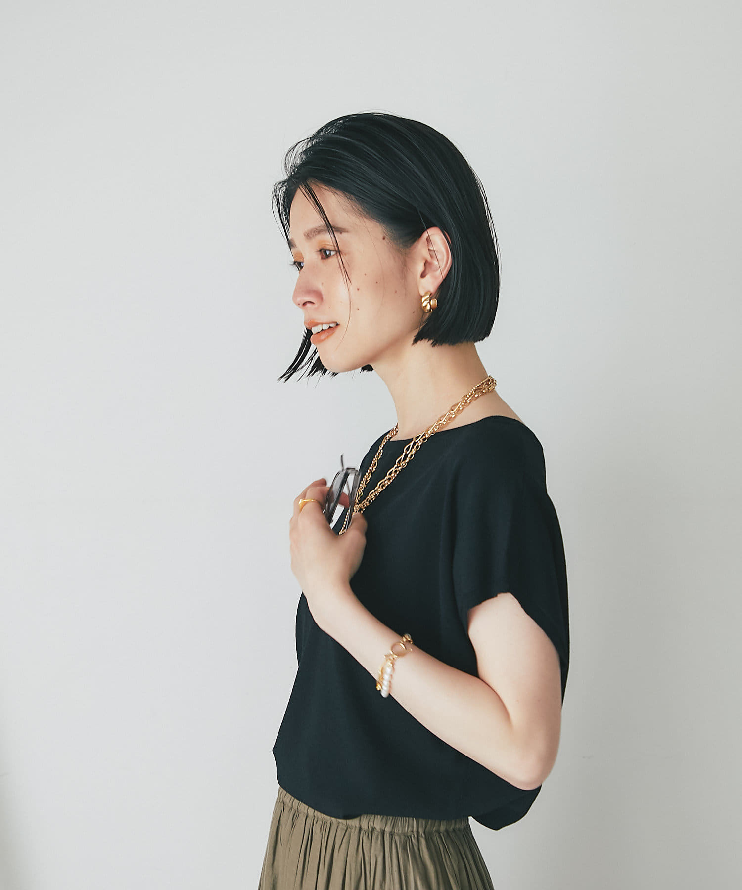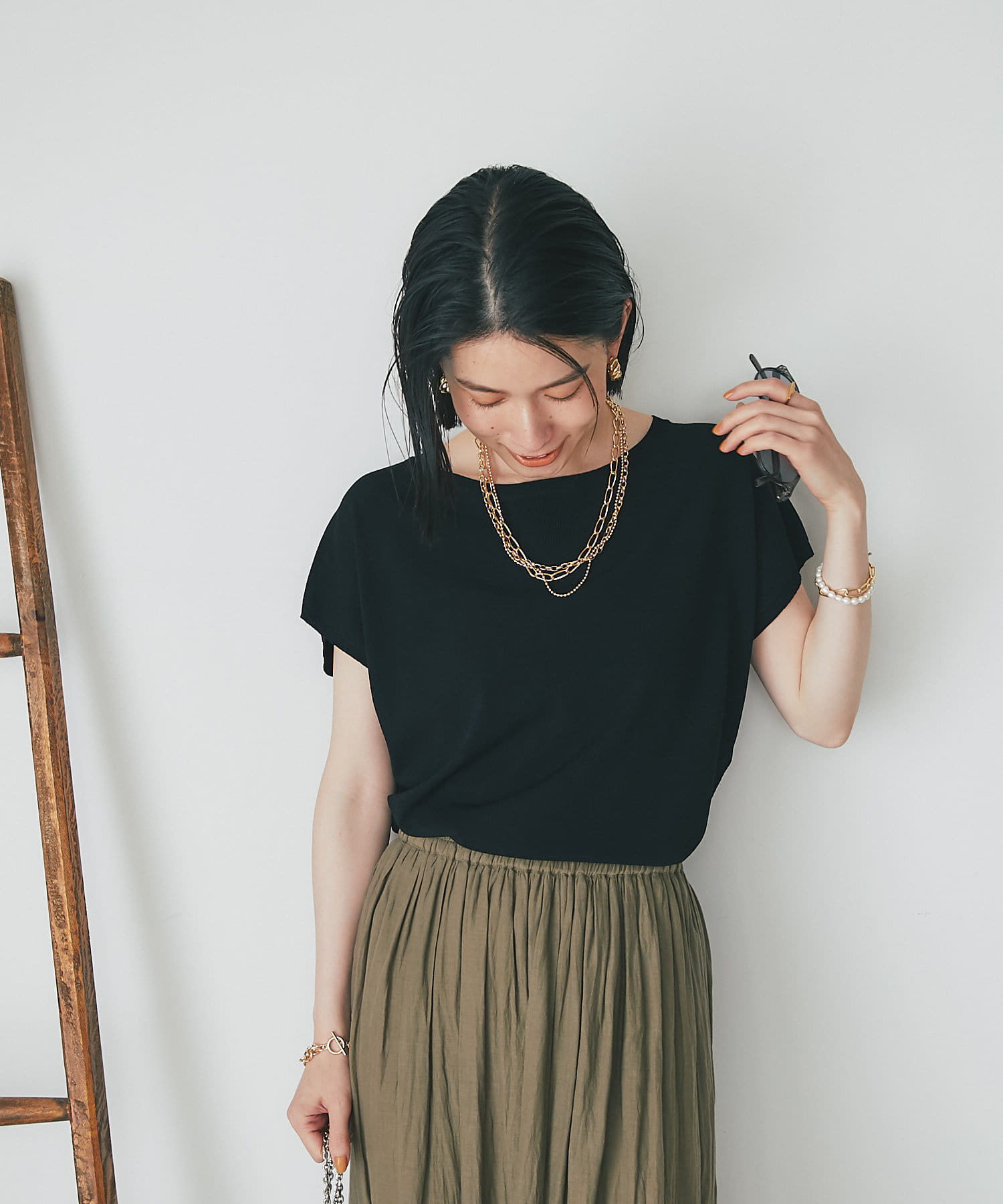 まだまだ暑いので、さらっと一枚で着用できるトップスを探していました。試着してみたら、気になる二の腕をほどよくカバーしてくれて、ジャケットのインナーにも使えるので、夏はもちろん、春や秋にとても使えそうです。