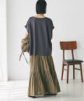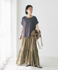 全体的にゆったりしたシルエットなので、すっきりしたシルエットのボトムから、フレアスカートなどのボリュームのあるアイテムなど