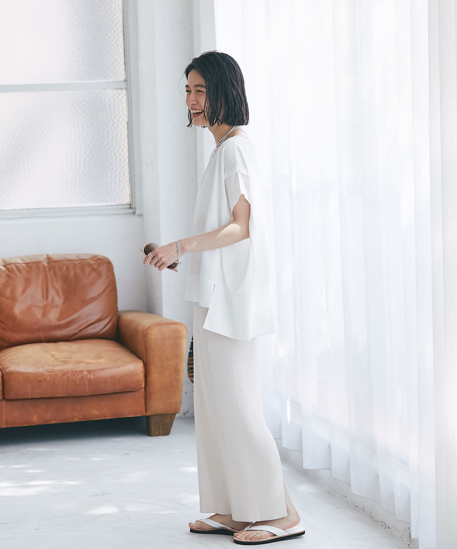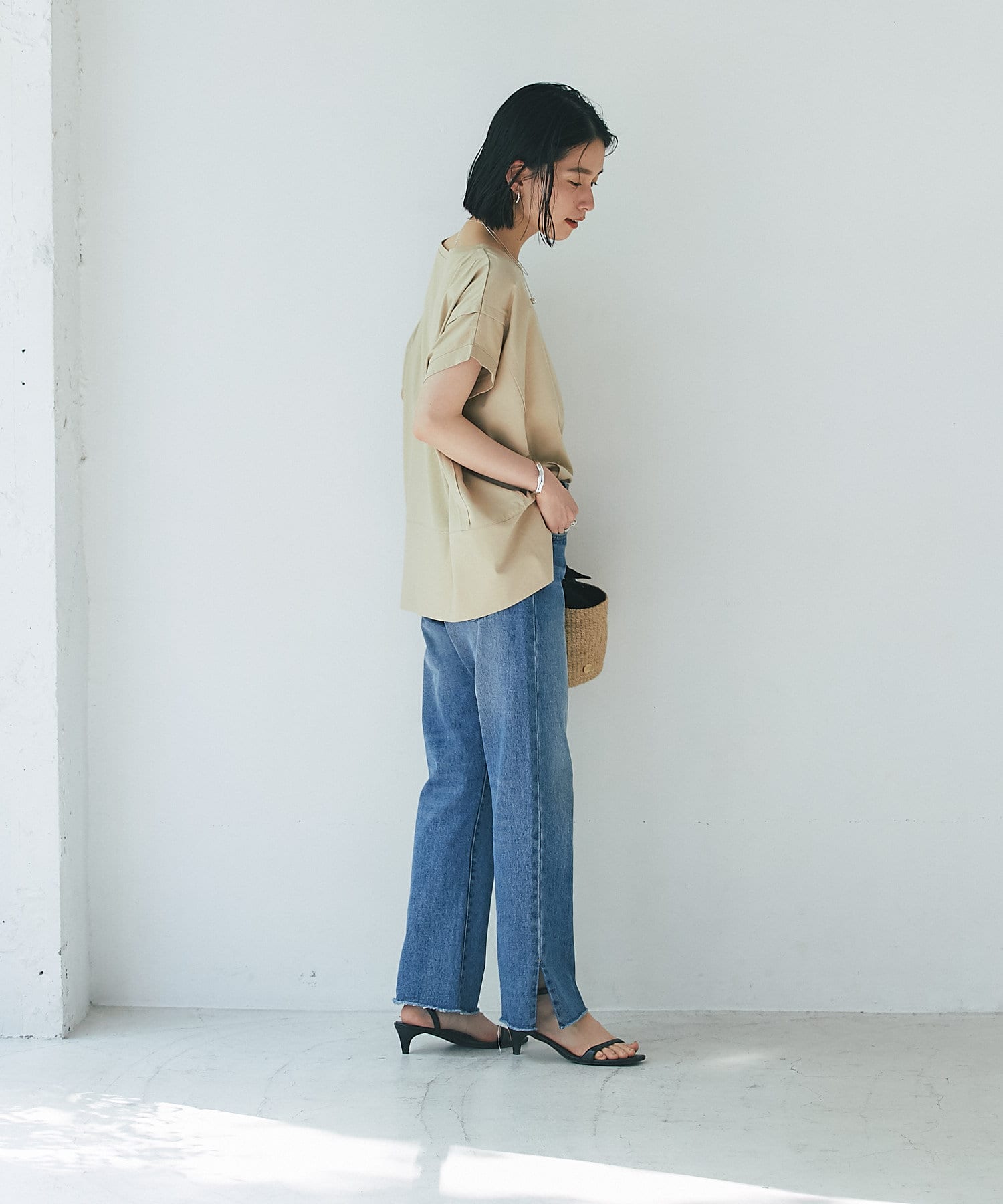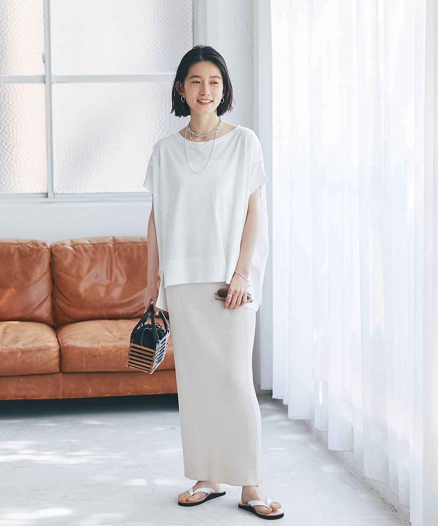 コーディネートしやすいアイテムです。カジュアル過ぎない印象で着用して頂けるので、大人の夏スタイルにおすすめです。