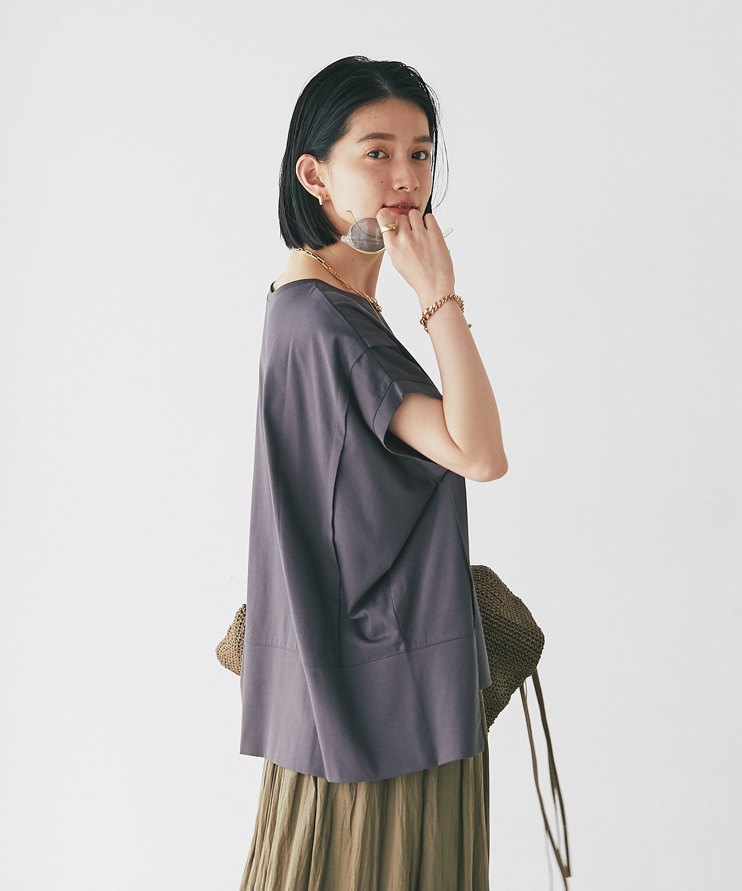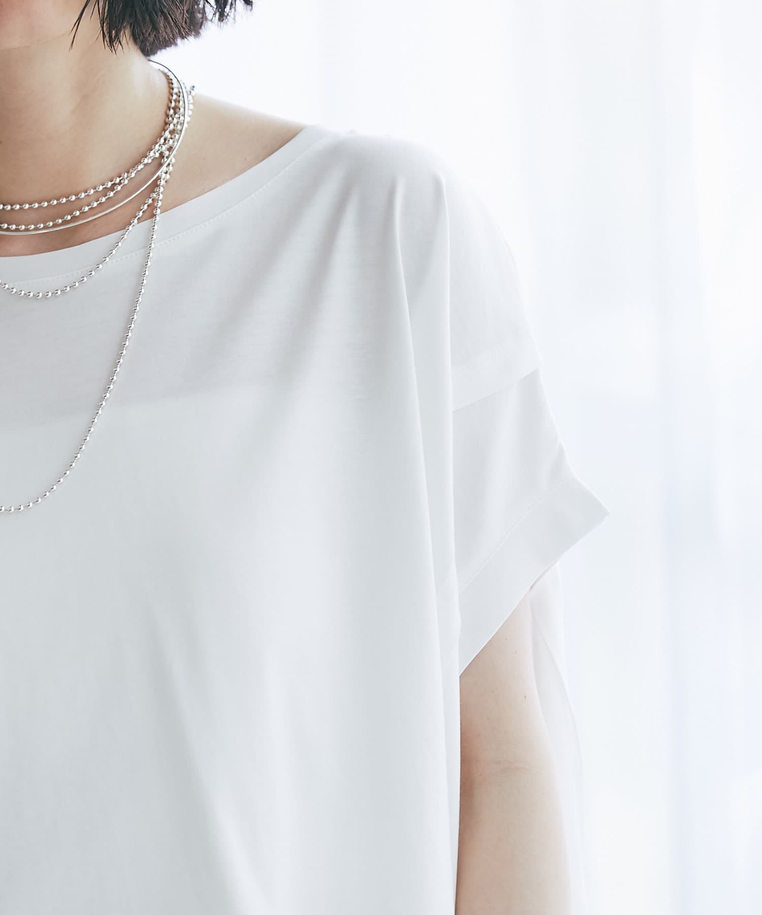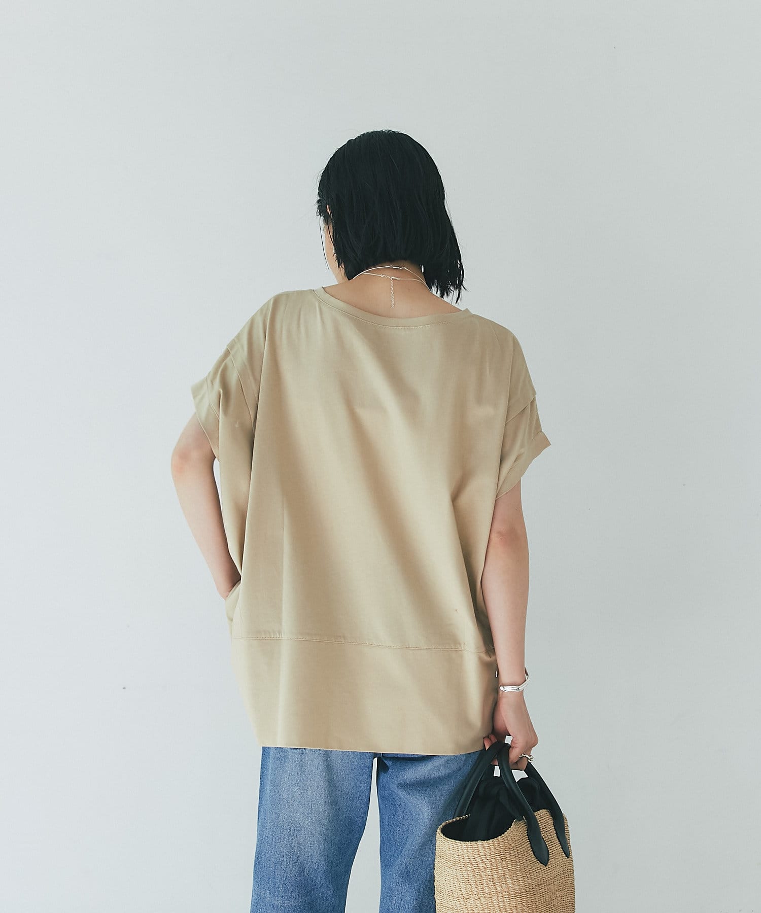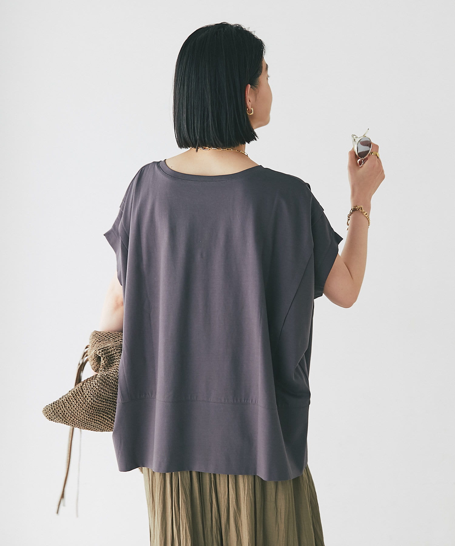 フレンチスリーブなので、腕回りが気になりにくく夏の1枚着にもおすすめ。