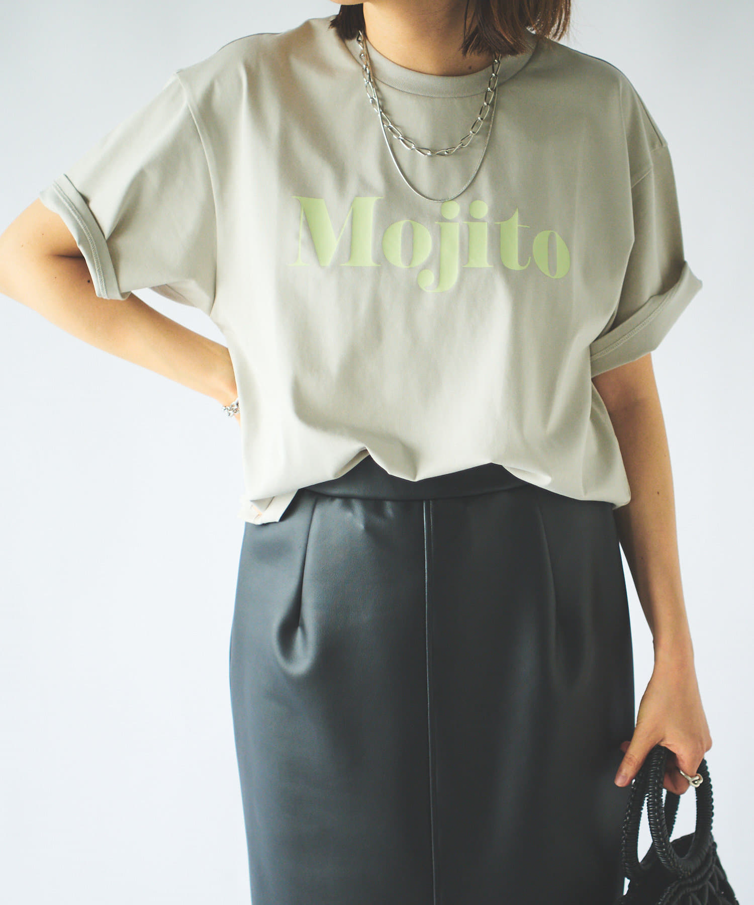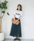 今季トレンドのシアーニット等を上から組み合わせて、ロゴをポイントにしたスタイルもオススメです。