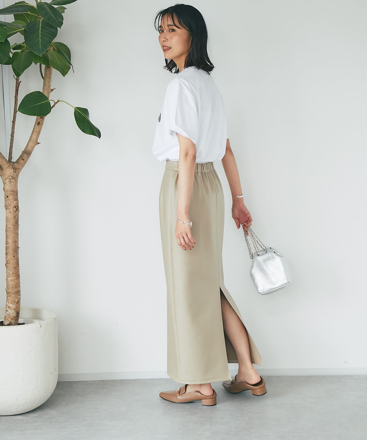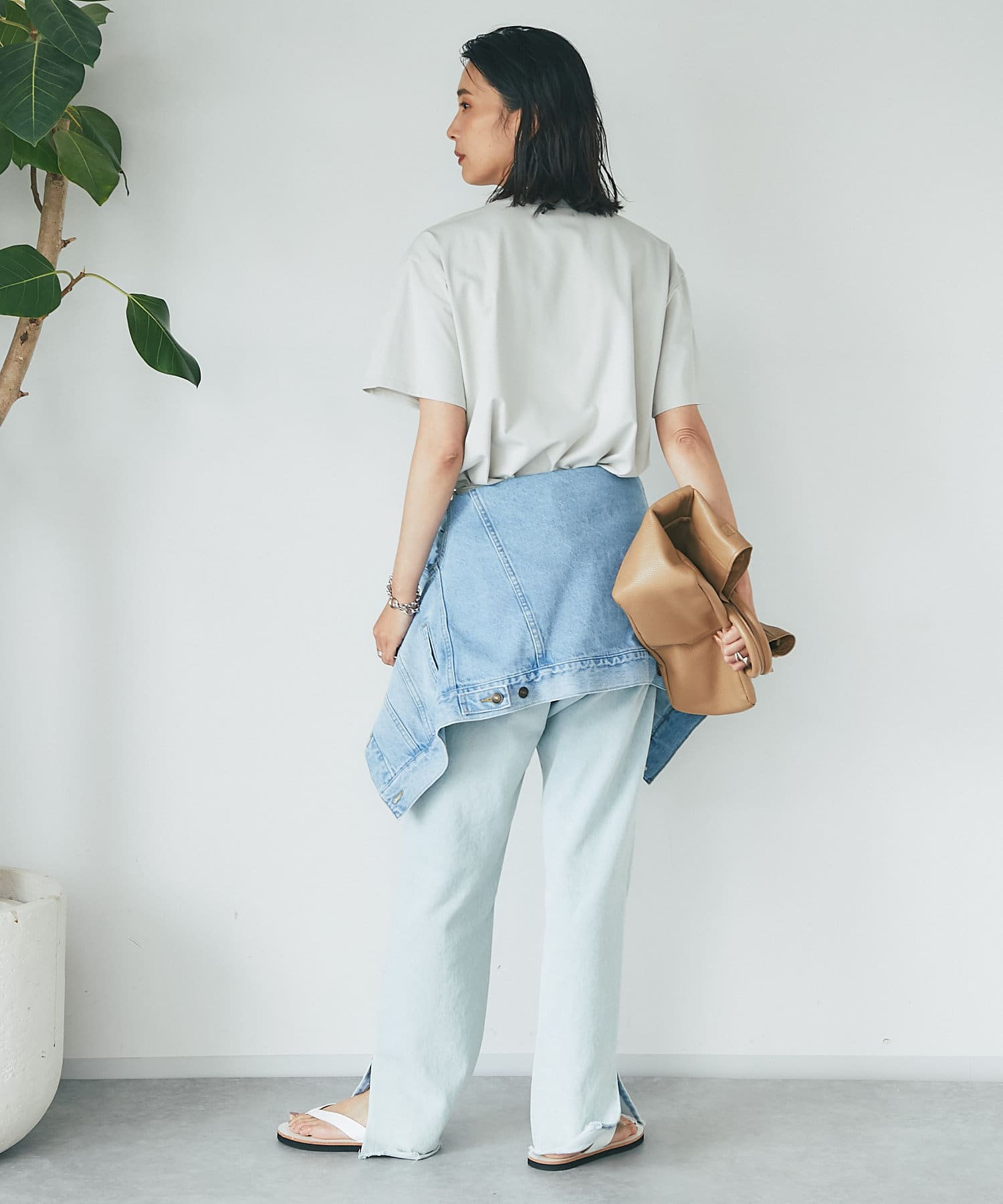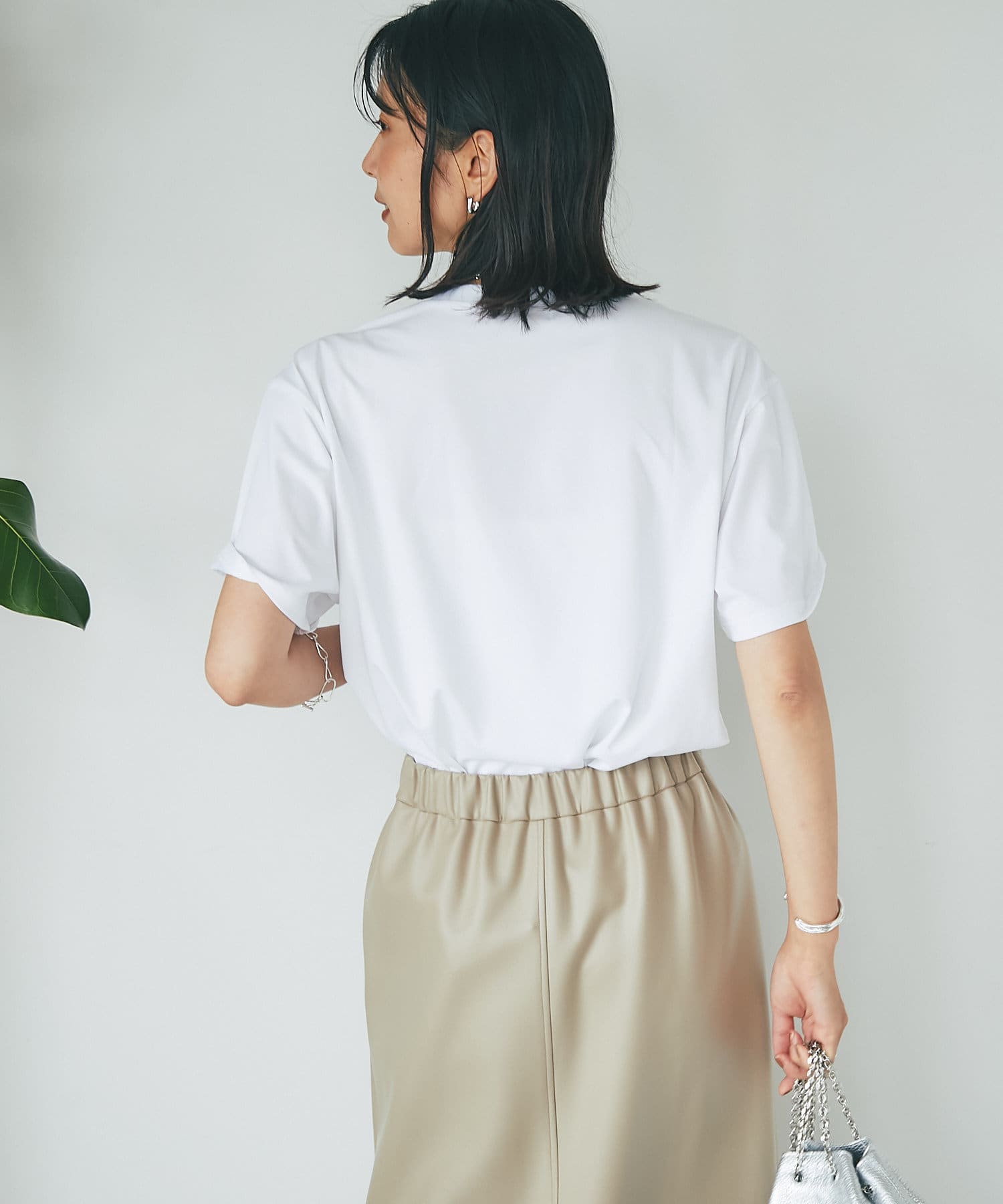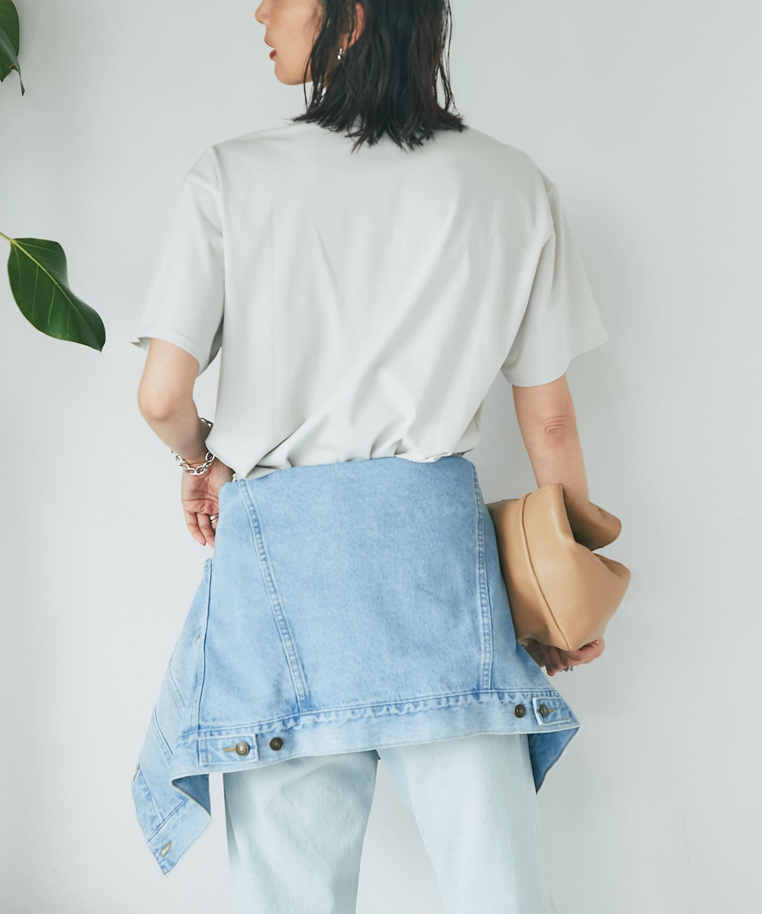 ワイドパンツやフレアスカートと合わせる際にはフロント部分を少しウエストインするとバランスが取りやすくすっきりと着ていただけます。