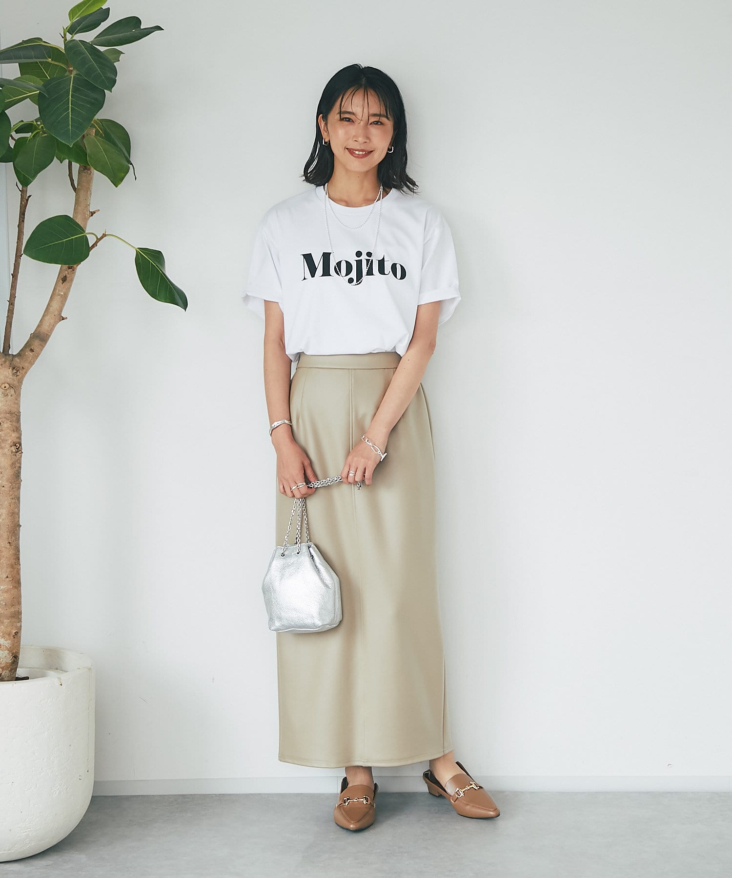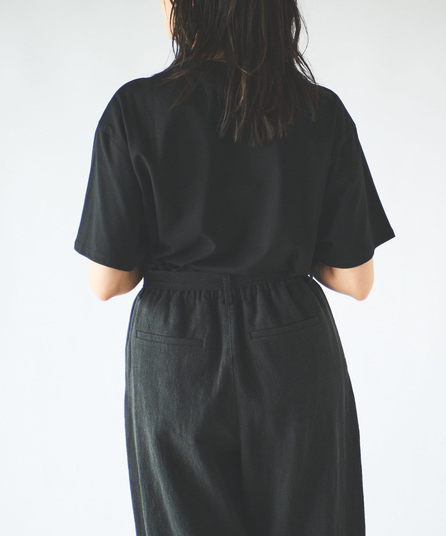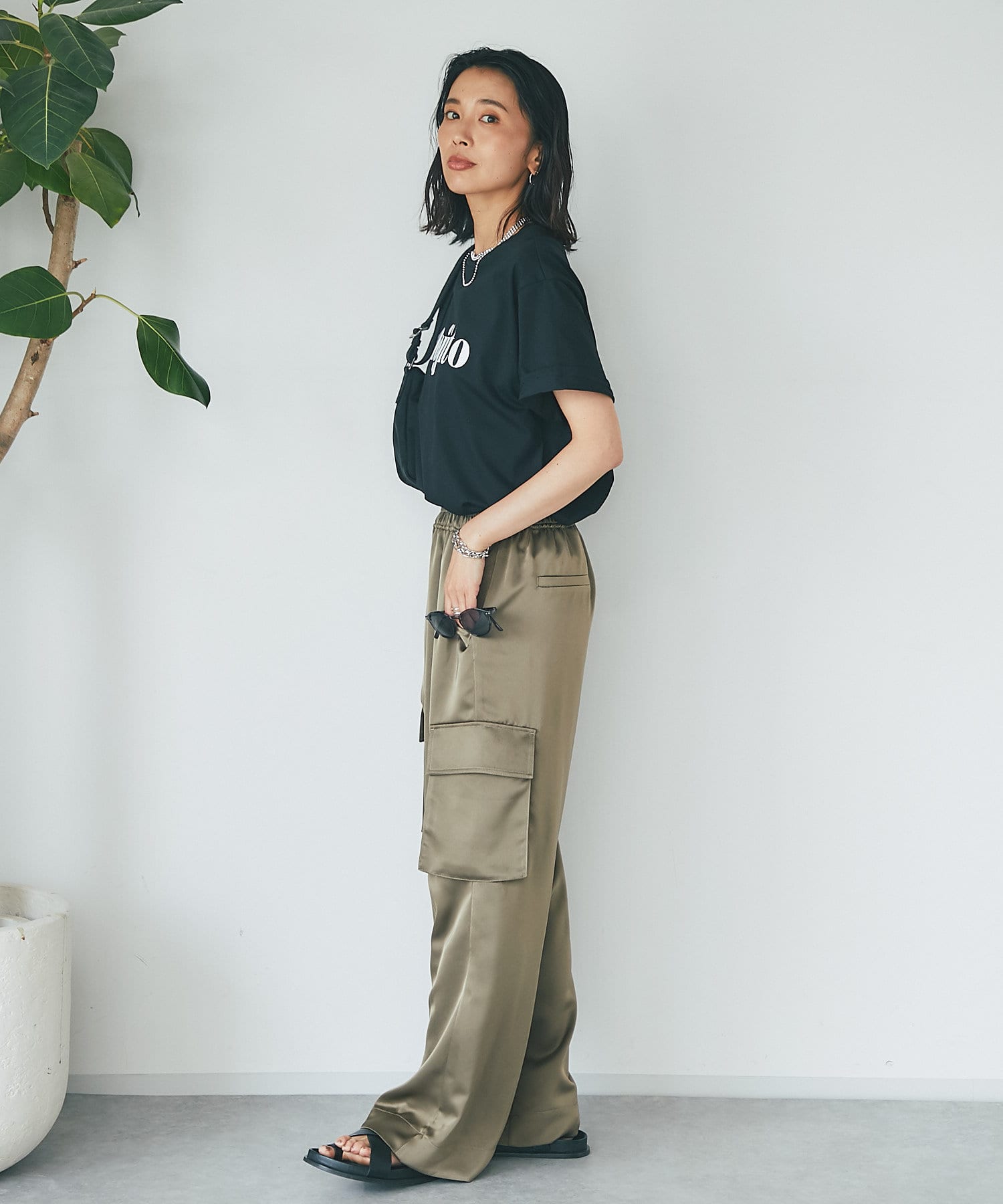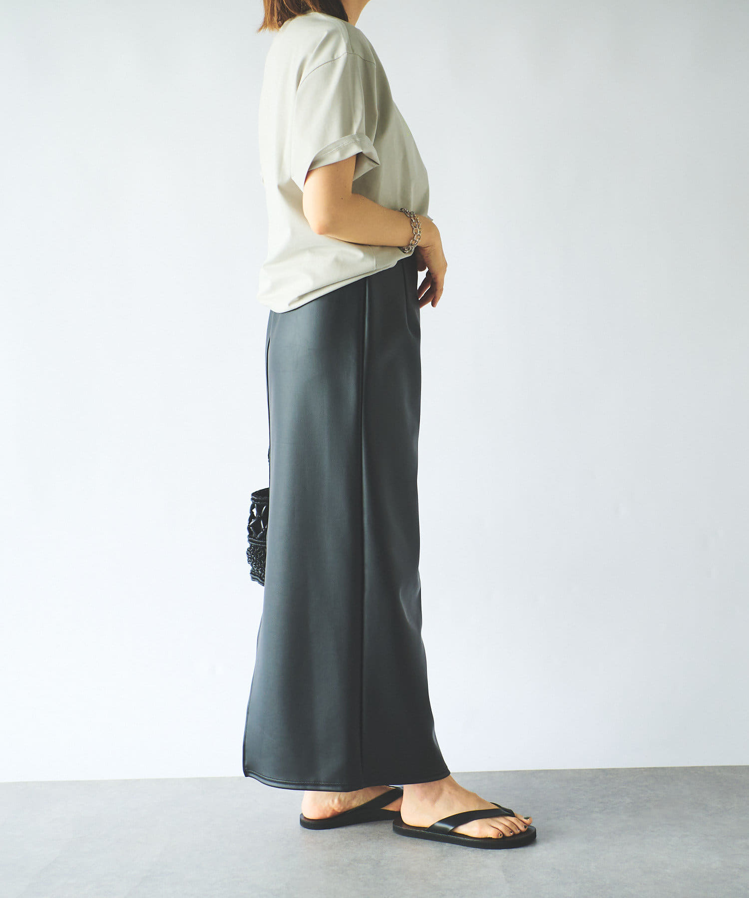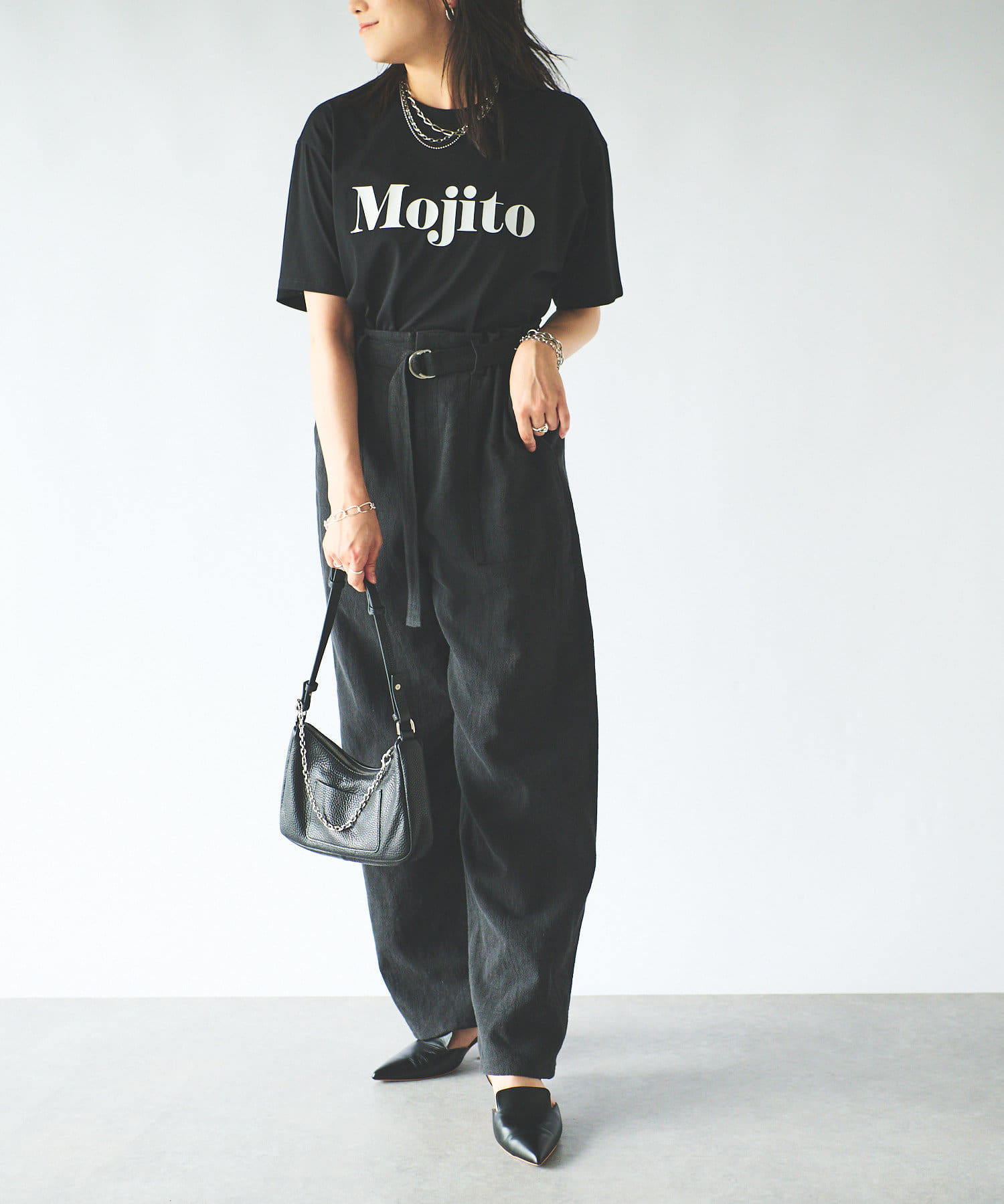 ワイドパンツやフレアスカートと合わせる際にはフロント部分を少しウエストインするとバランスが取りやすくすっきりと着ていただけます。