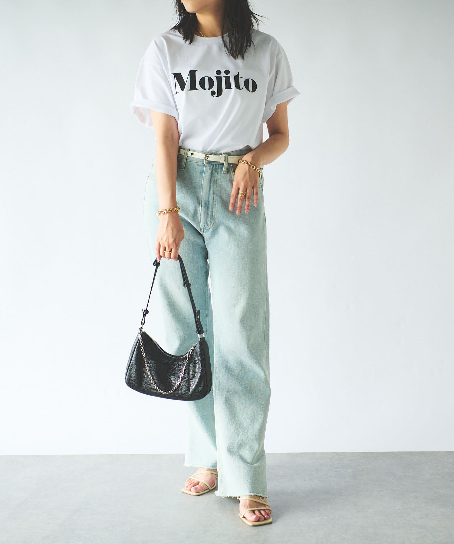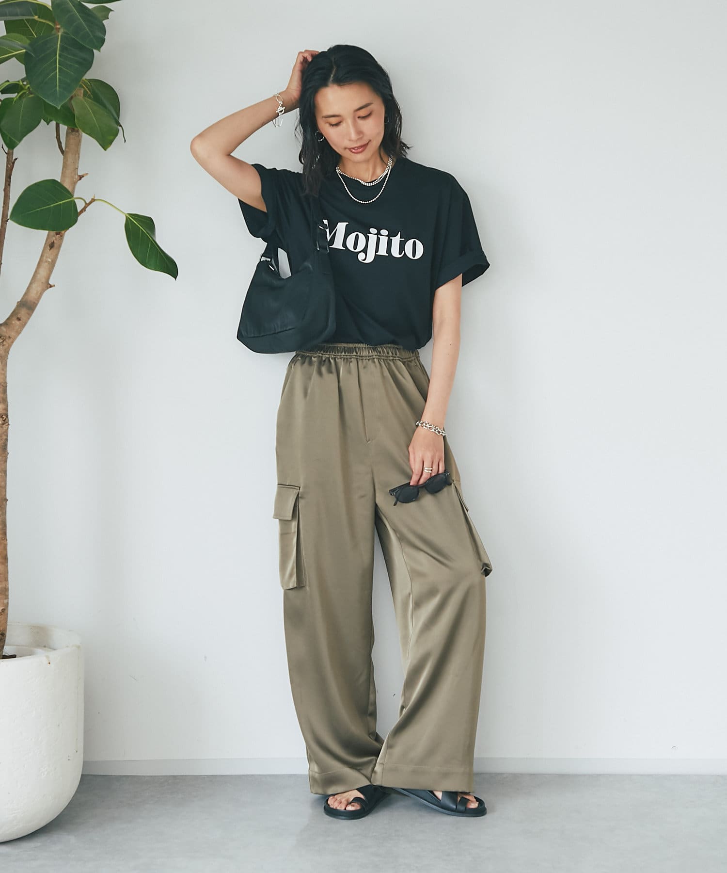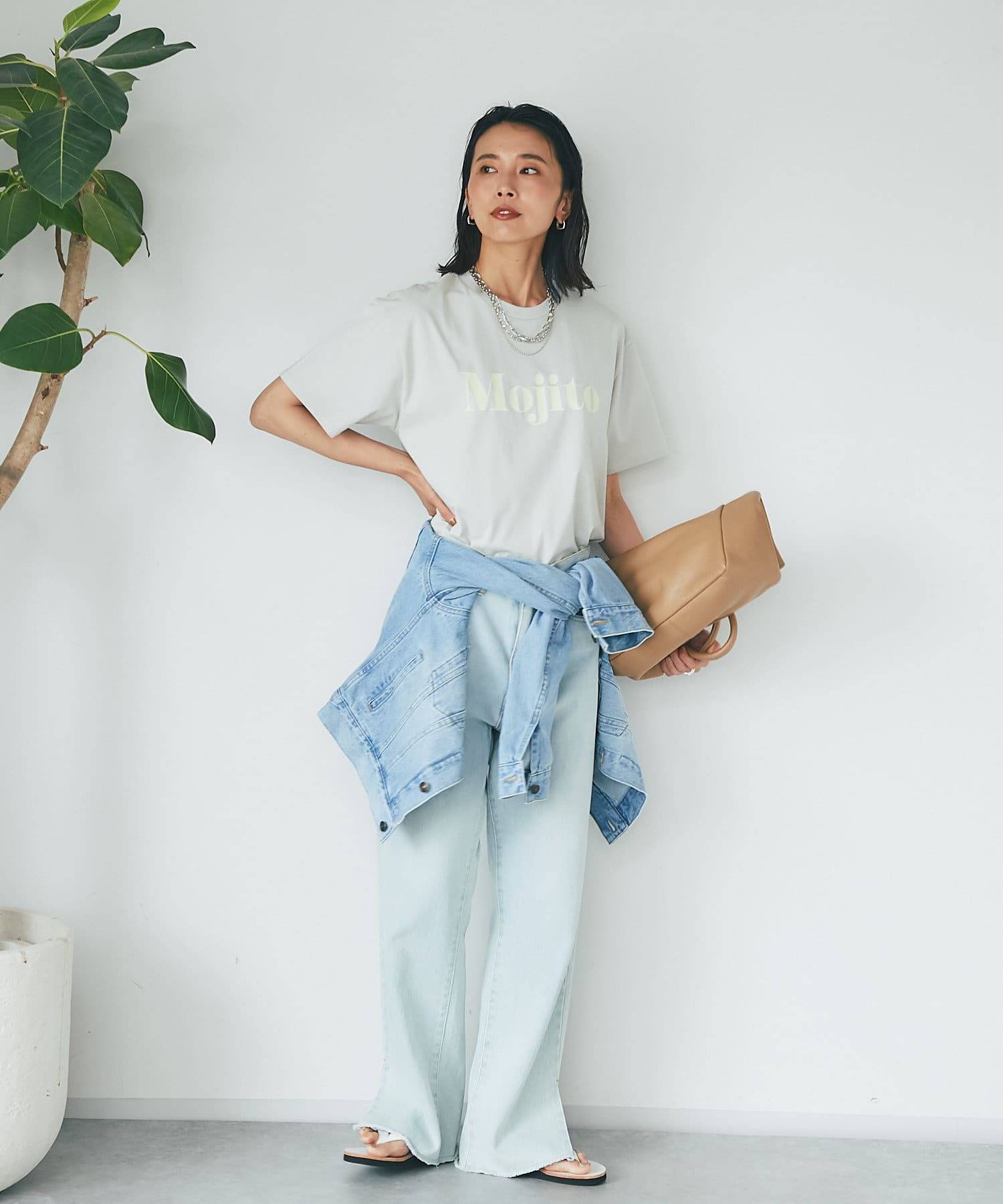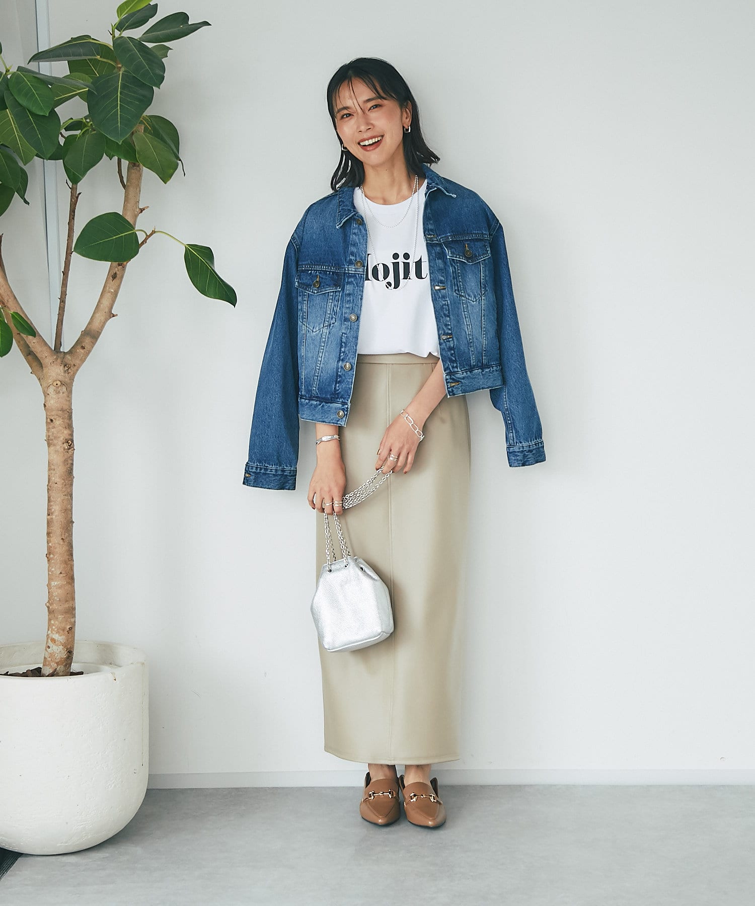 ワイドパンツやフレアスカートと合わせる際にはフロント部分を少しウエストインするとバランスが取りやすくすっきりと着ていただけます。
