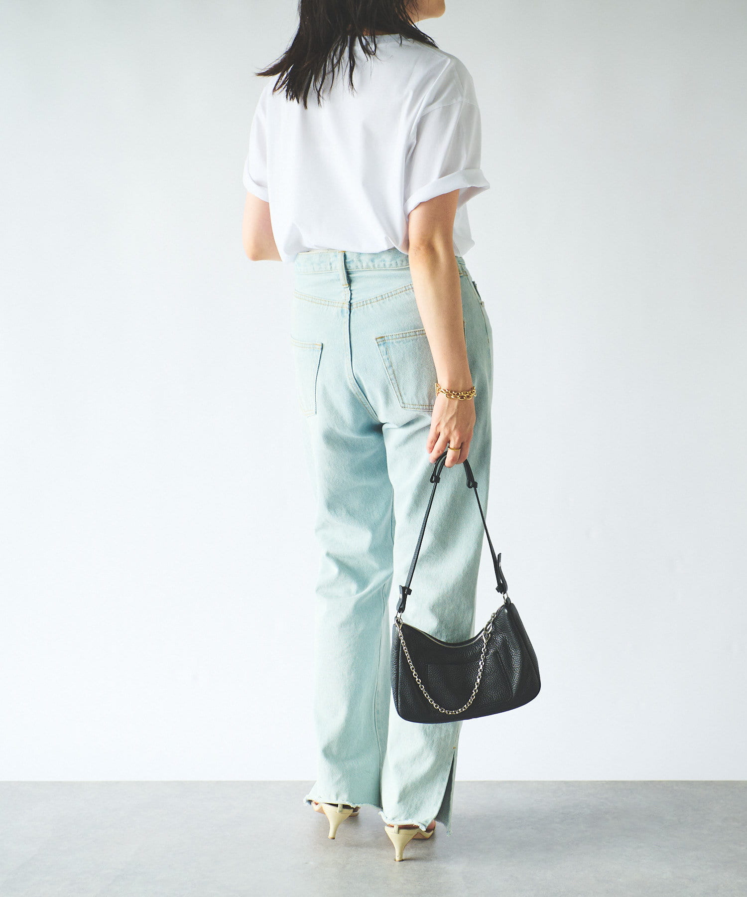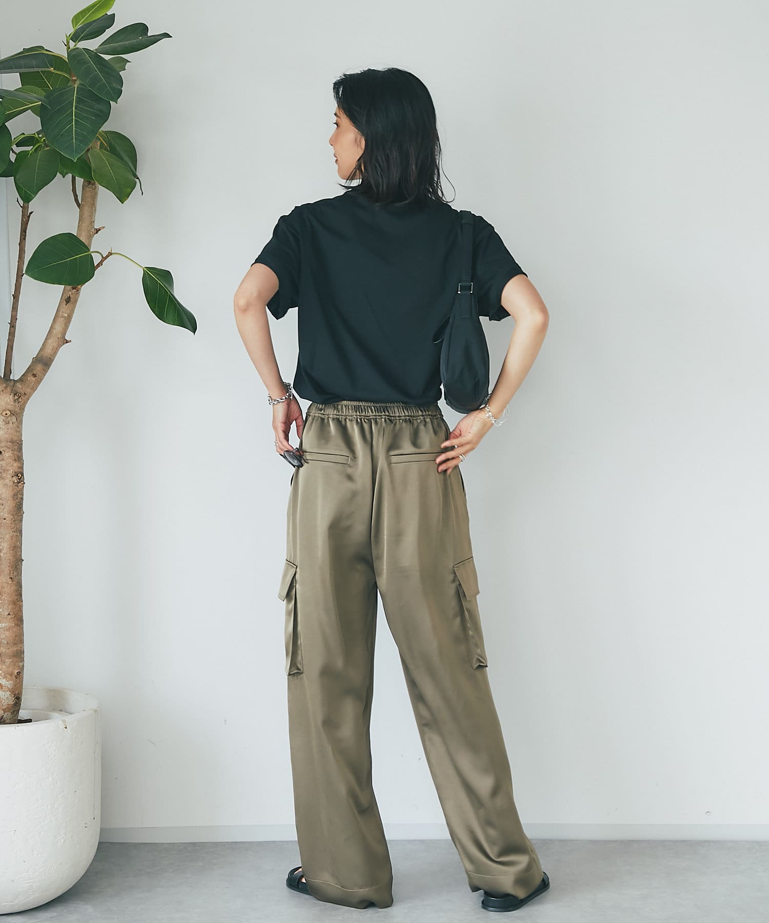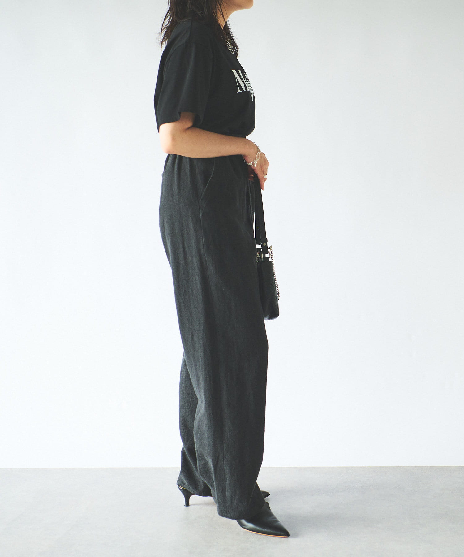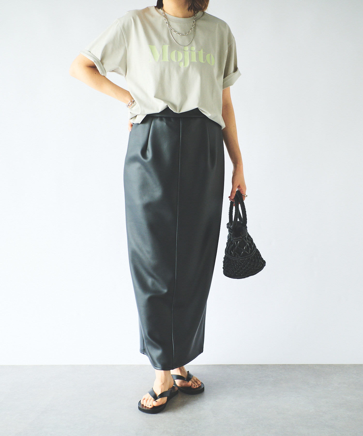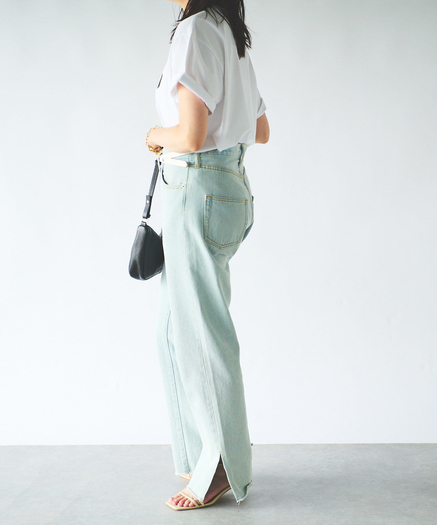 ワイドパンツやフレアスカートと合わせる際にはフロント部分を少しウエストインするとバランスが取りやすくすっきりと着ていただけます。