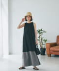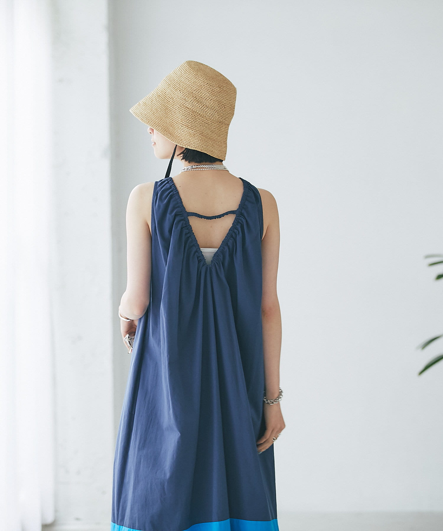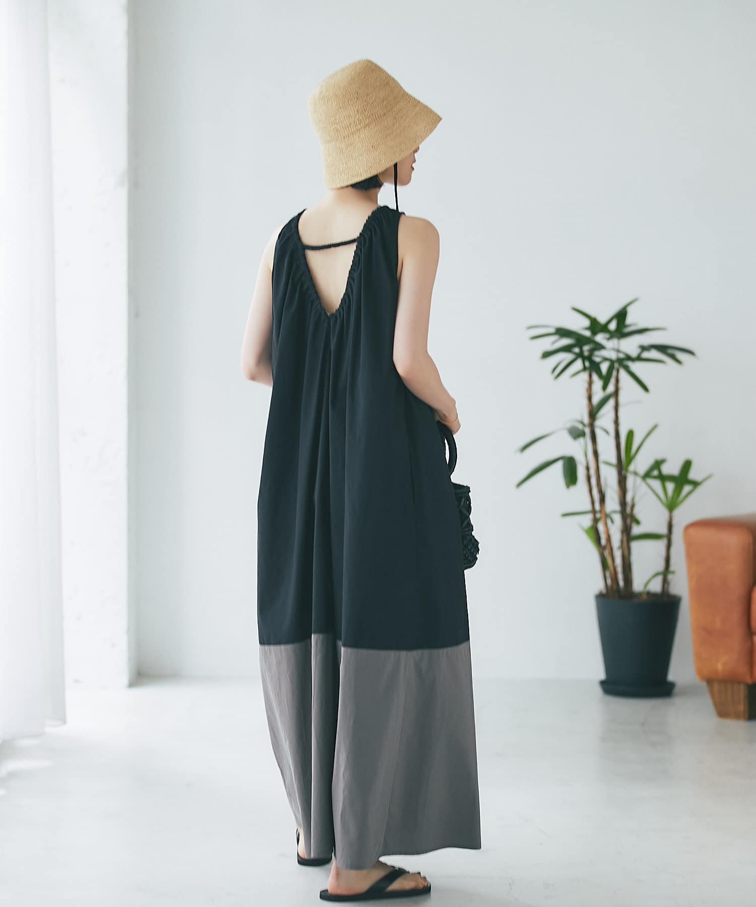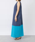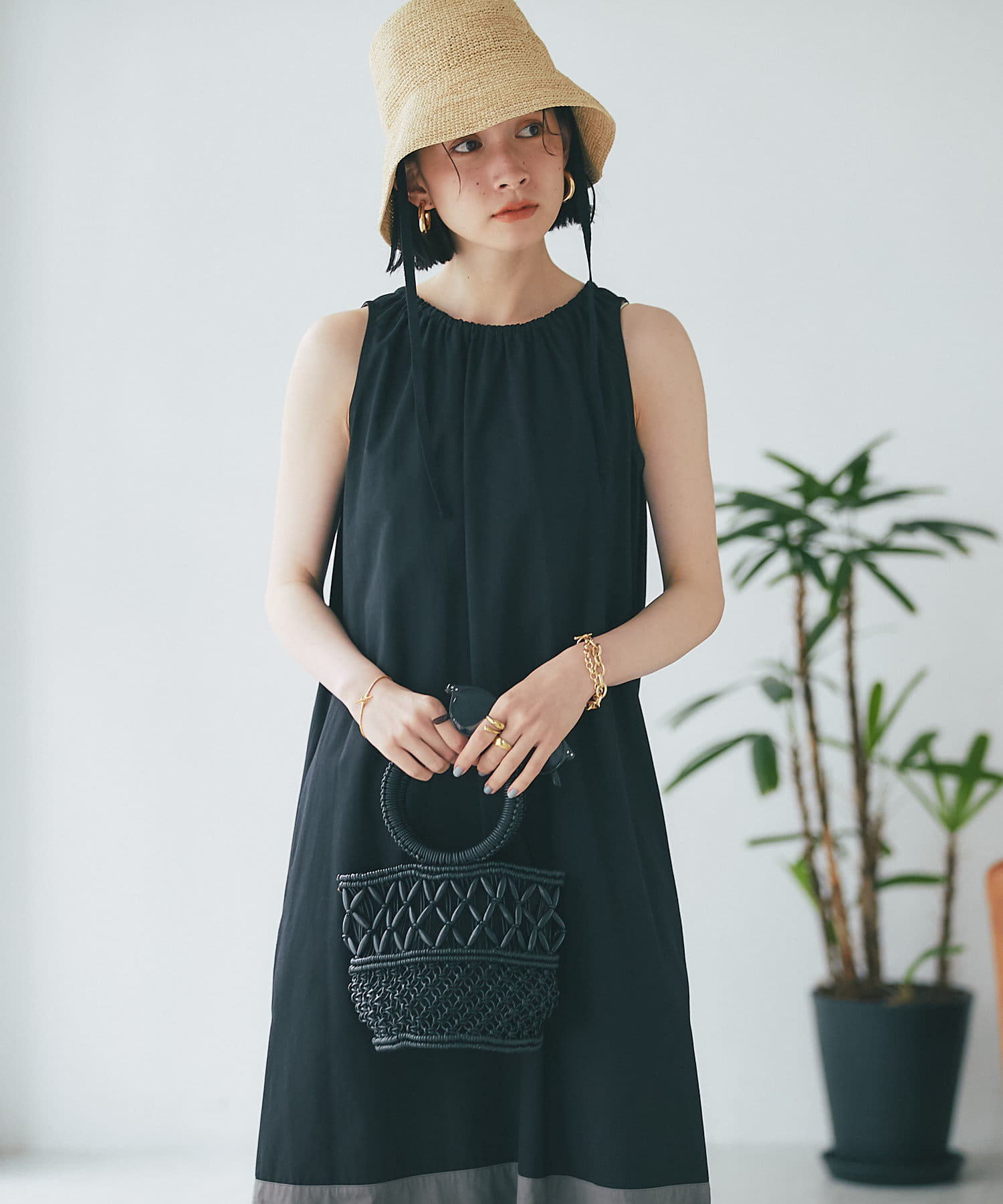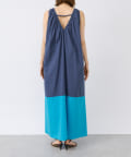 シンプルなシルエットに鮮やかなバイカラーが目を惹くワンピース。