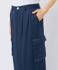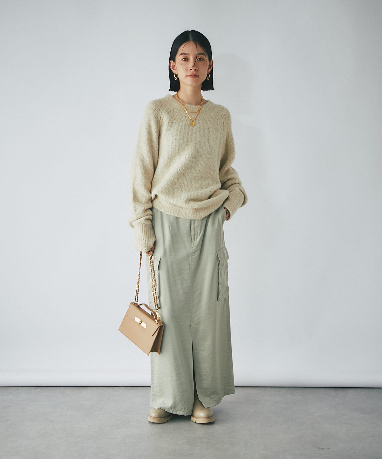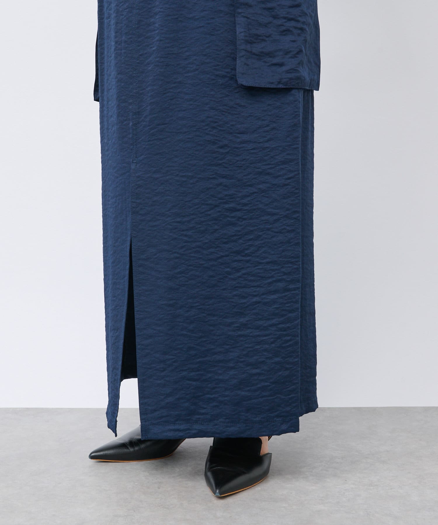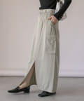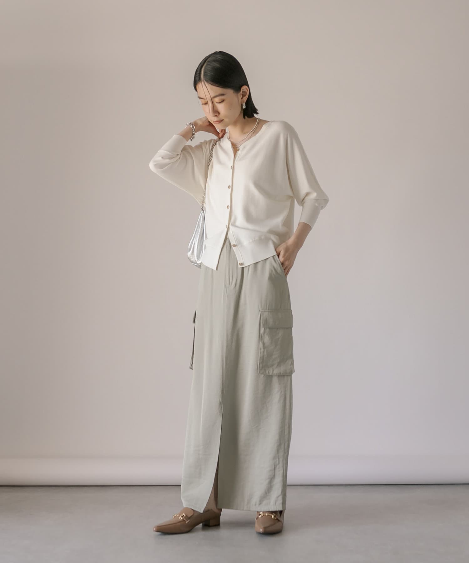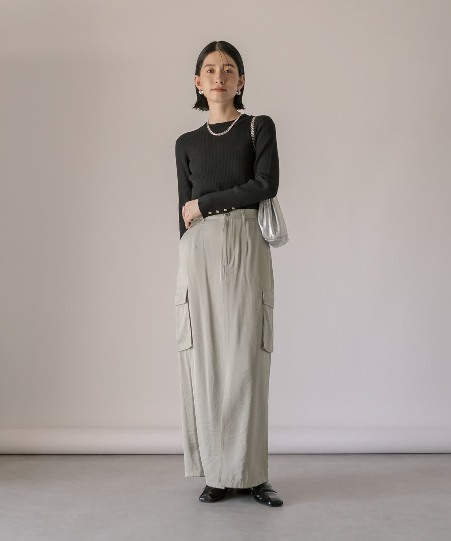 レディースらしい光沢感があり落ち感のある素材に落とし込み、カジュアルになりがちなカーゴスカートを女性らしく仕上げました。