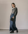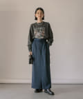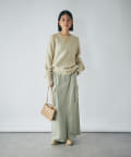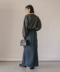 ツヤ感のある生地なので、ニット素材やコートなどとの組み合わせも好相性です。