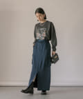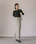 ボリューム感のあるシルエットなので、トップスにはすっきりとしたアイテムを合わせるのがおすすめ。