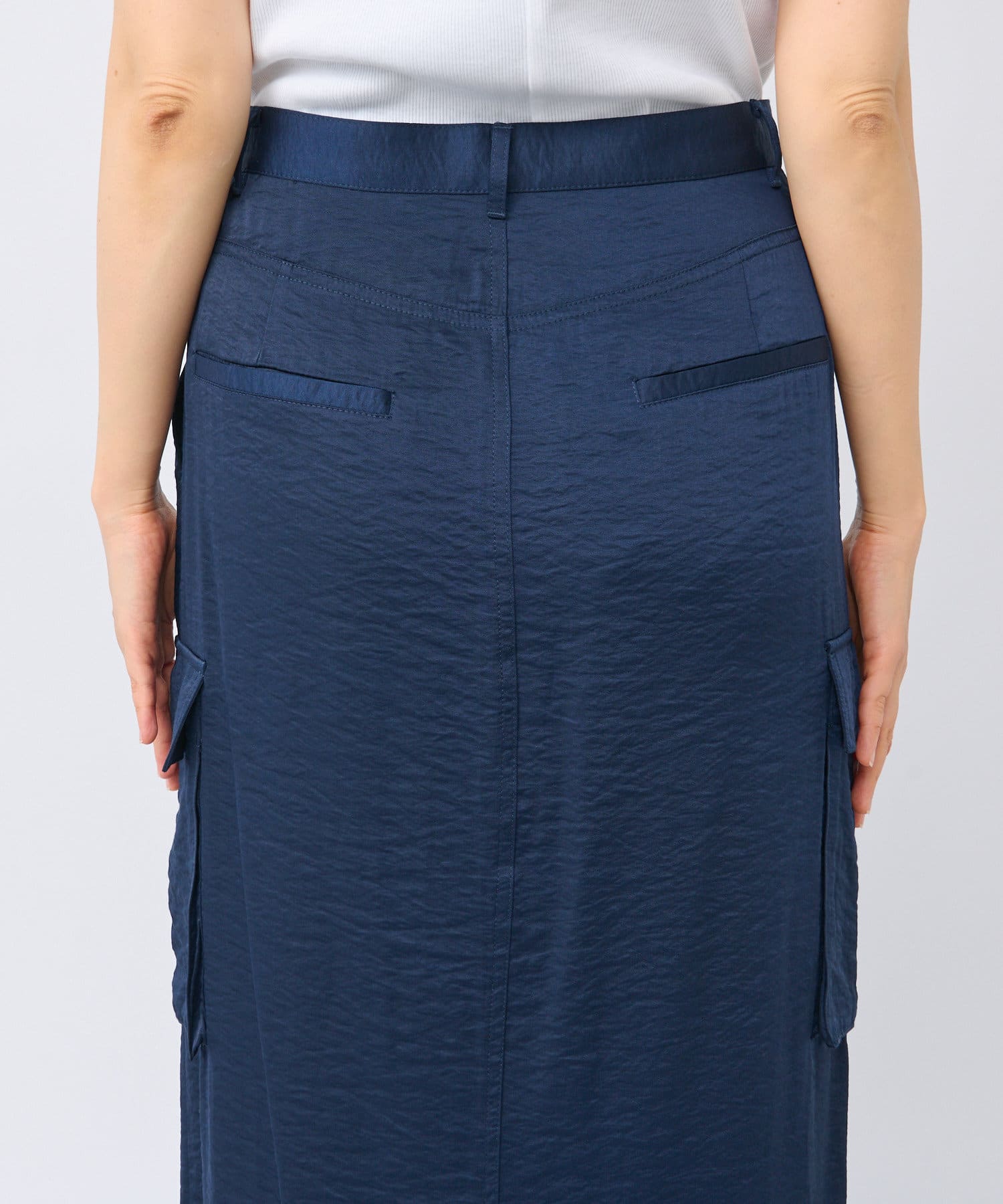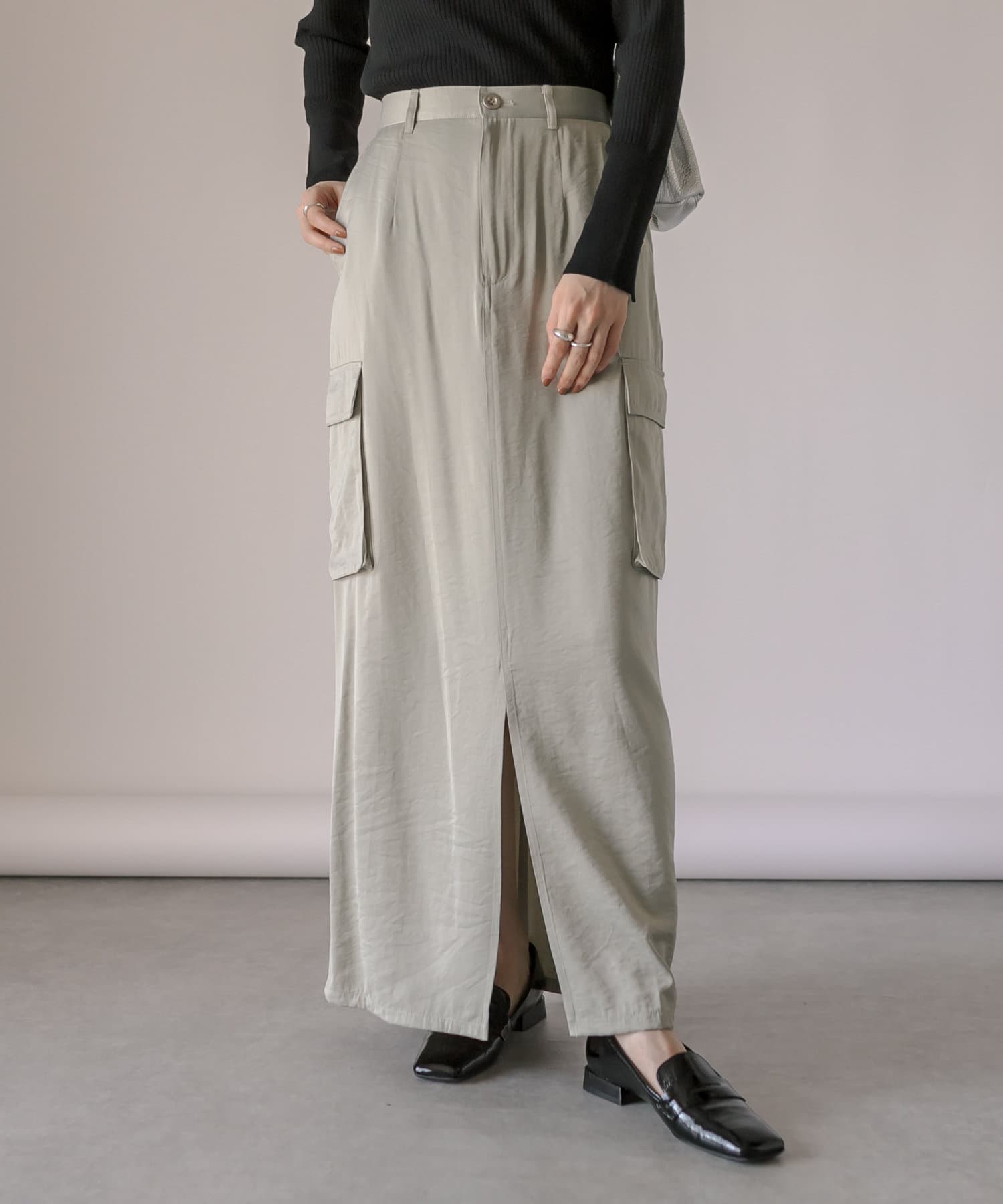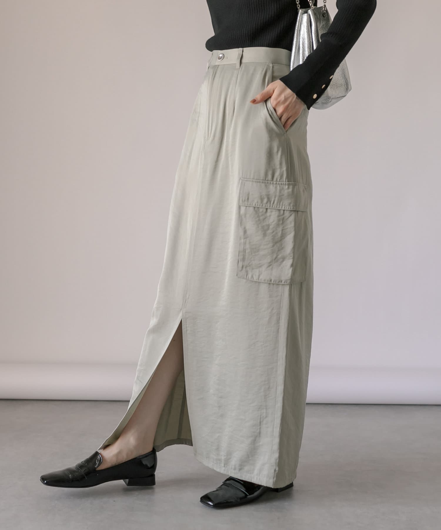 なめらかなツヤ感が美しい素材を使用したカーゴスカート。