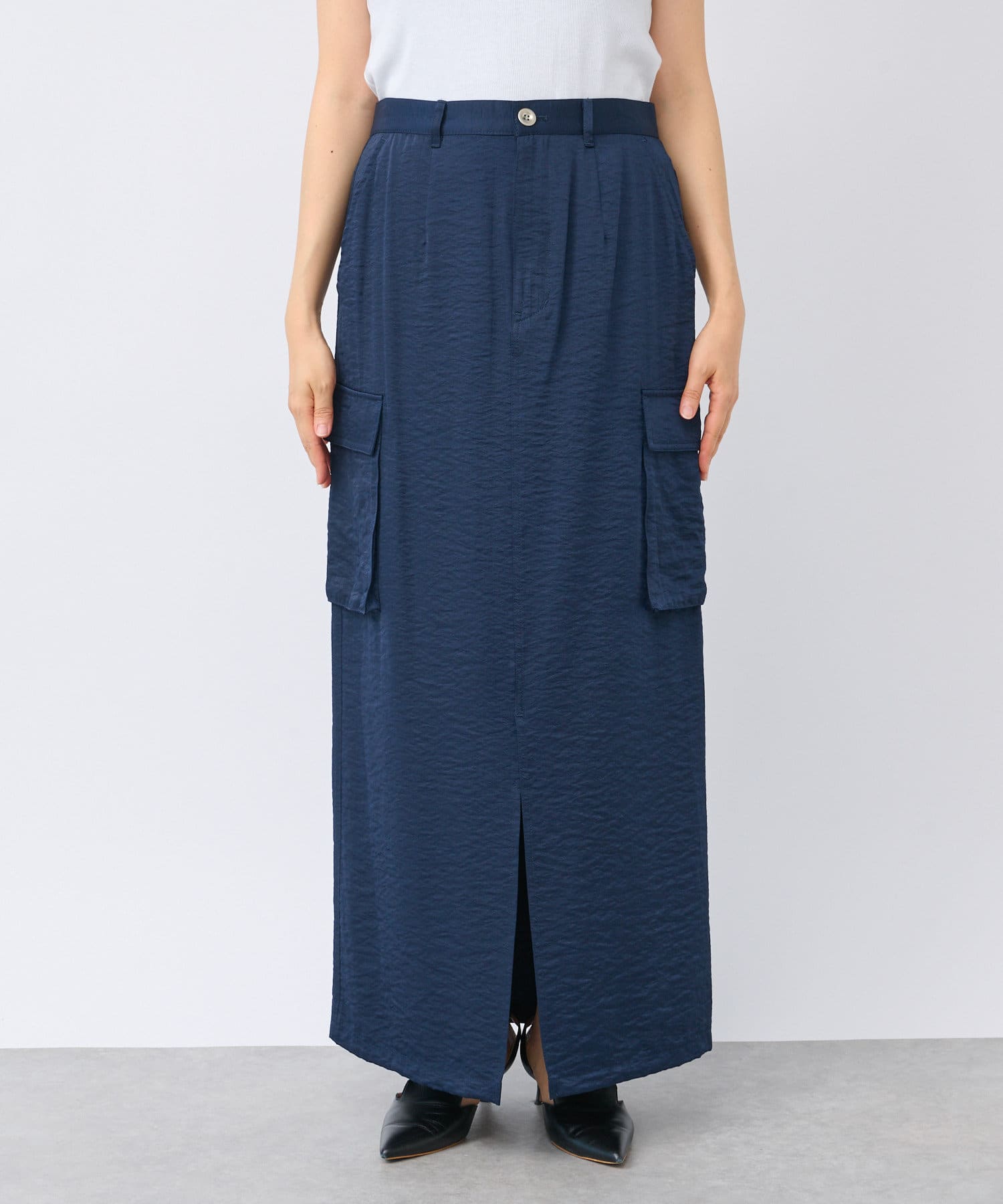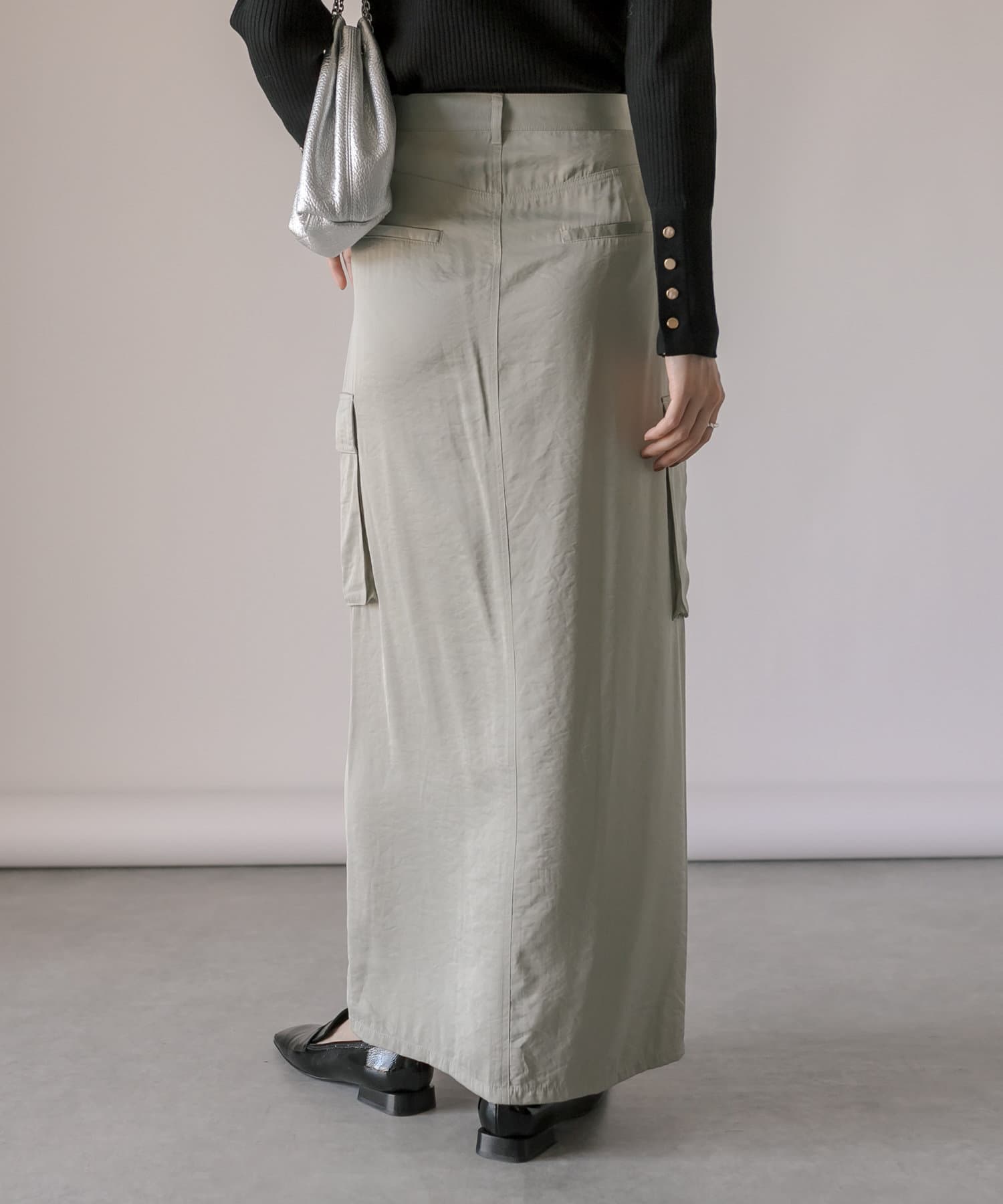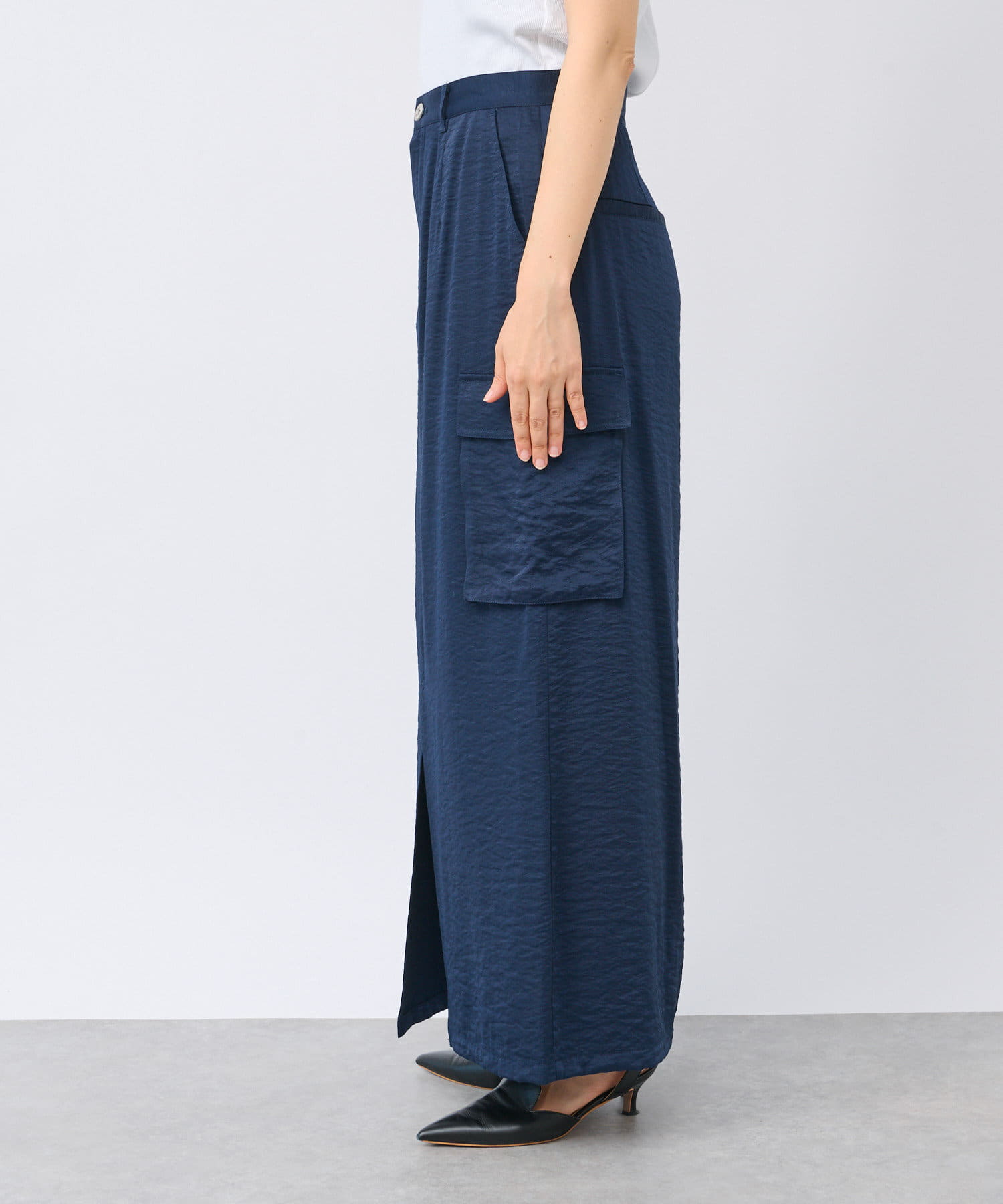 なめらかなツヤ感が美しい素材を使用したカーゴスカート。