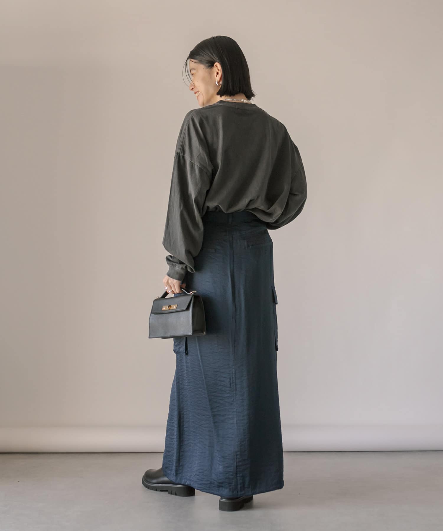 【大人のカジュアルスタイルに】サテンカーゴスカート