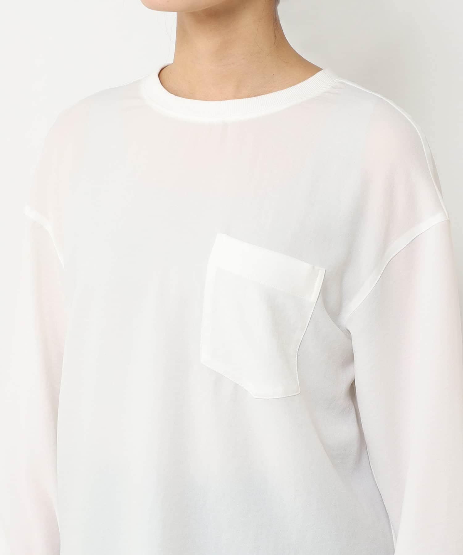 一枚で着ると白は透けますが、胸ポケットや後ろにボタンがありアクセントになっています。