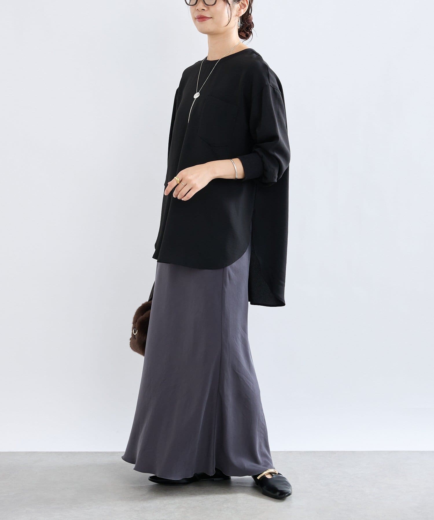 SNS総再生回数250万回突破!【さらっと着やすい!】ジョーゼットポケットブラウス