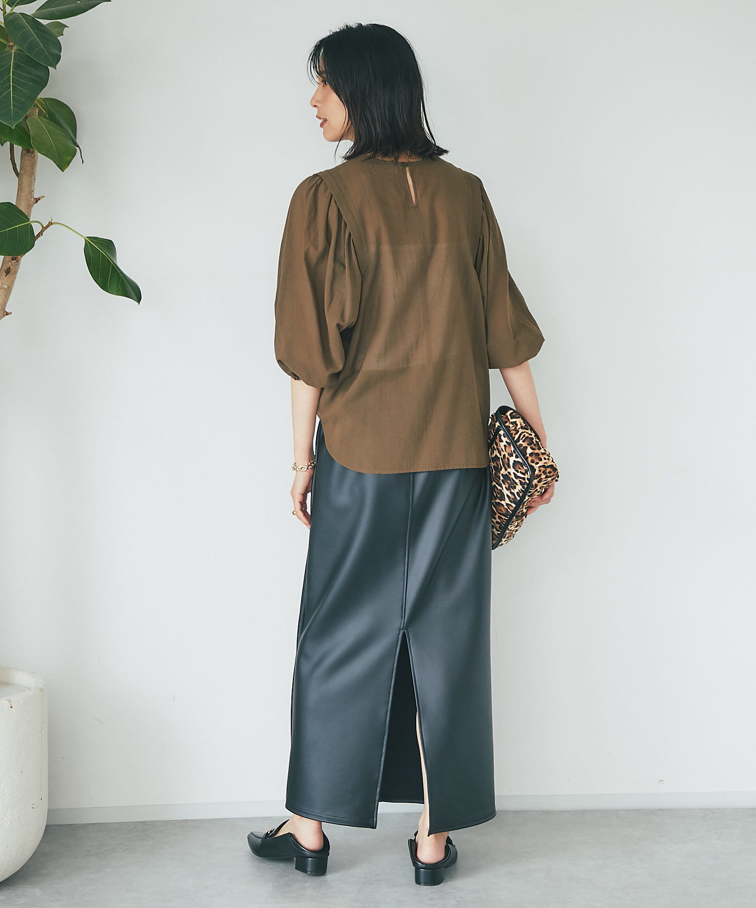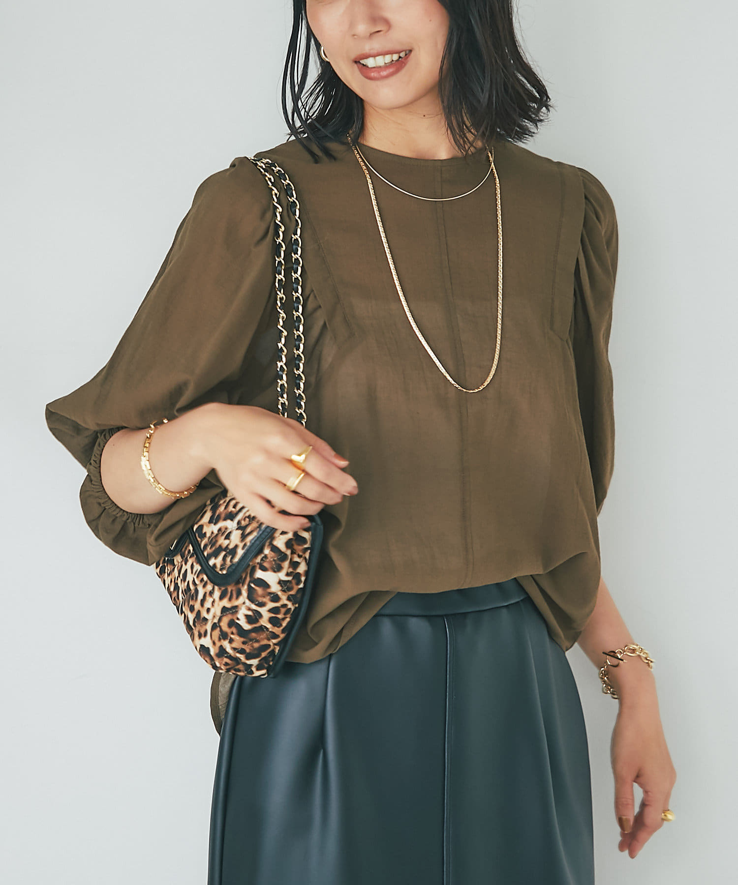 すっきりしたデザインで取り入れやすいボリュームブラウス
