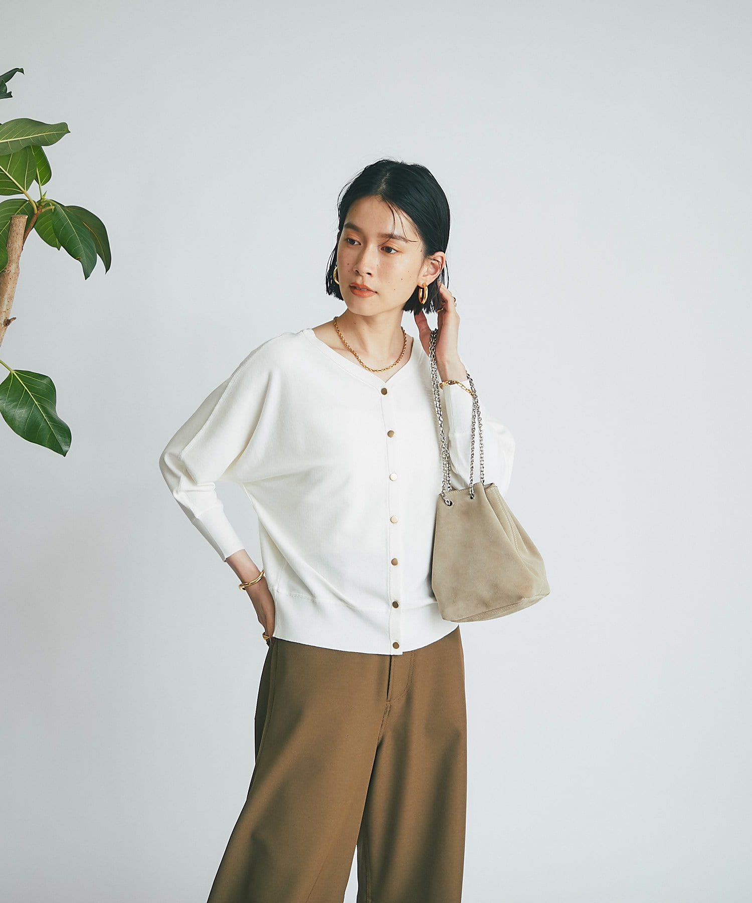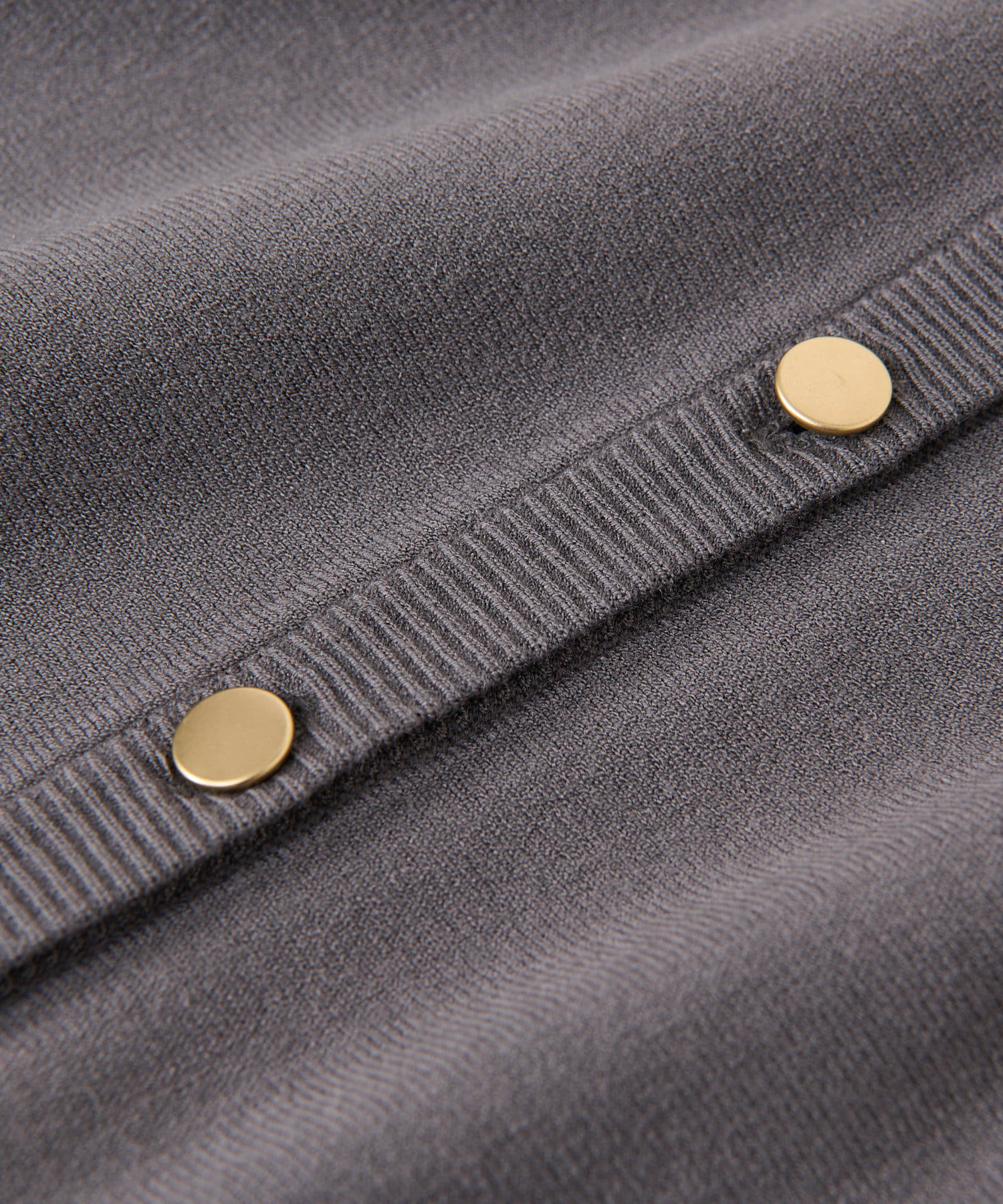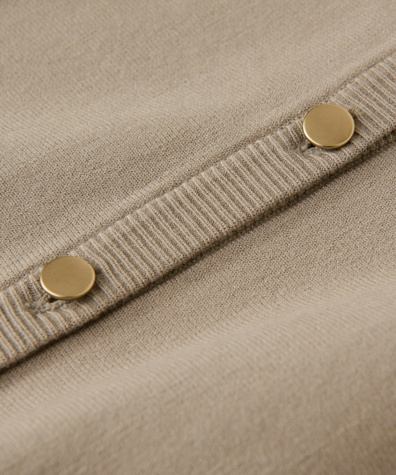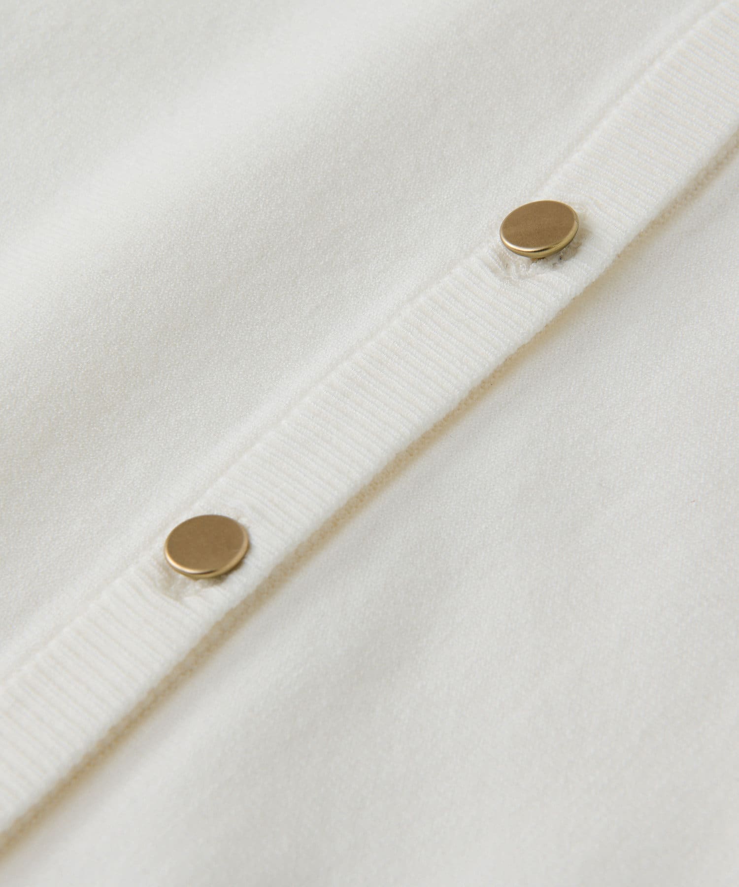 シンプルなデザインですが、ゴールドのボタンがアクセサリーのように女性らしい華やかさをプラスします。