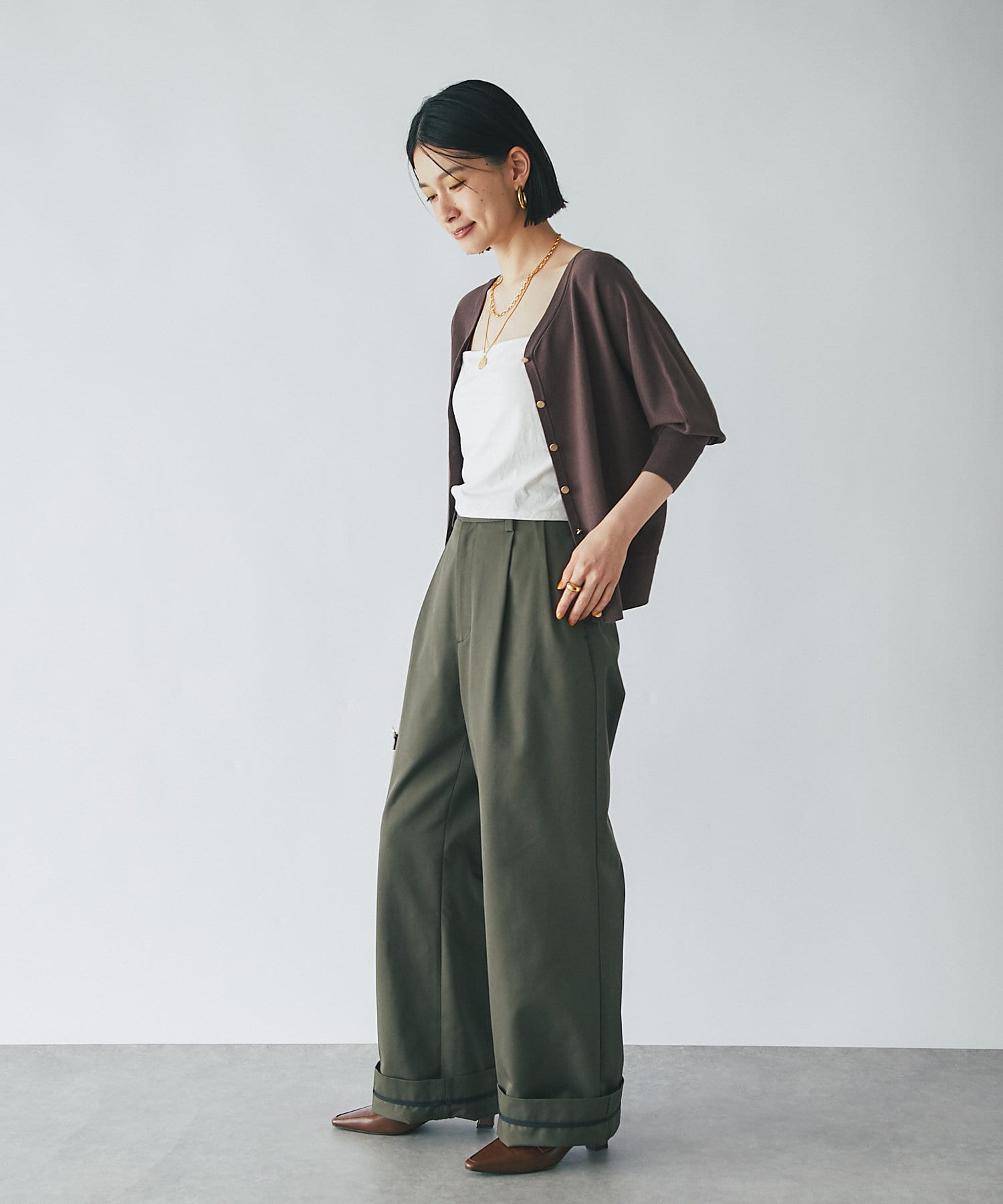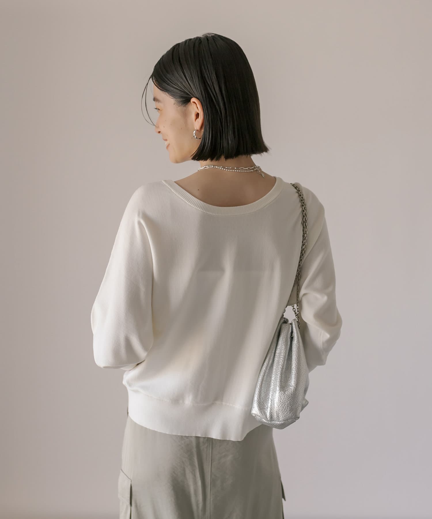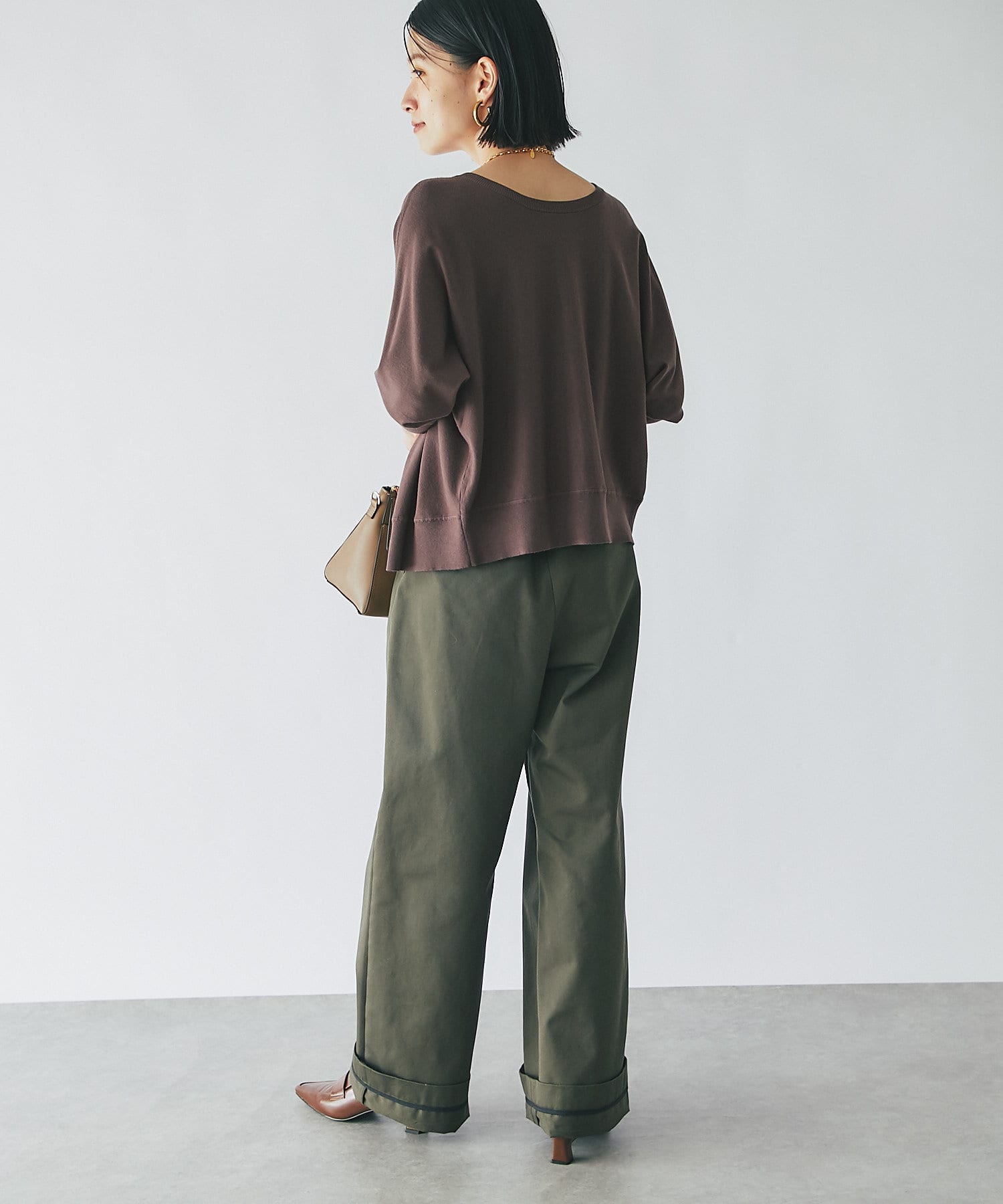 お好みのボトムに合わせて前後の向きを変えてコーディネートしていただけます。