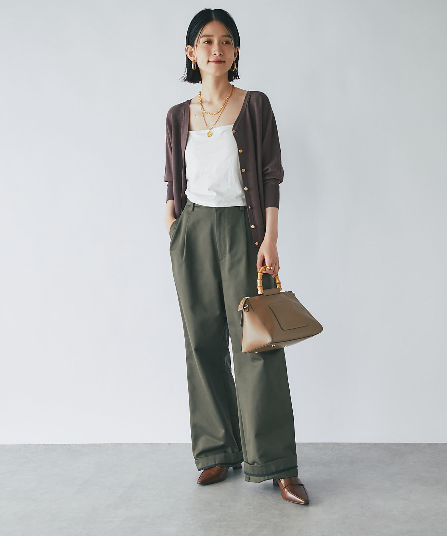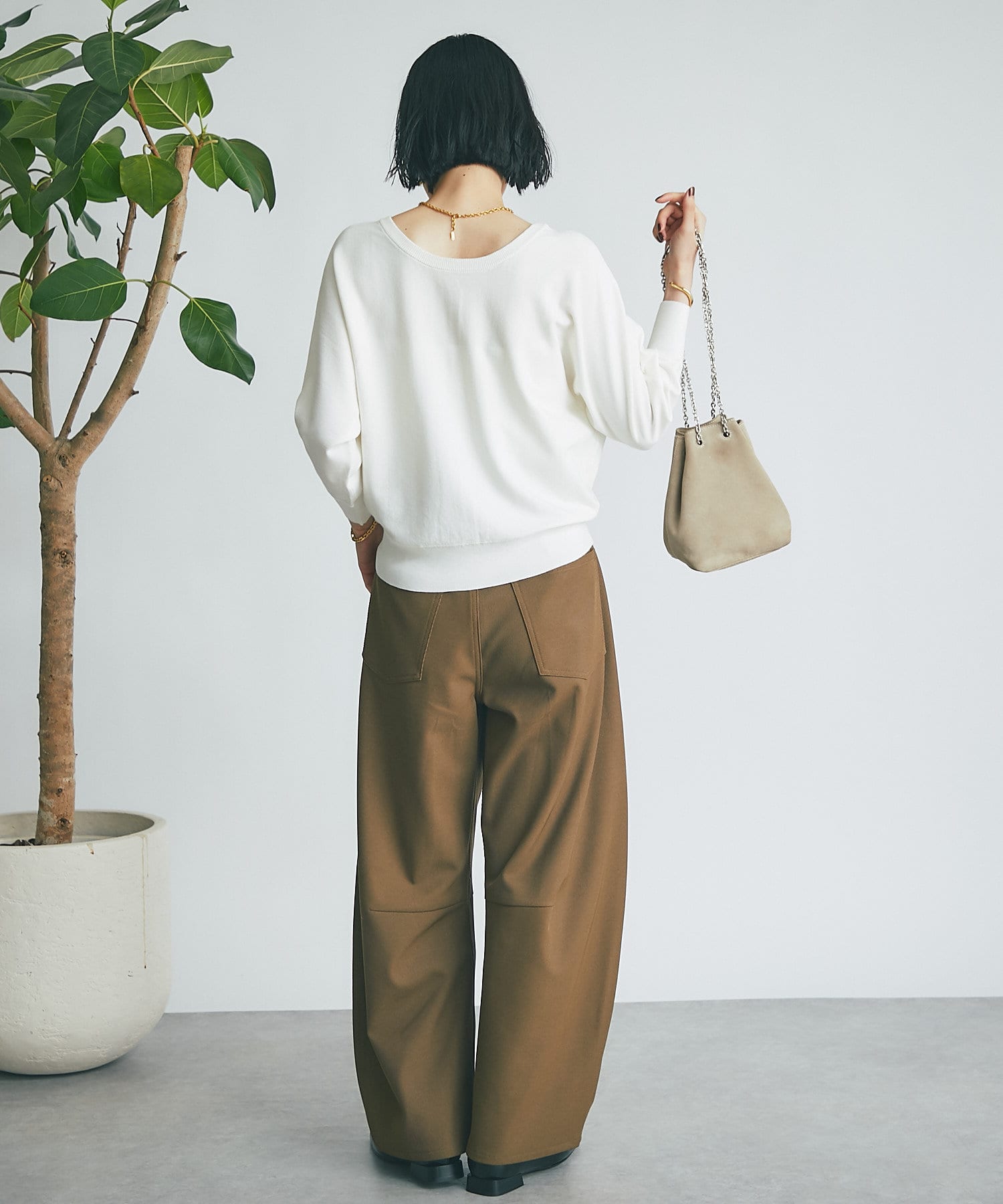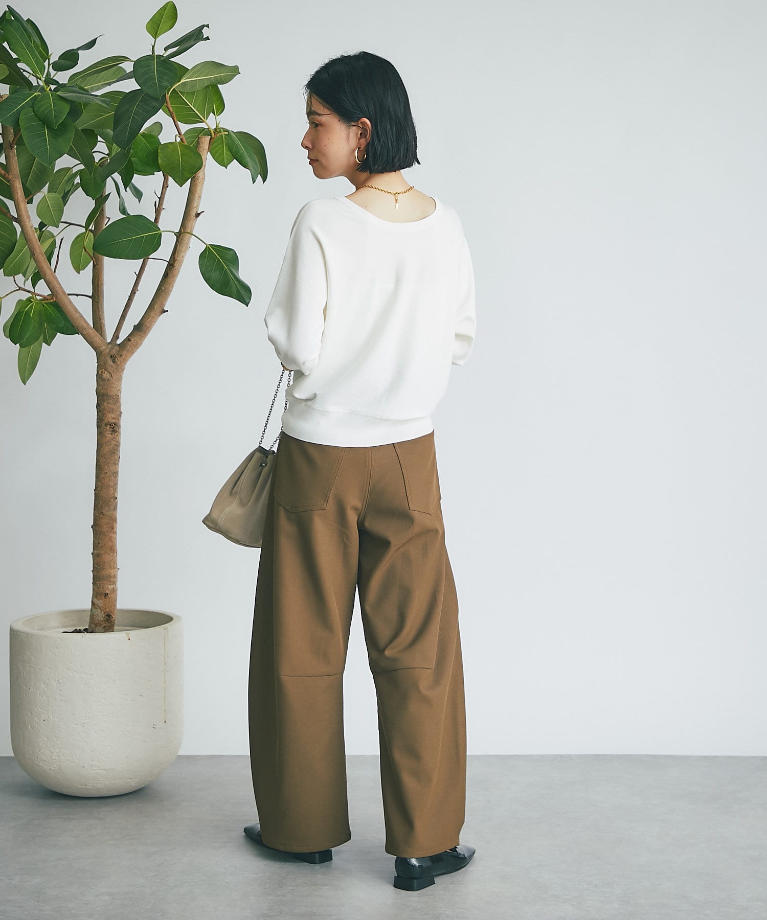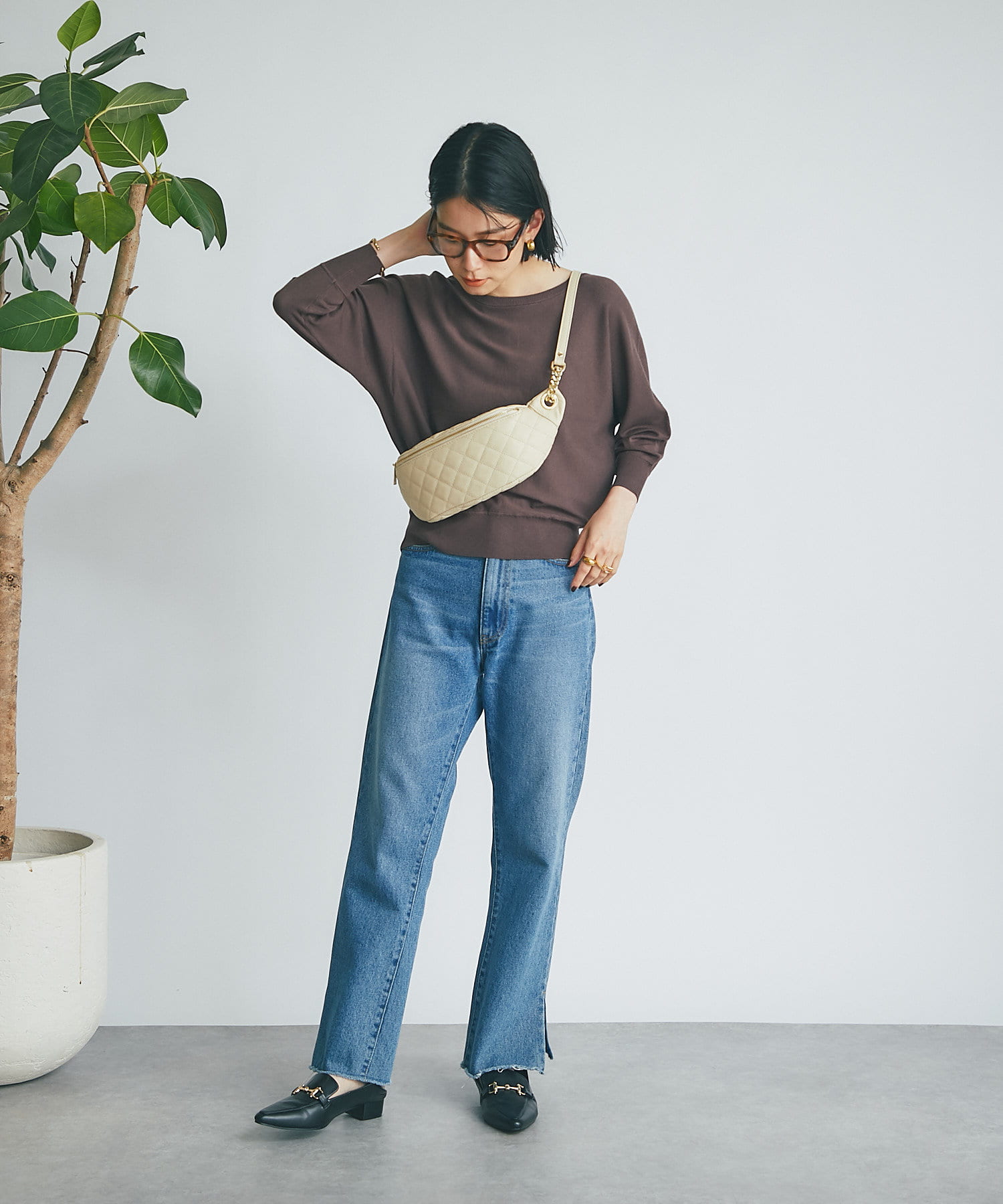 お好みのボトムに合わせて前後の向きを変えてコーディネートしていただけます。