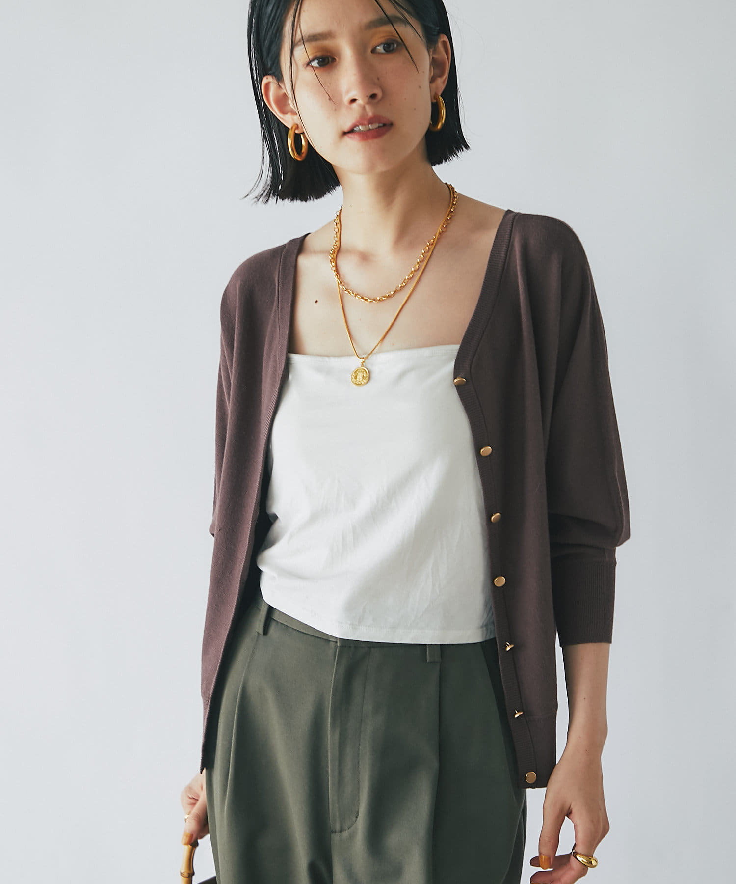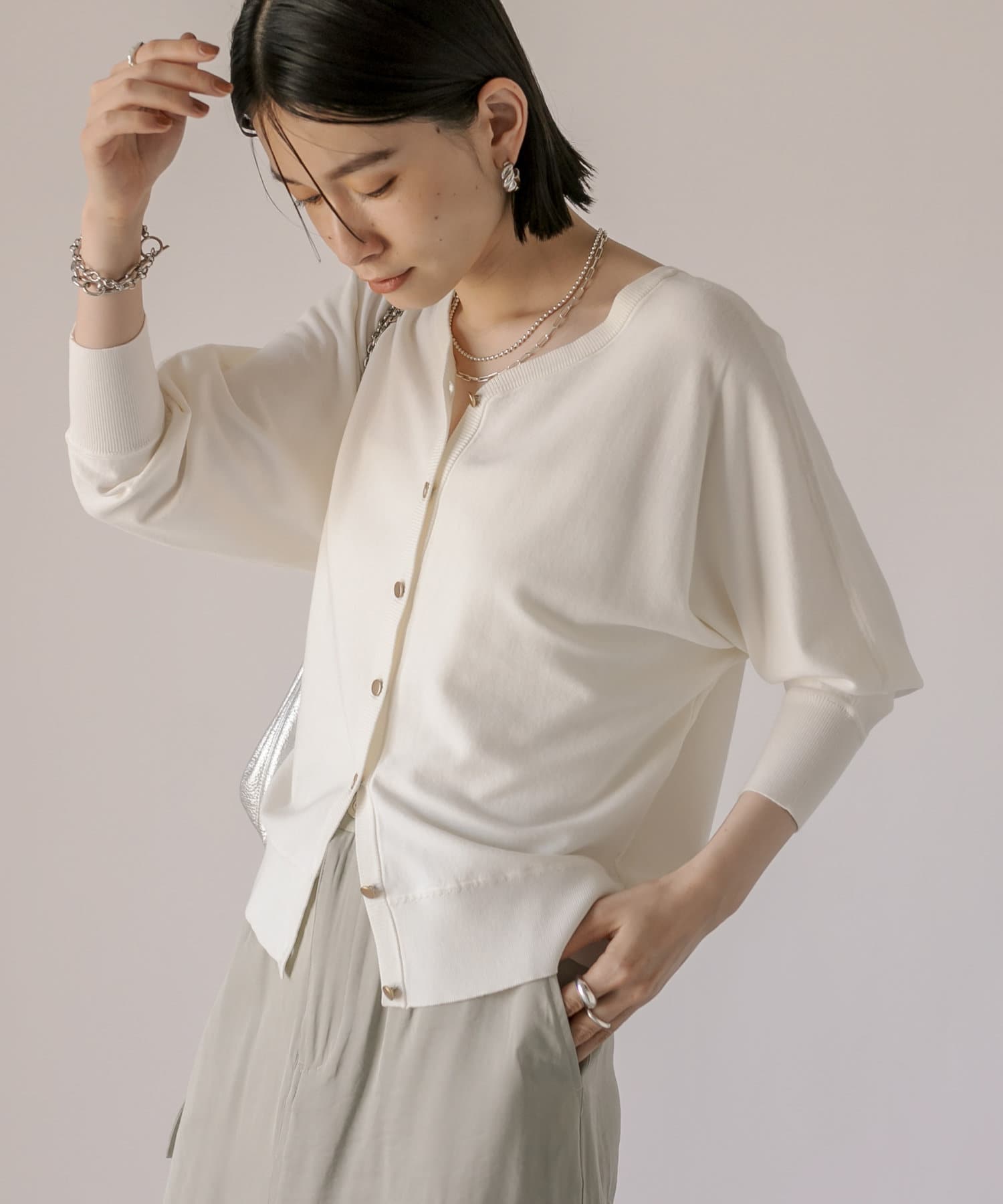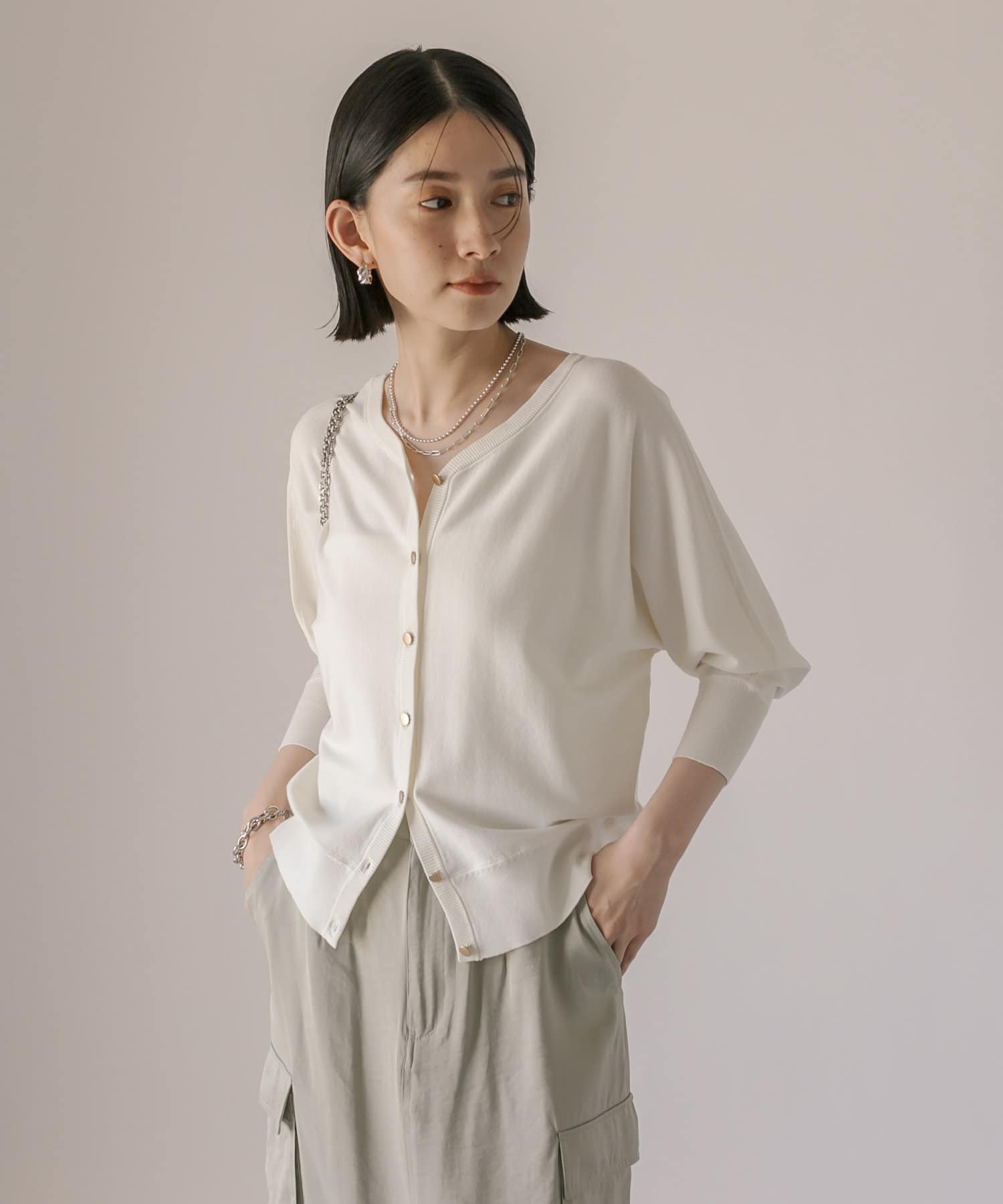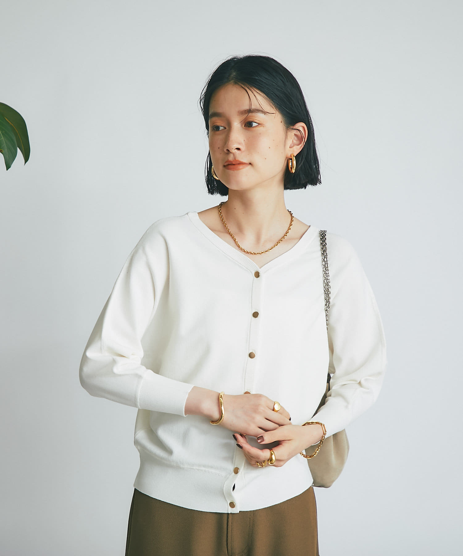 ボタンを開けてワンピース等の上に羽織っていただけば、季節の変わり目から活躍するアイテムです。