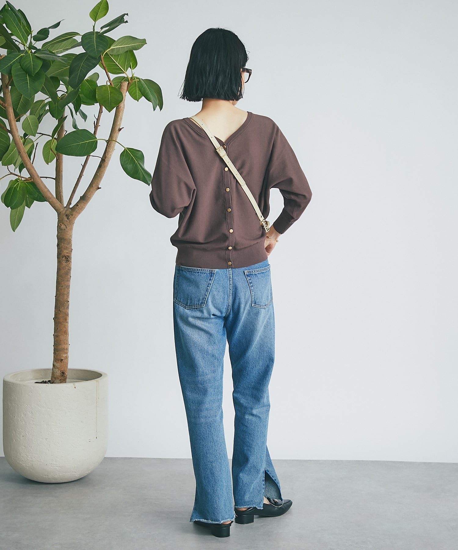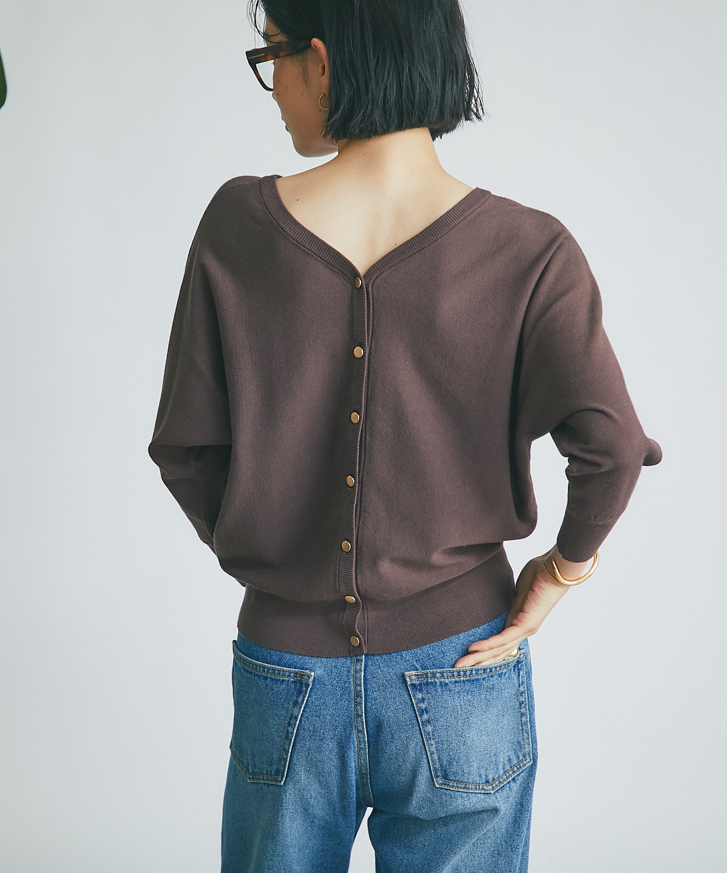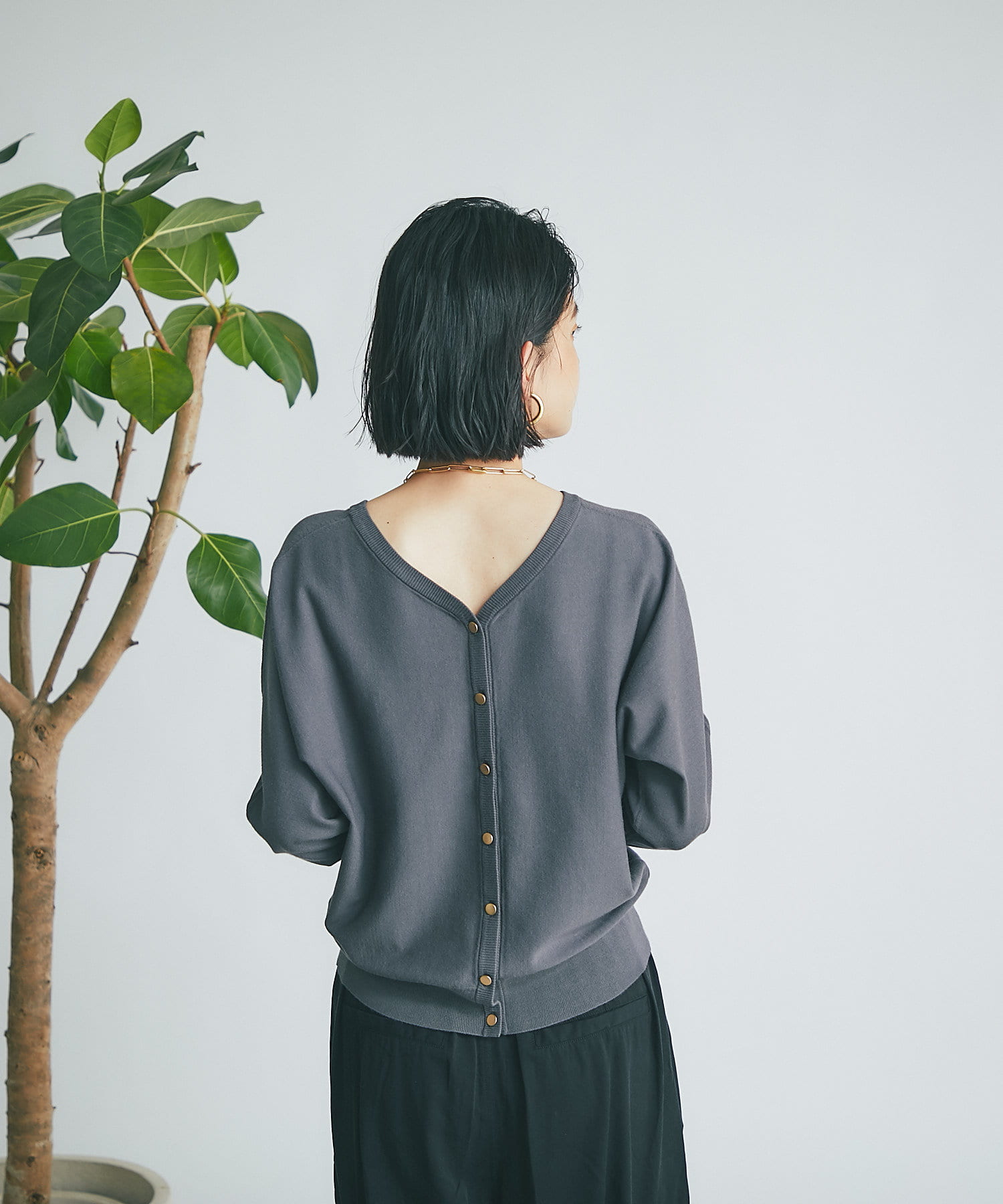 ボタンを前にしてカーディガンとしても、後ろにしてプルオーバーニットとしてもお使いいただけます。