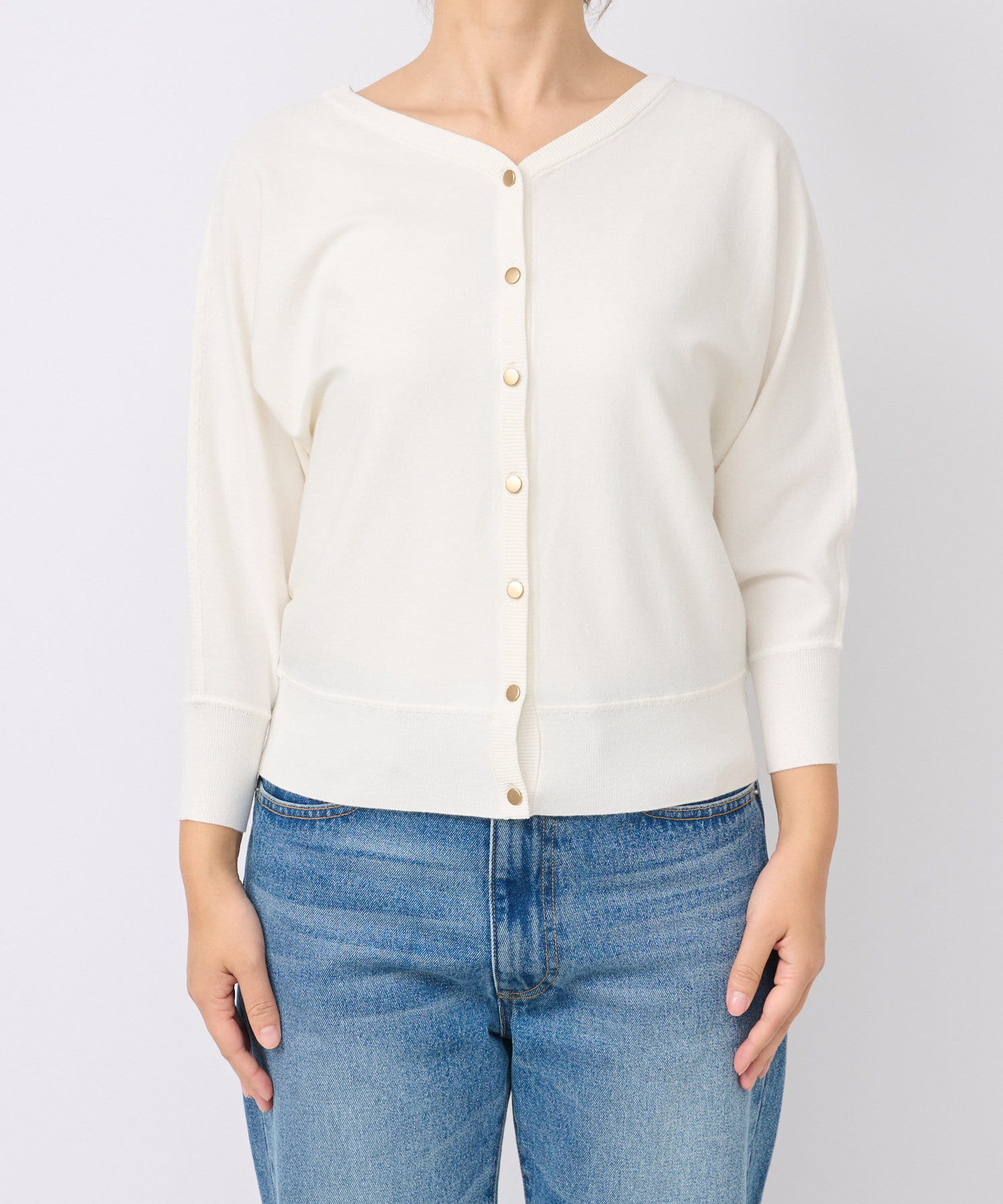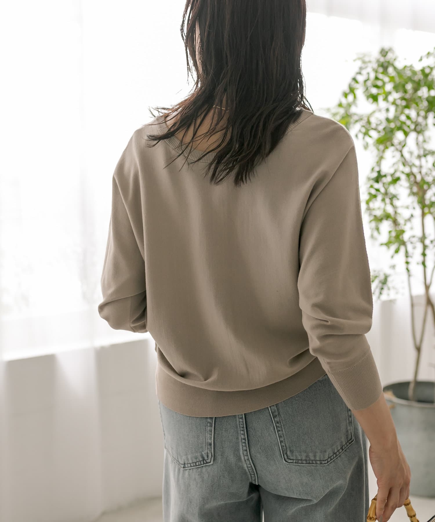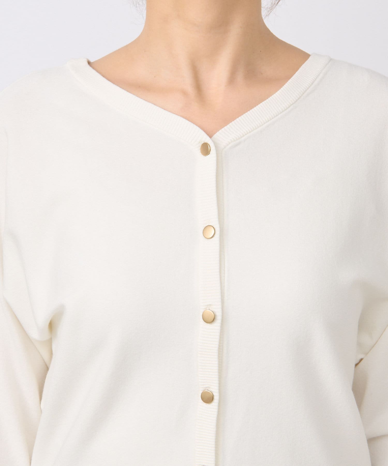 ボタンを前にしてカーディガンとしても、後ろにしてプルオーバーニットとしてもお使いいただけます。
