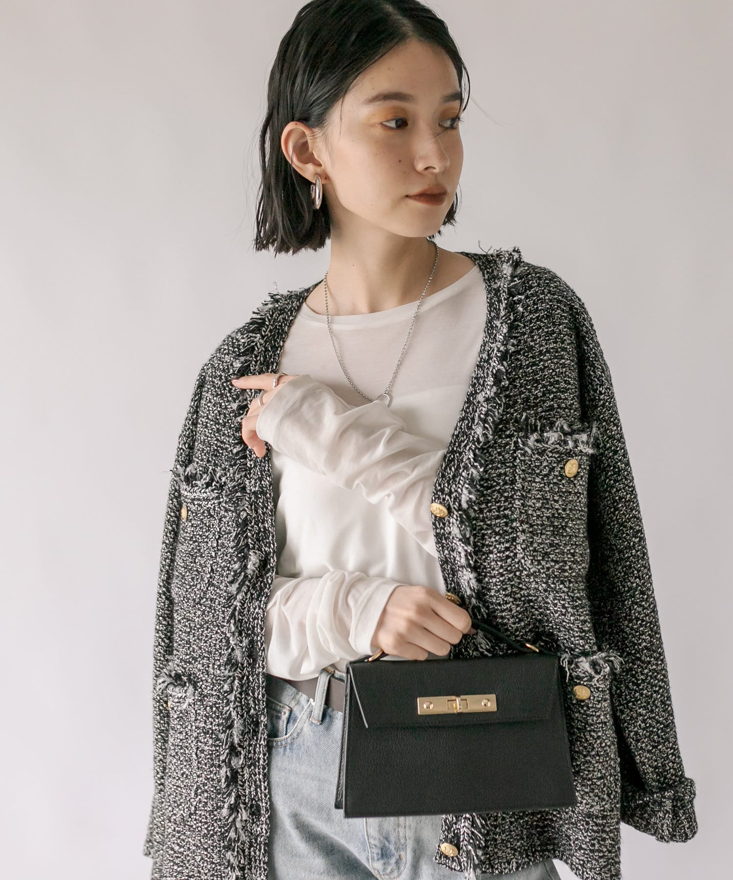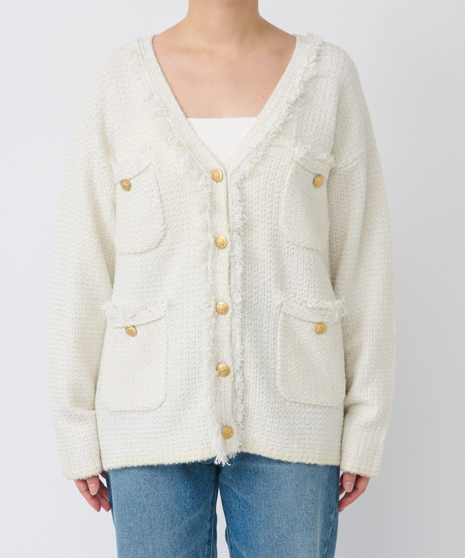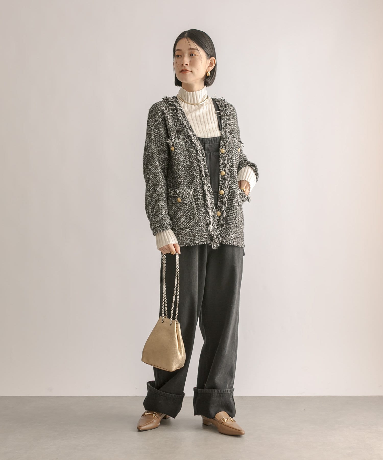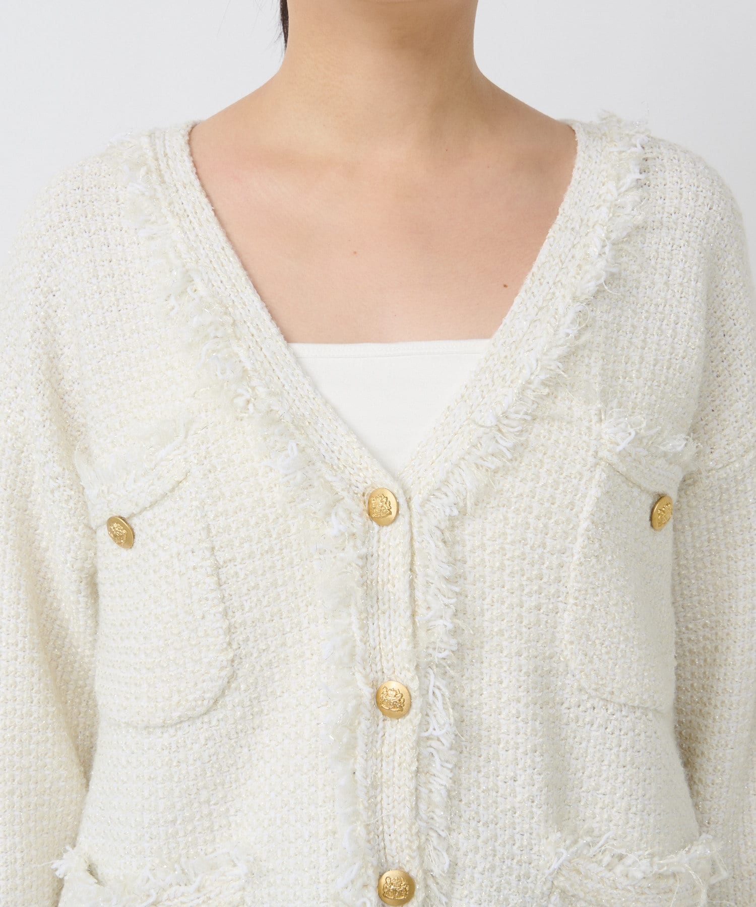 金ボタンとツイード生地の風合いが高級感のある1枚です。