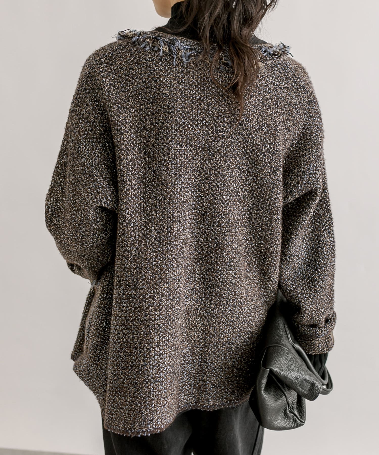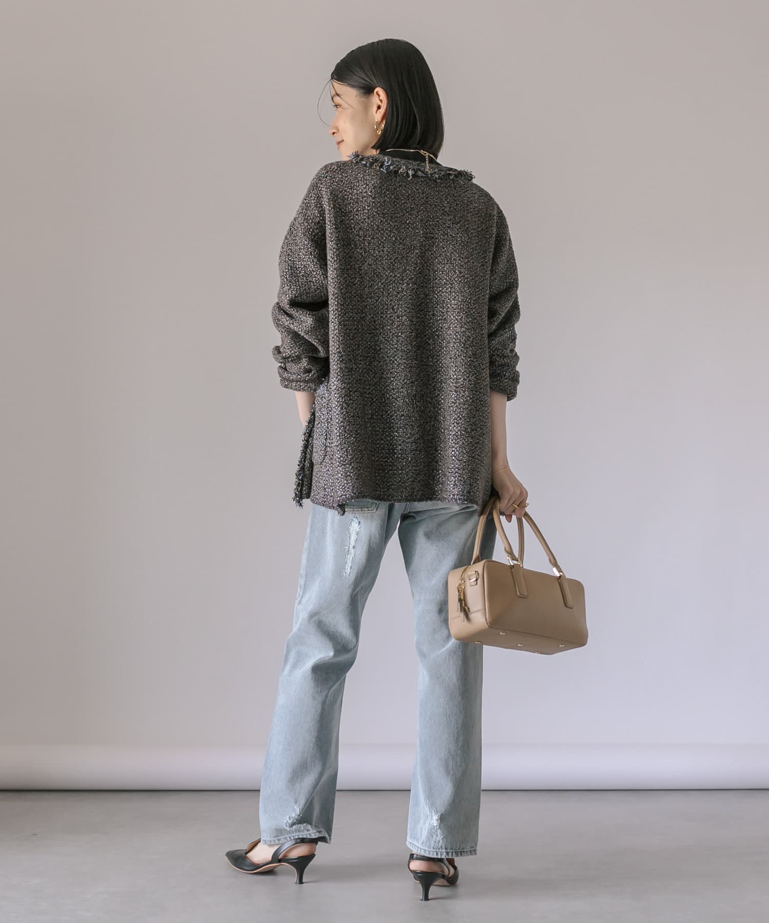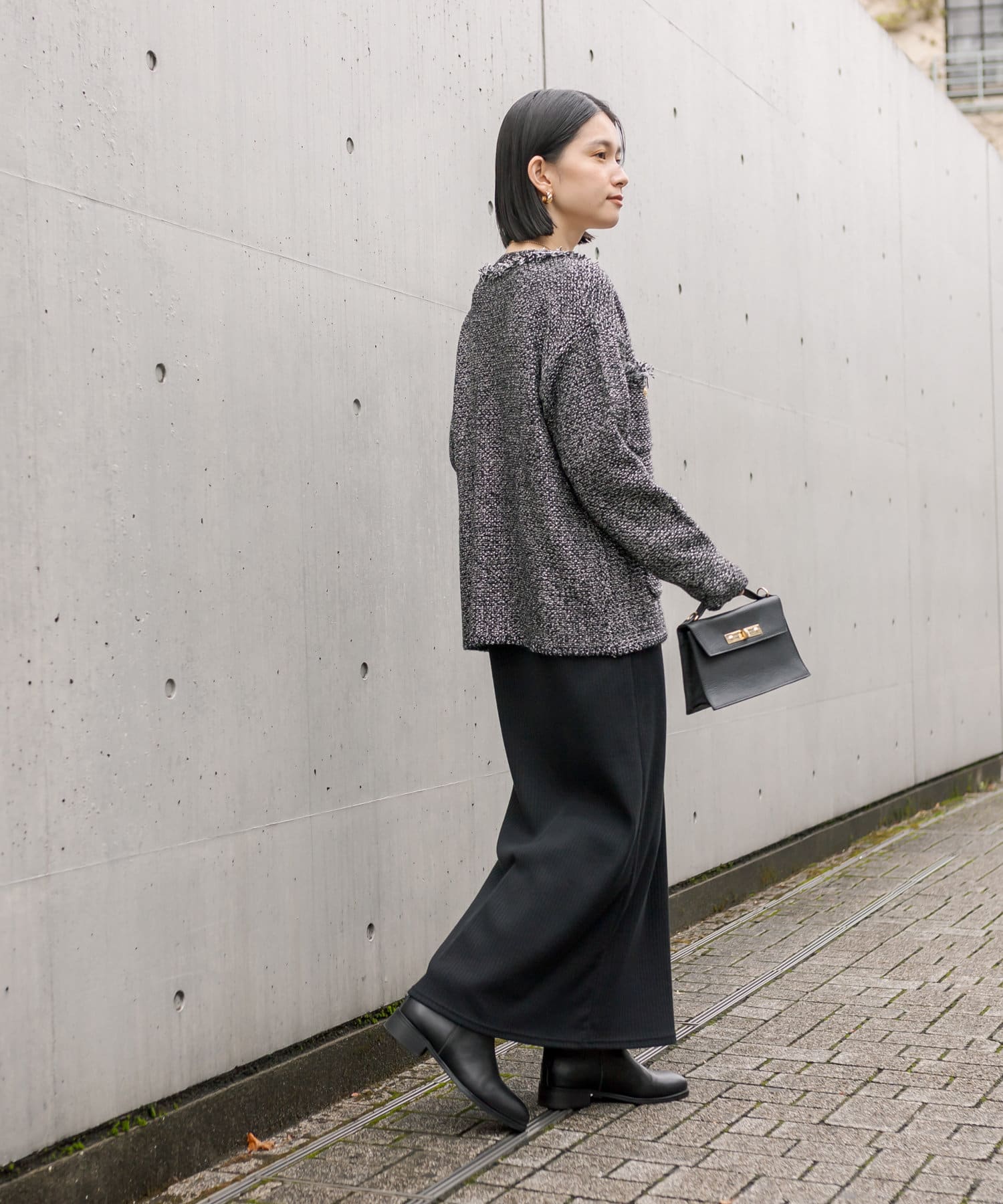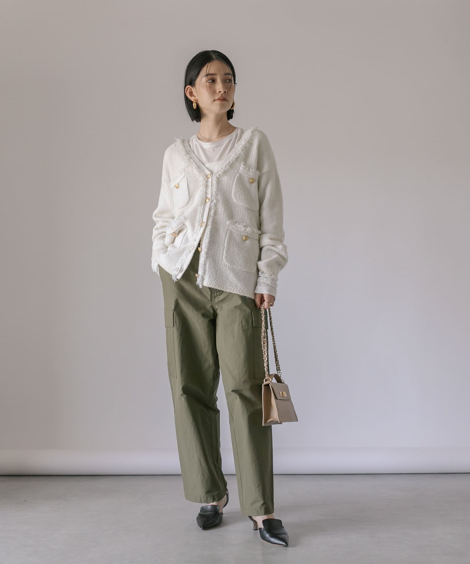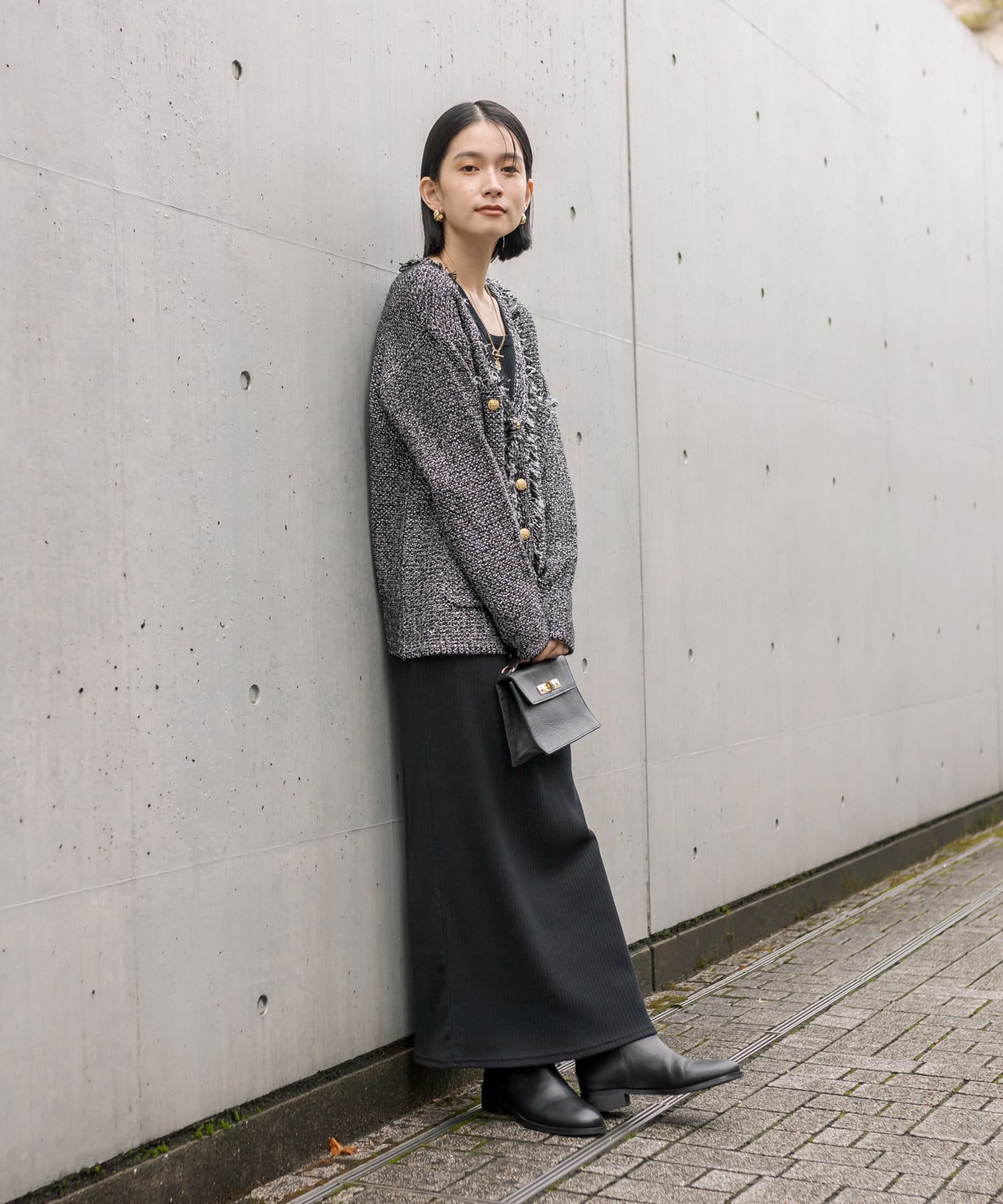 金ボタンとツイード生地の風合いが高級感のある1枚です。