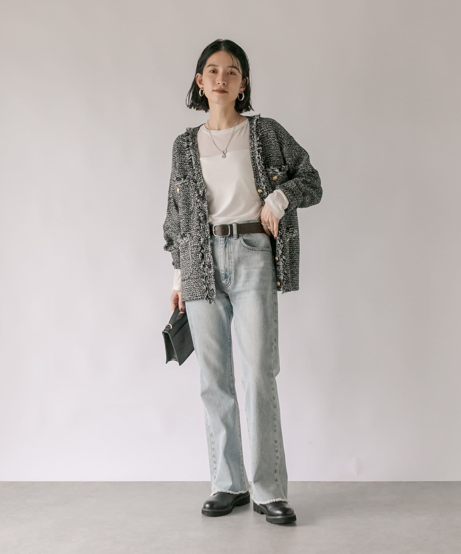 長すぎない着丈で、インナーやボトムとの丈のバランスがとりやすいのも嬉しいポイント。