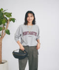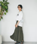 ゆったりとしたサイズ感のカジュアルなロングTシャツは、レディライクなアイテムも甘くなりすぎず着れる便利なアイテム。