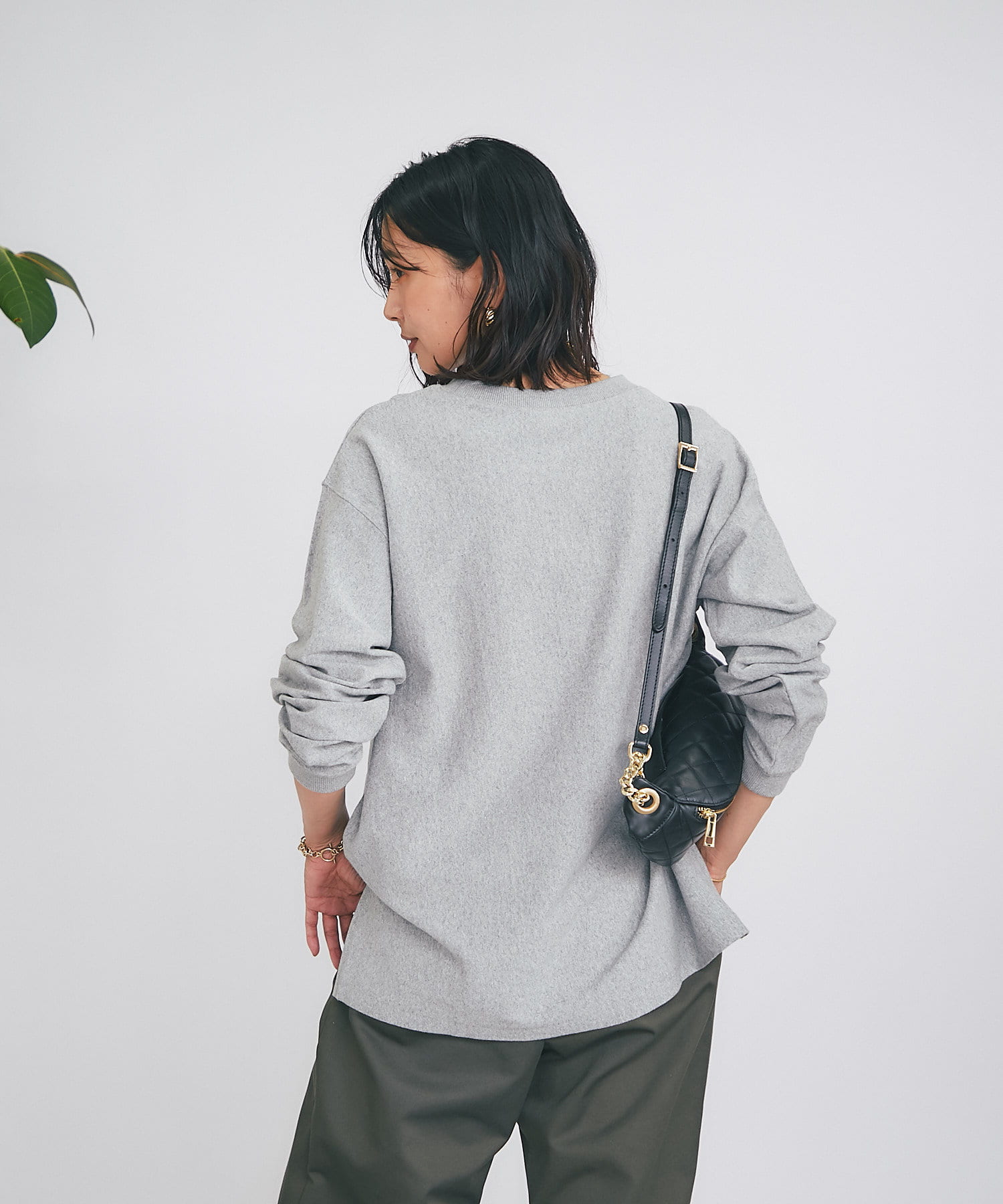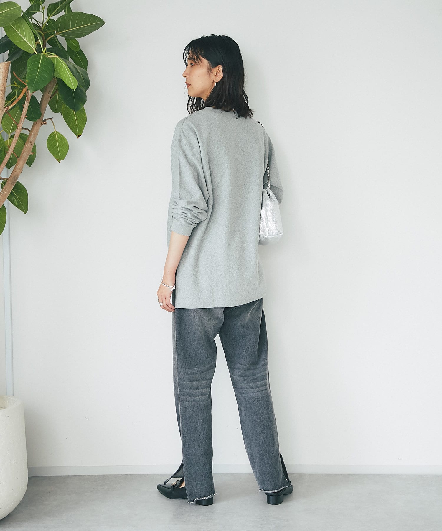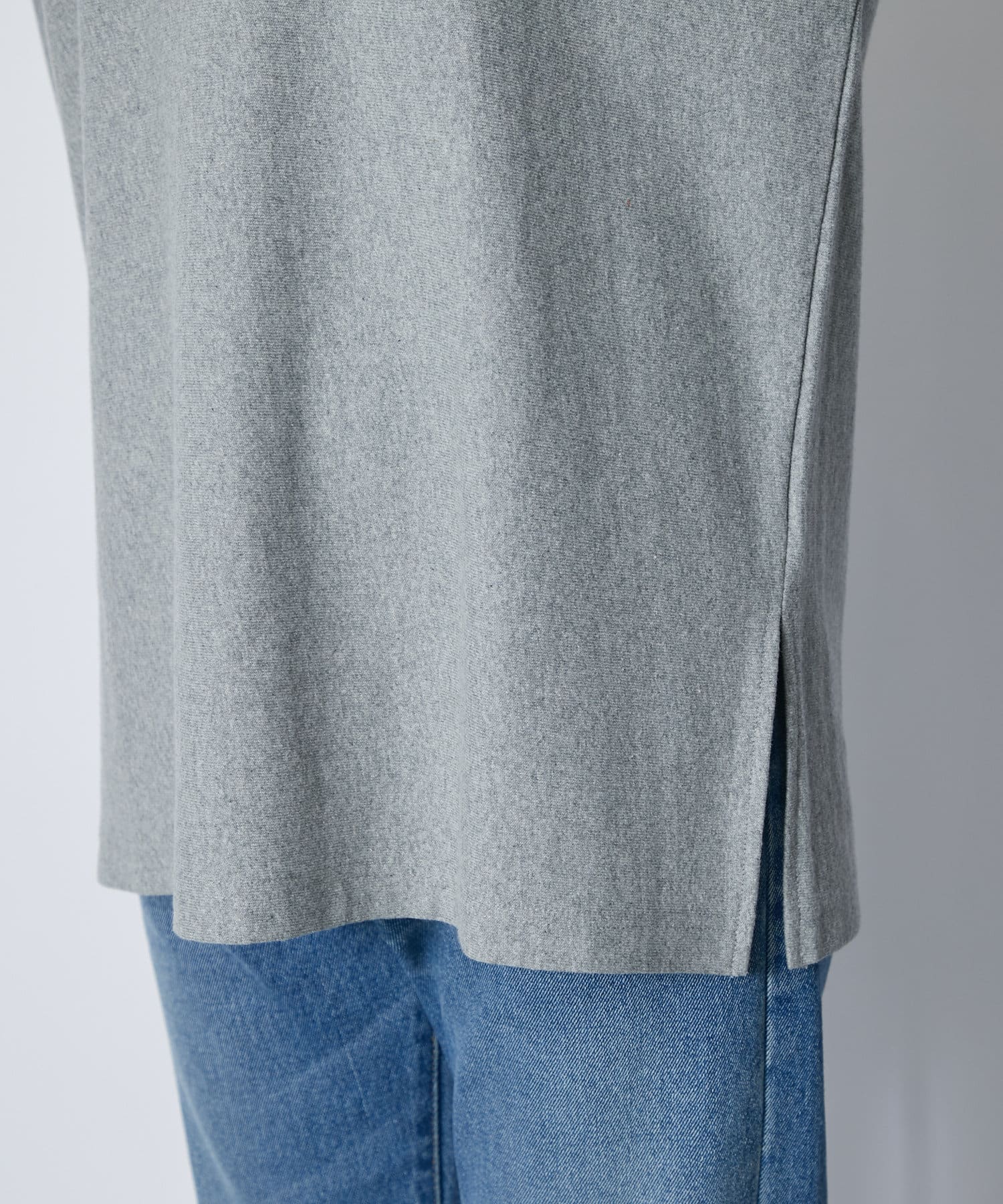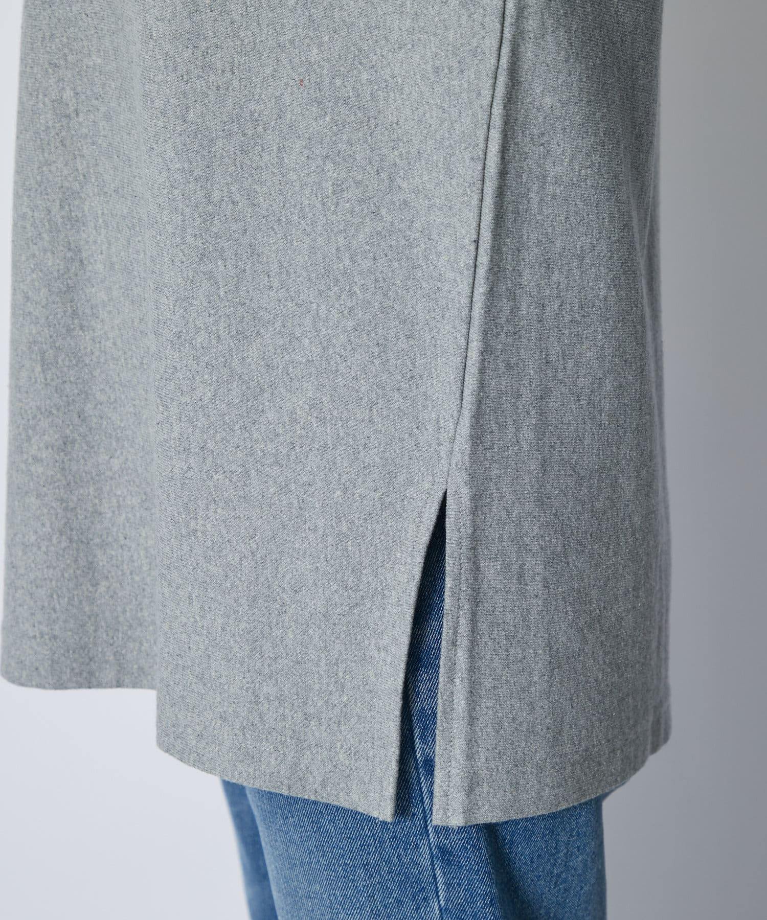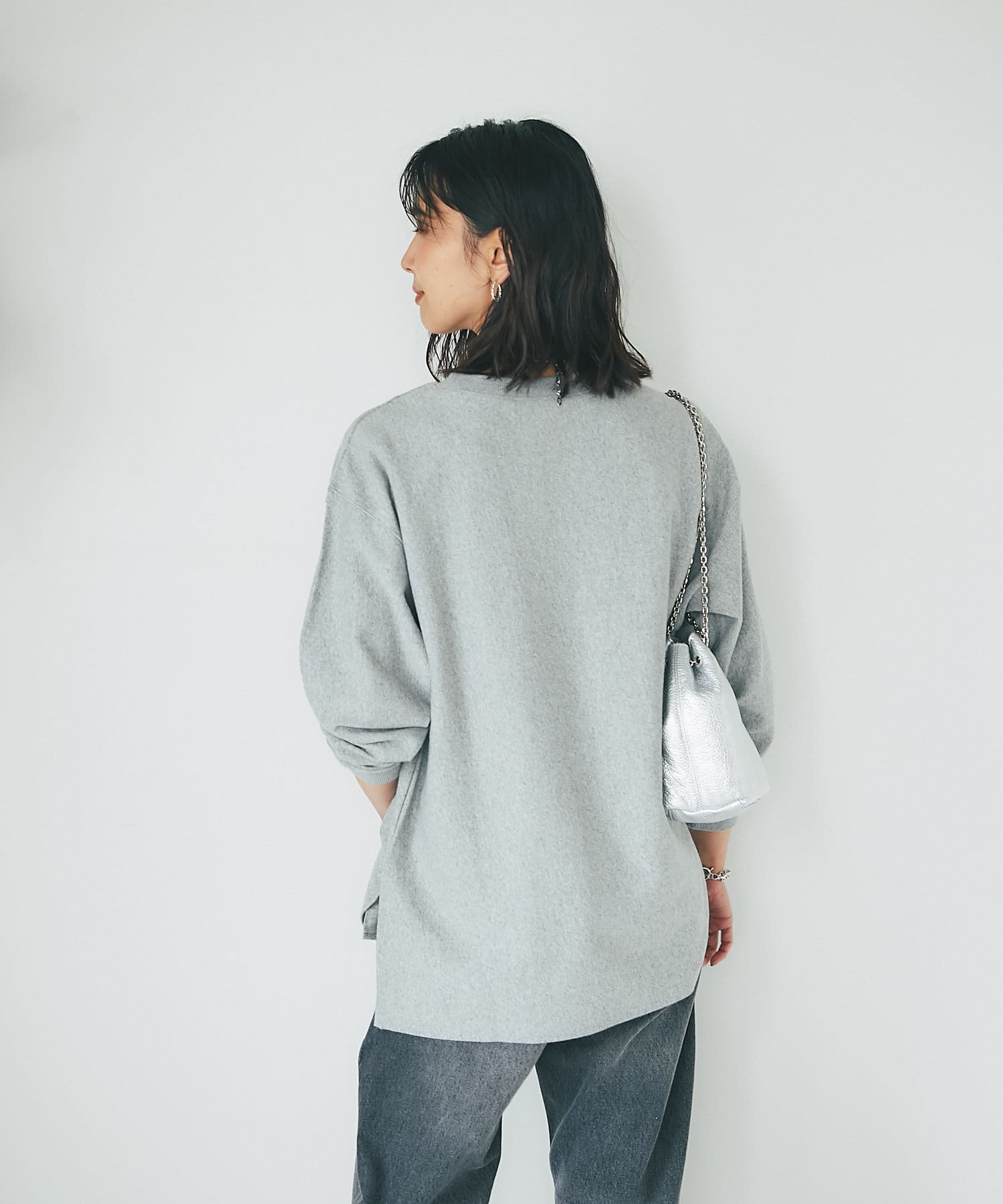お尻が隠れる長めの着丈なので、タイトスカートなど細身のボトムとも合わせやすいデザイン。