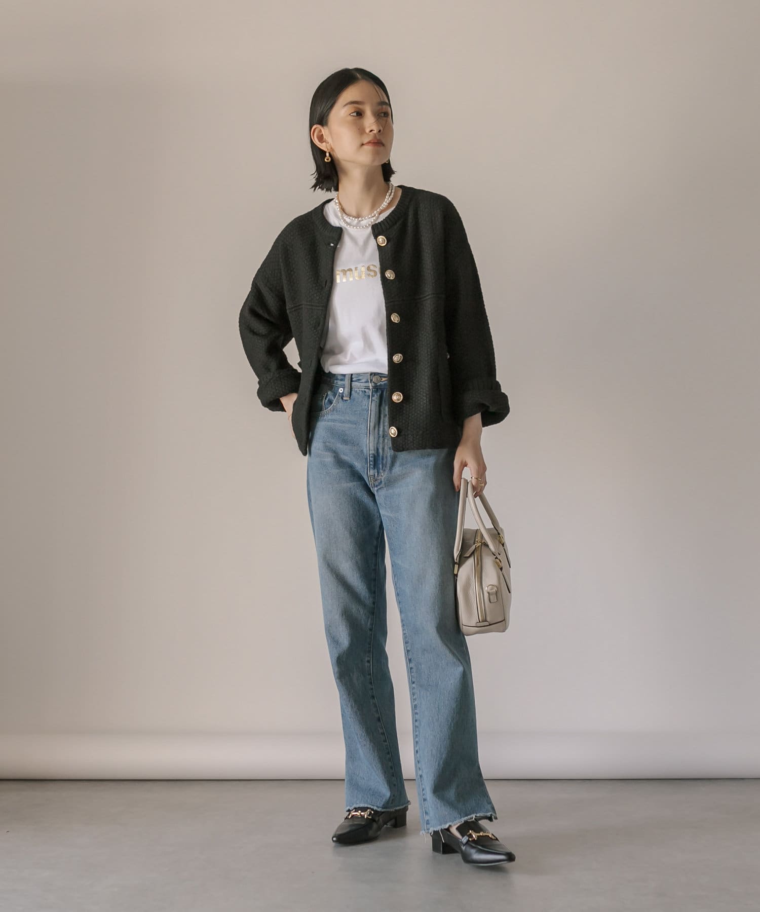 シンプルな定番シルエットだからこそ、どんなアイテムとも合わせやすい1枚です。