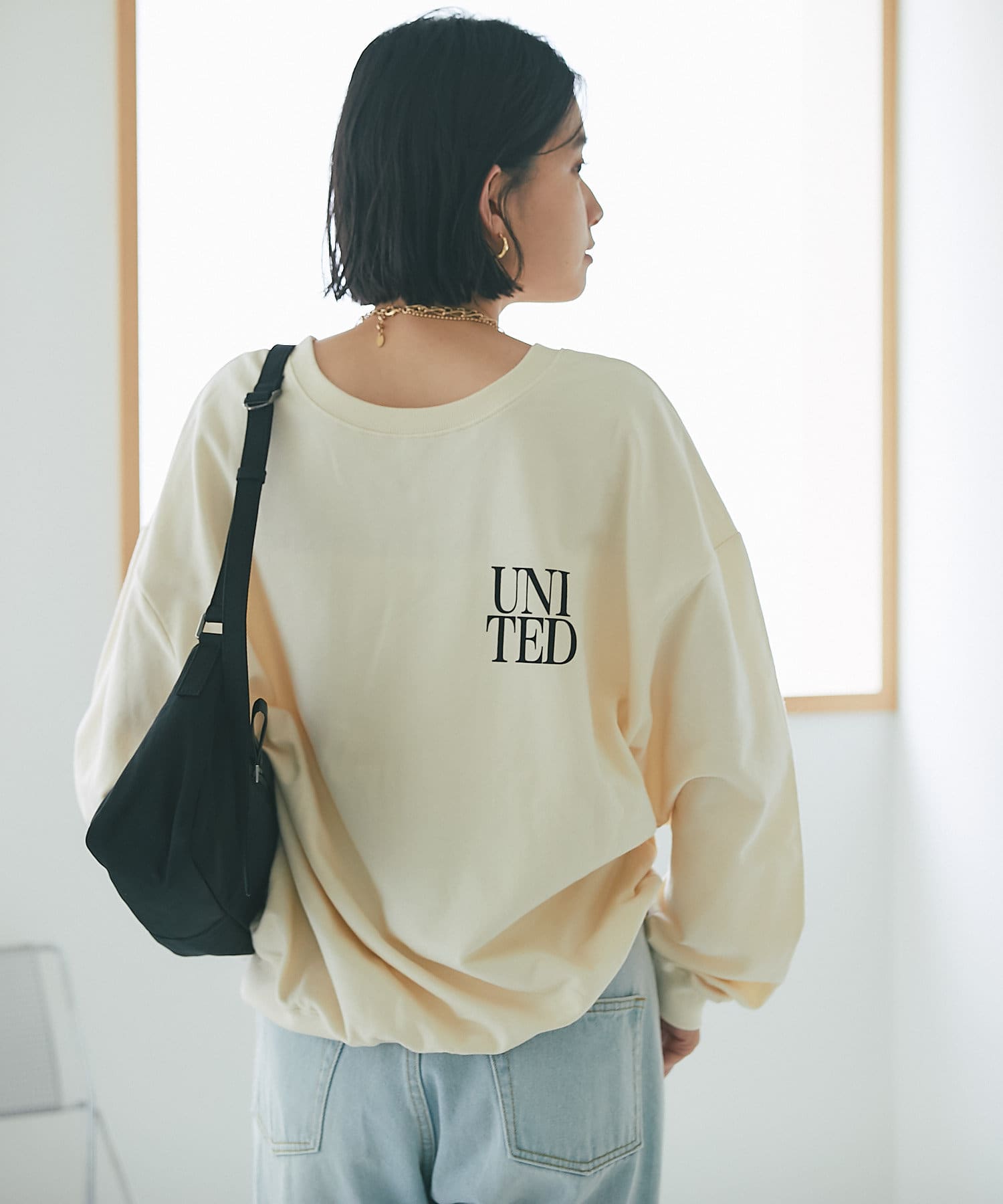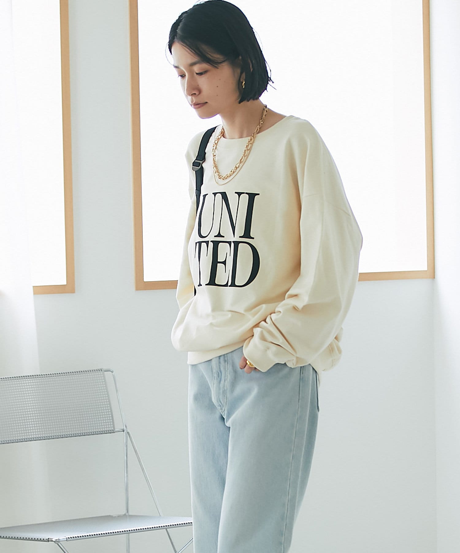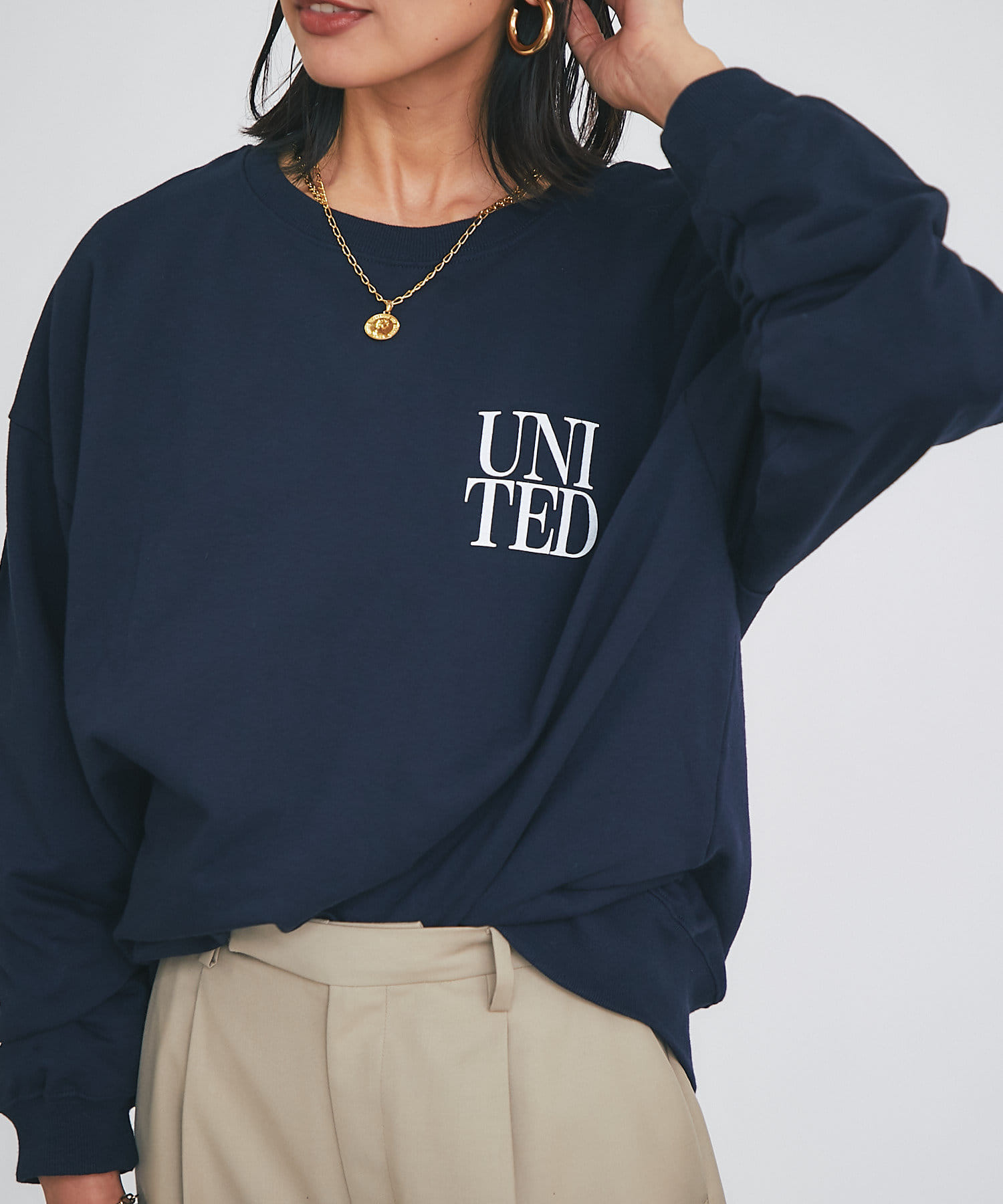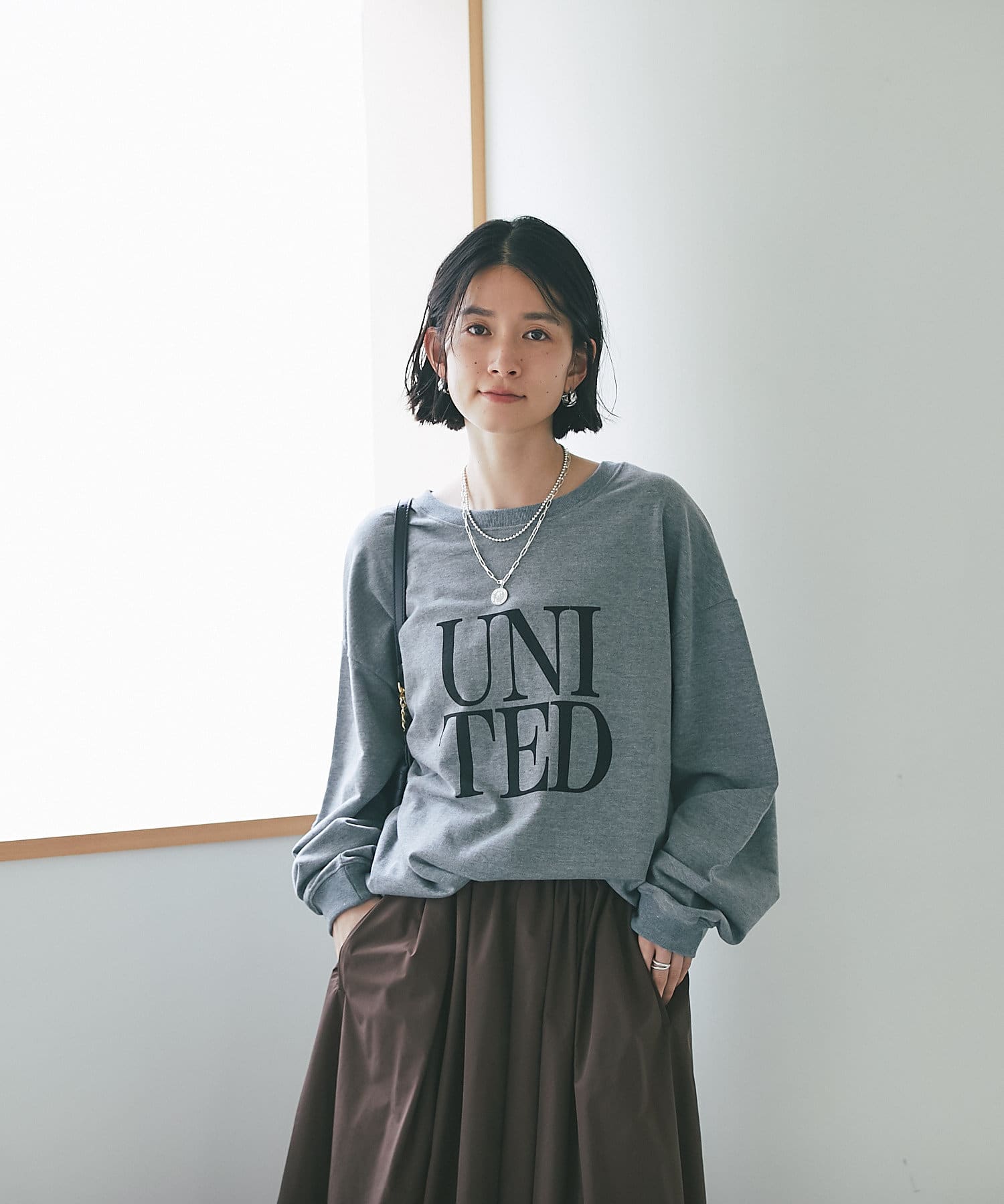 柔らかく落ち感のある生地なので、ボリュームが出すぎずスタイリングしやすいカットソーです。