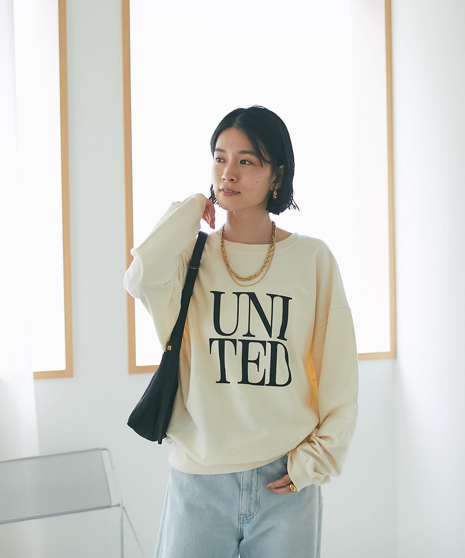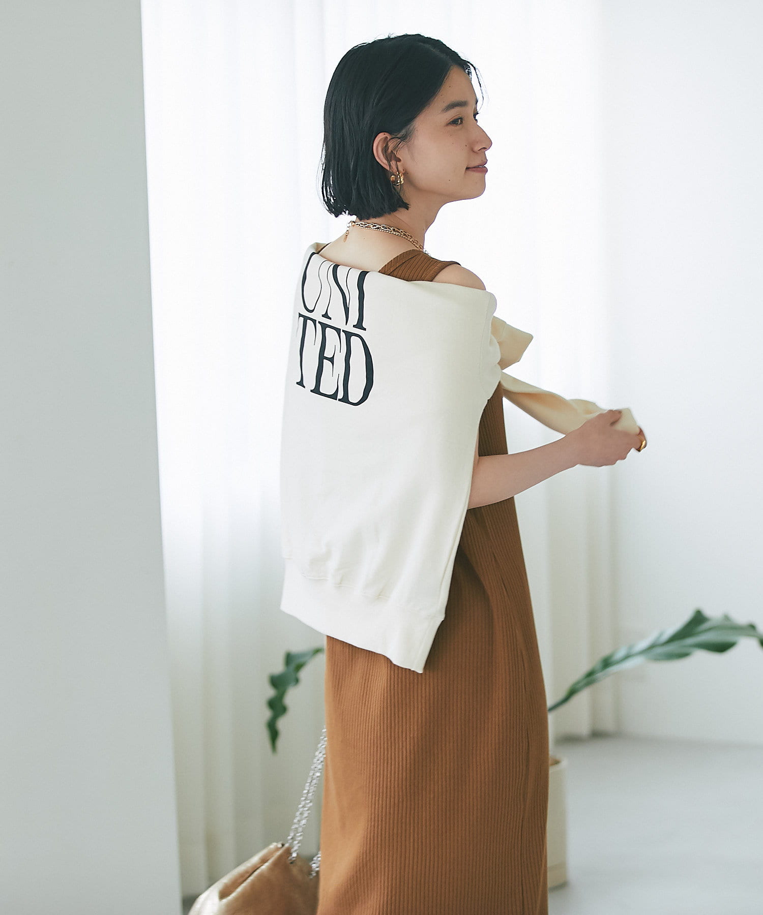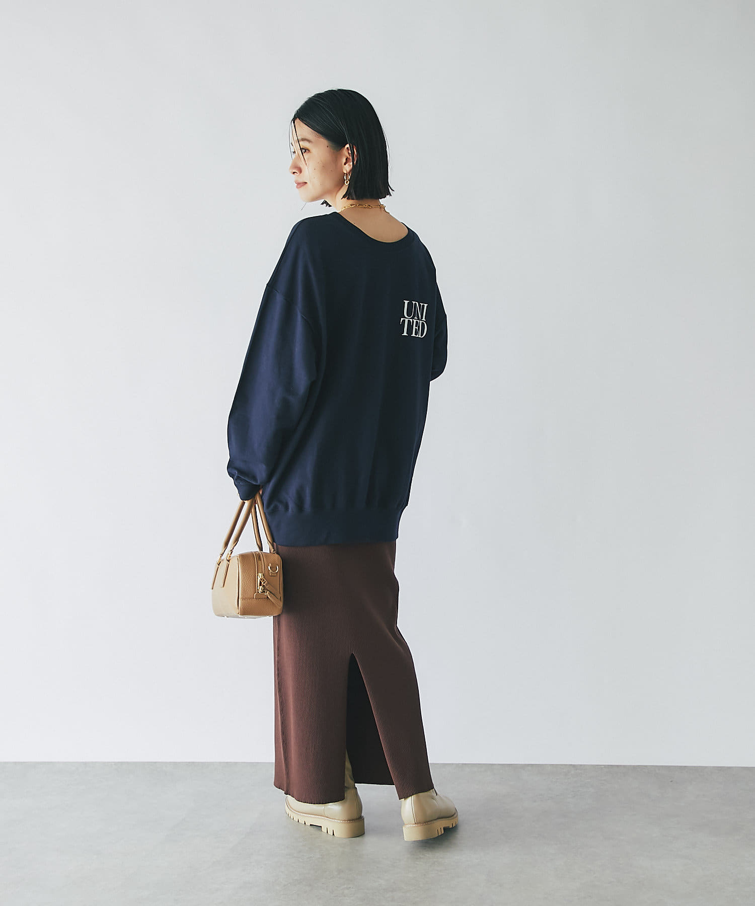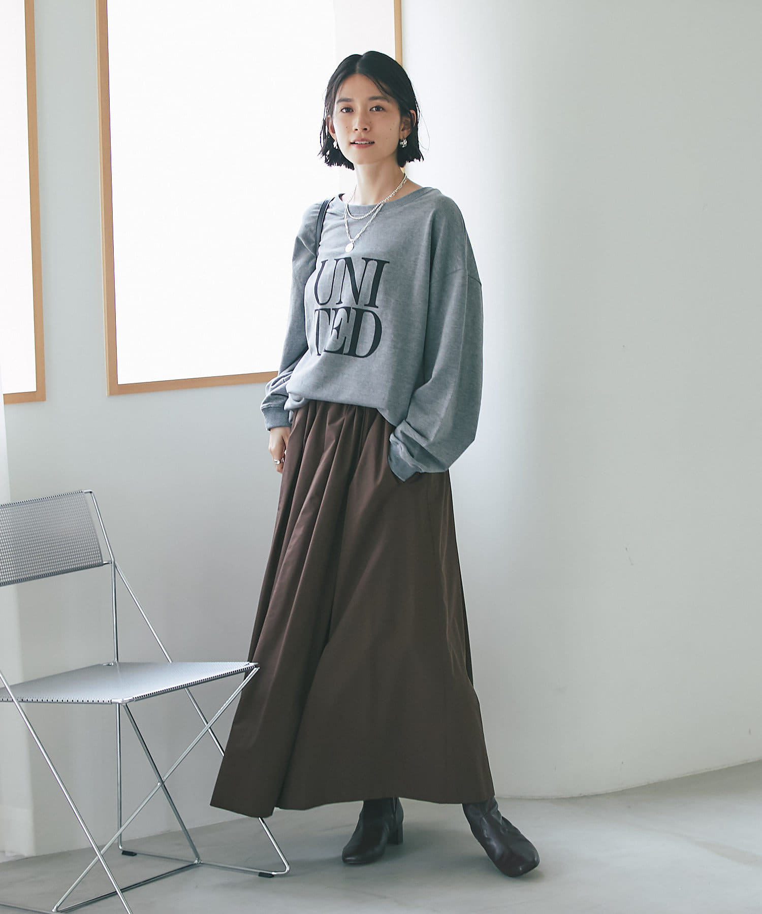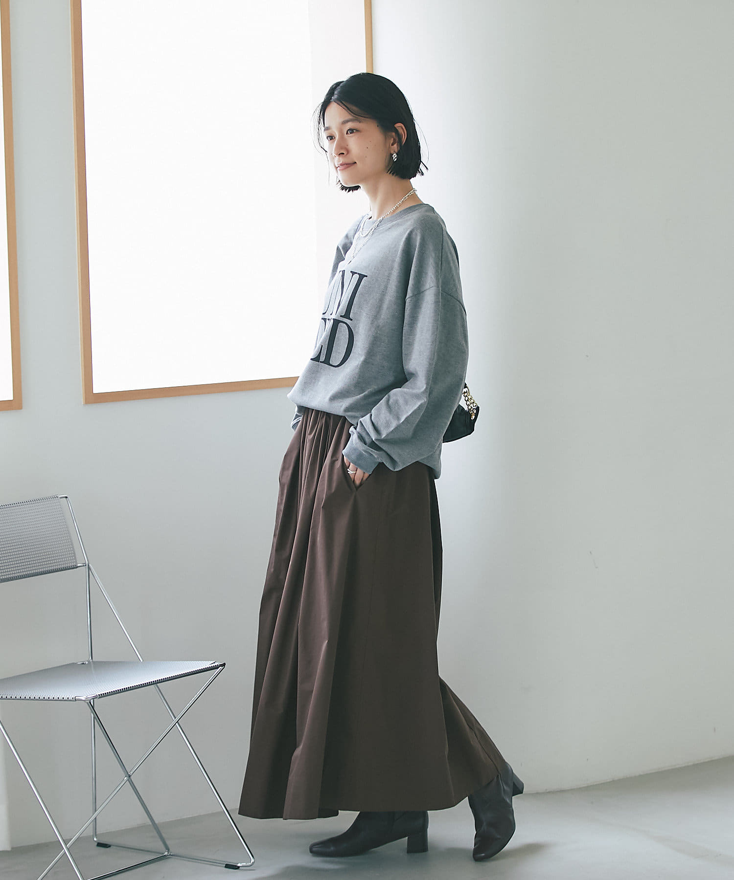 柔らかく落ち感のある生地なので、ボリュームが出すぎずスタイリングしやすいカットソーです。