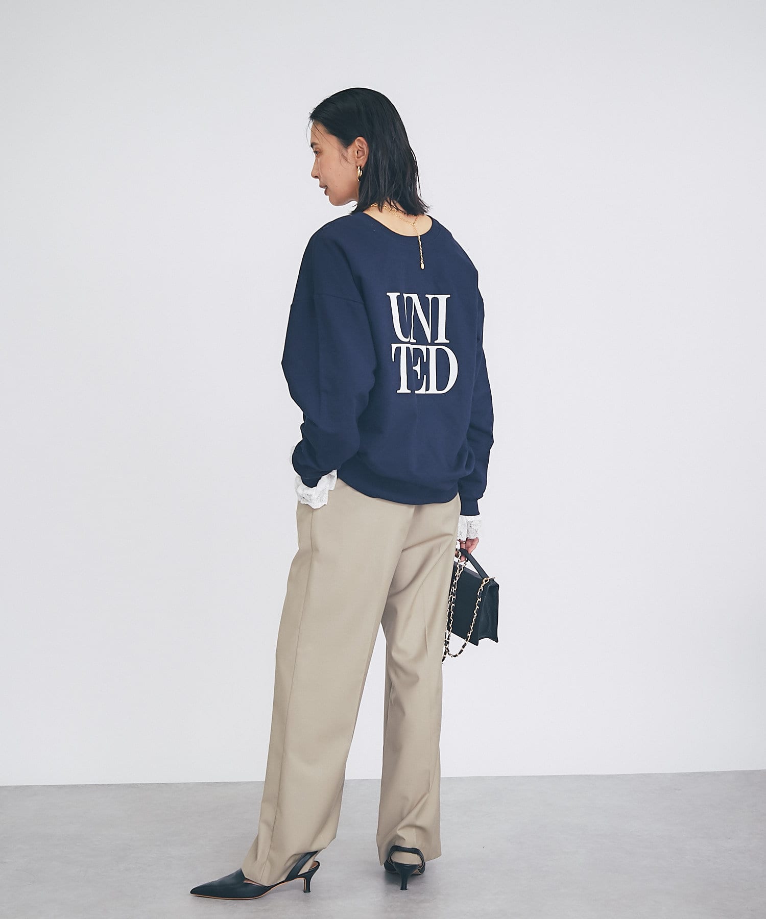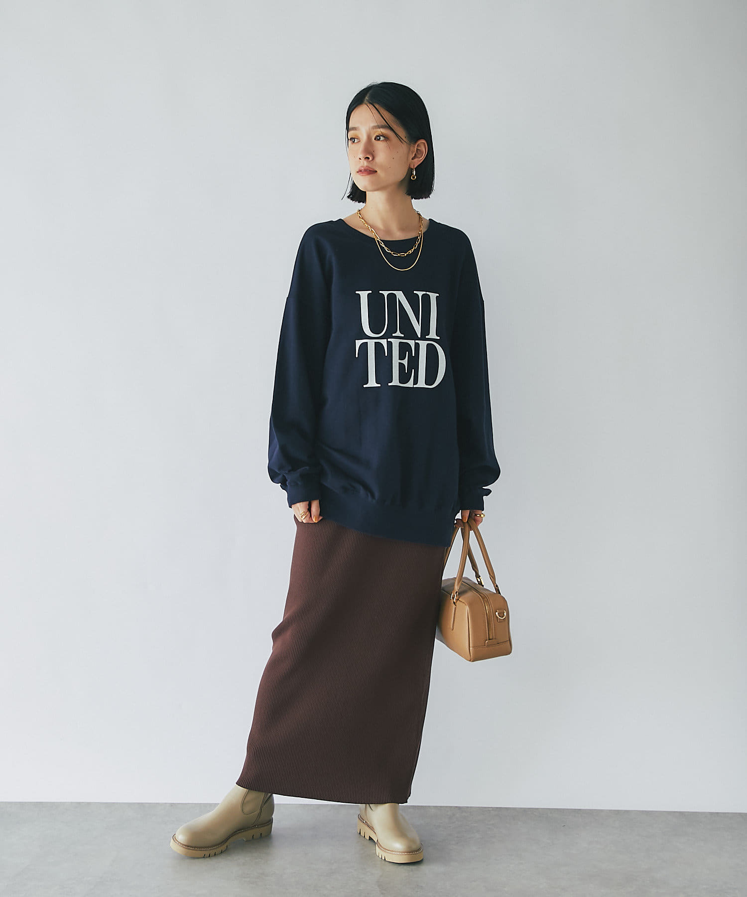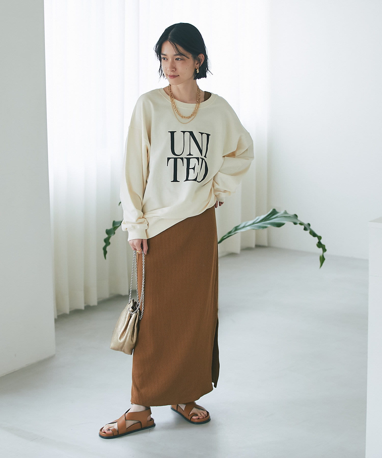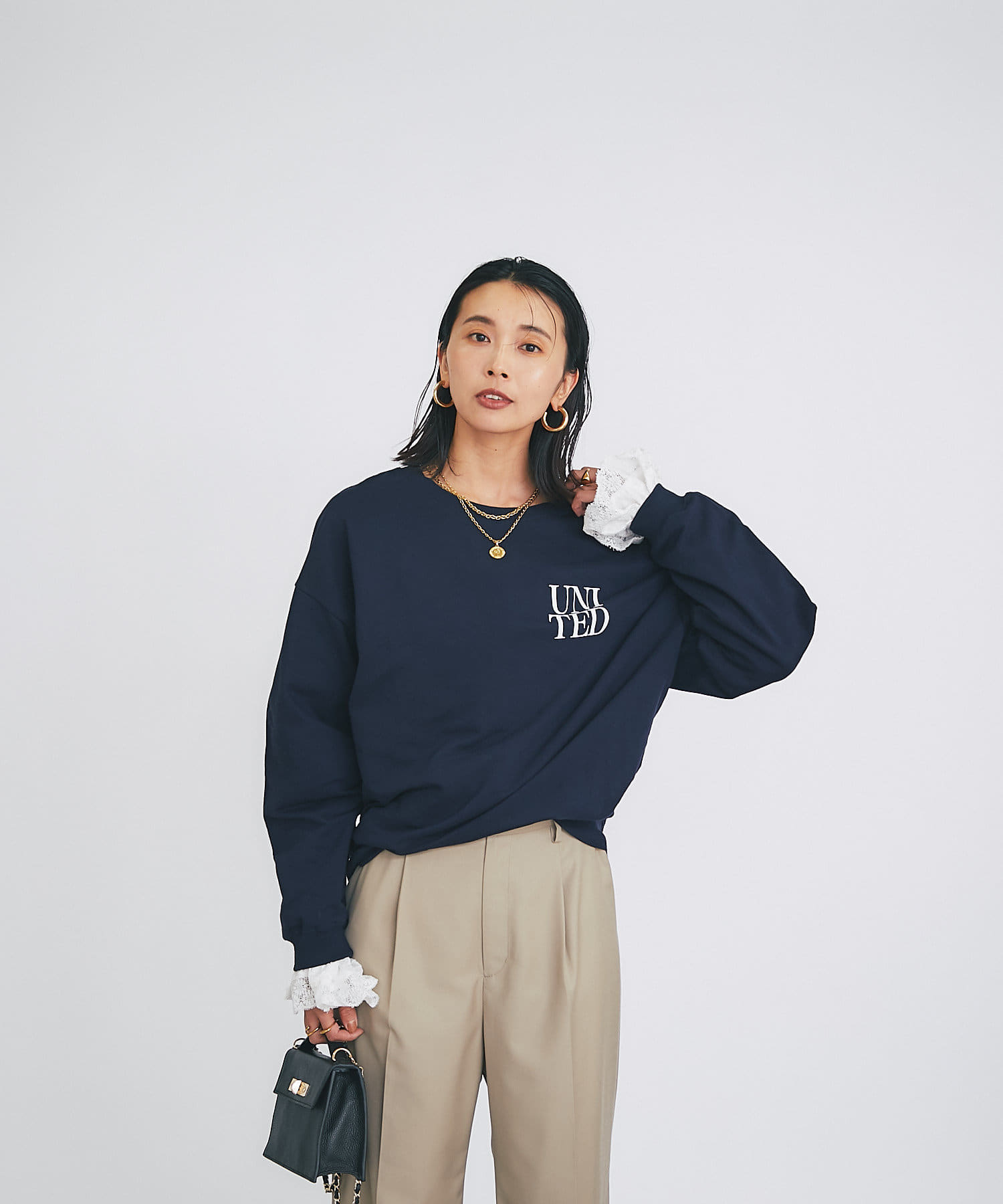 柔らかく落ち感のある生地なので、ボリュームが出すぎずスタイリングしやすいカットソーです。