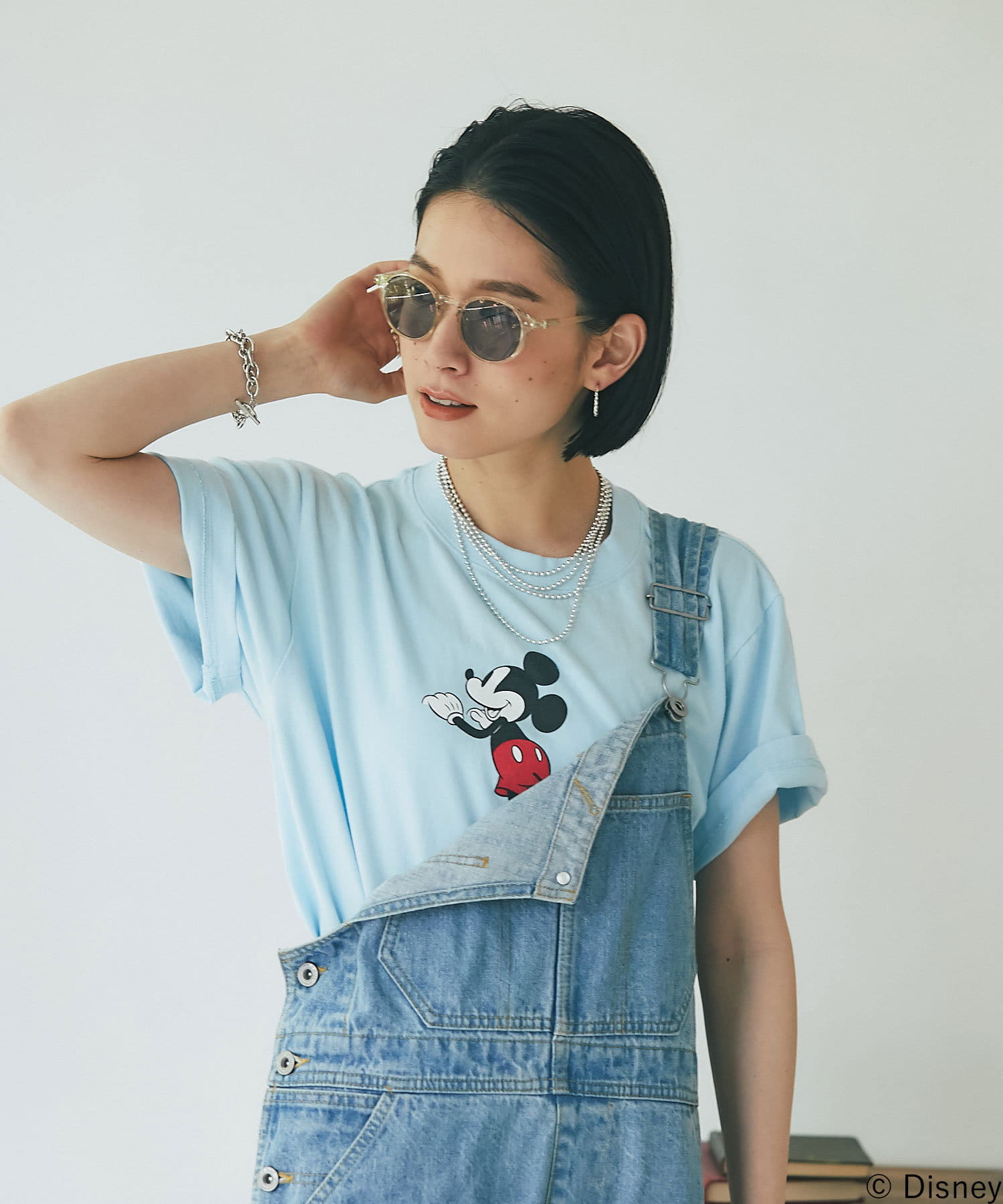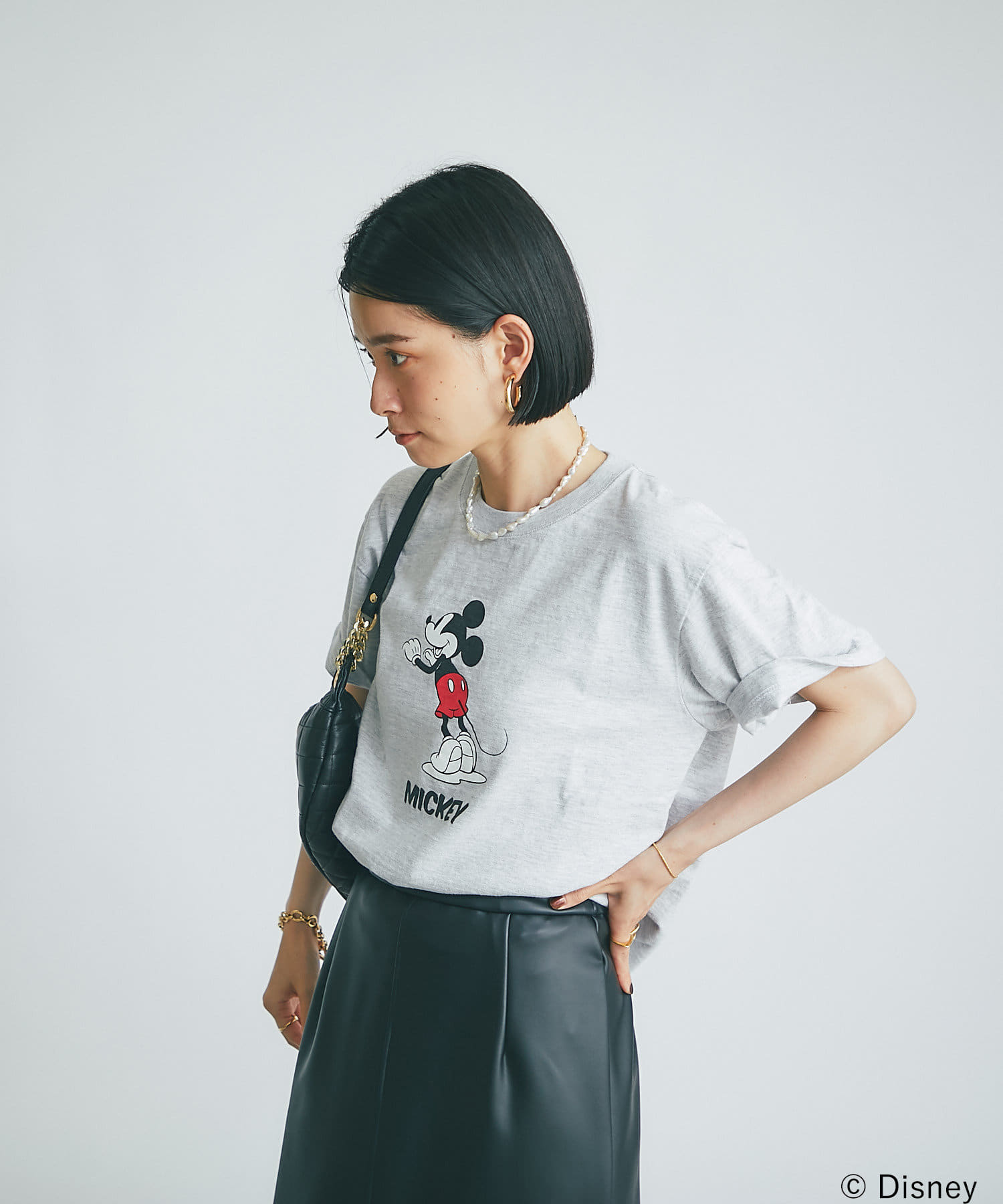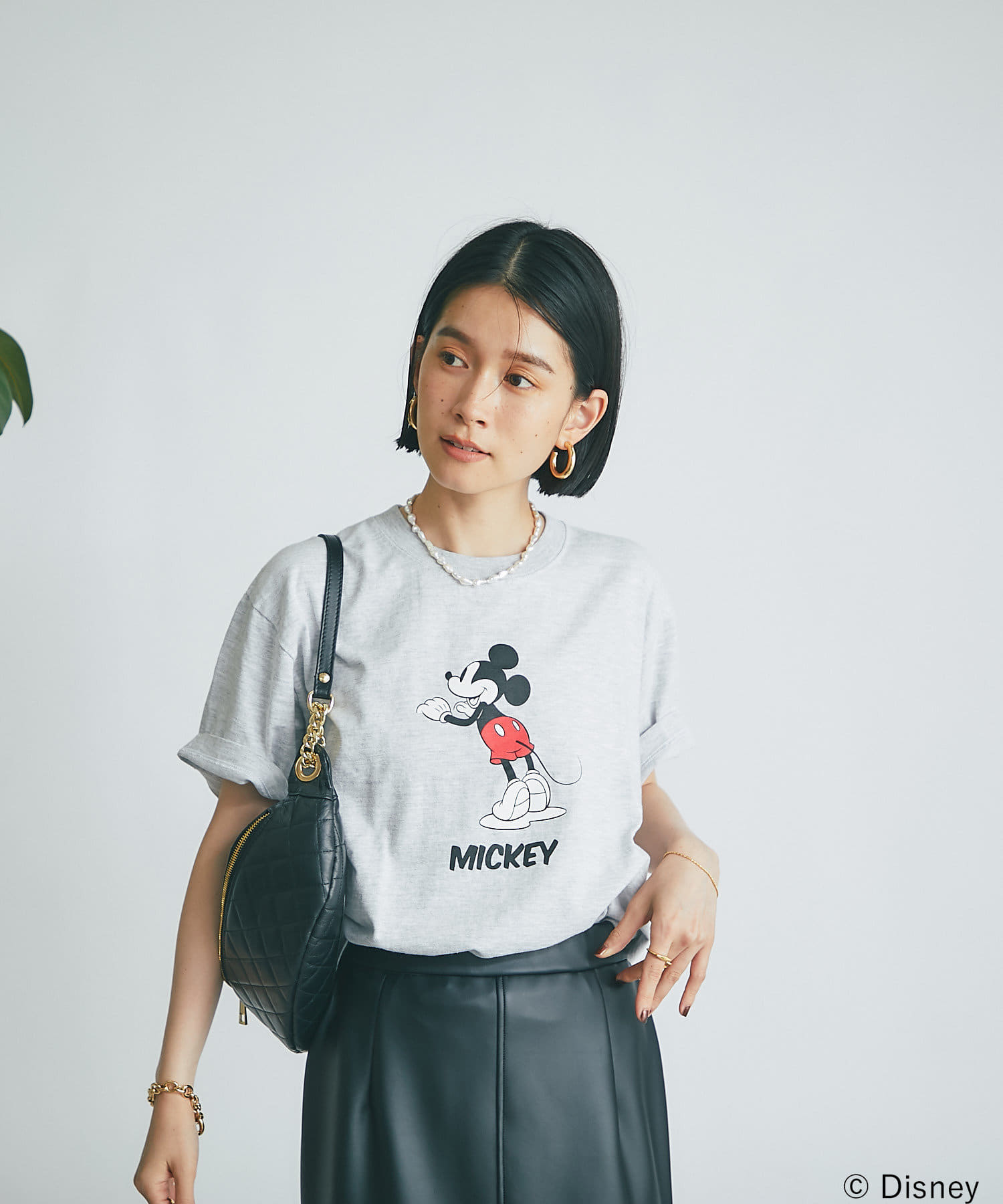 大人が着やすい、こなれ感のあるミッキープリントtee。