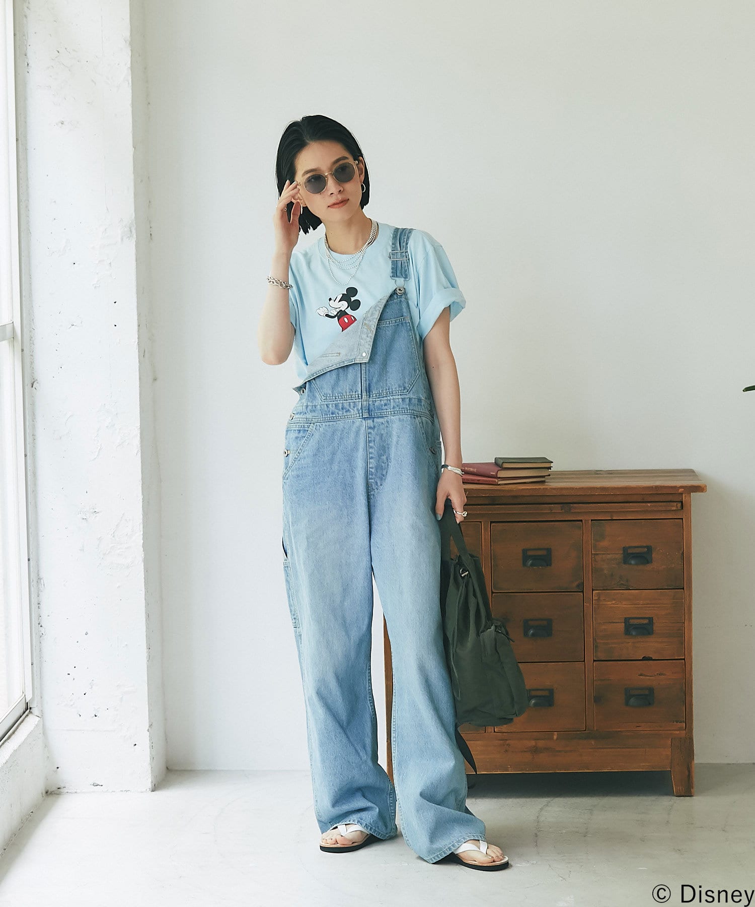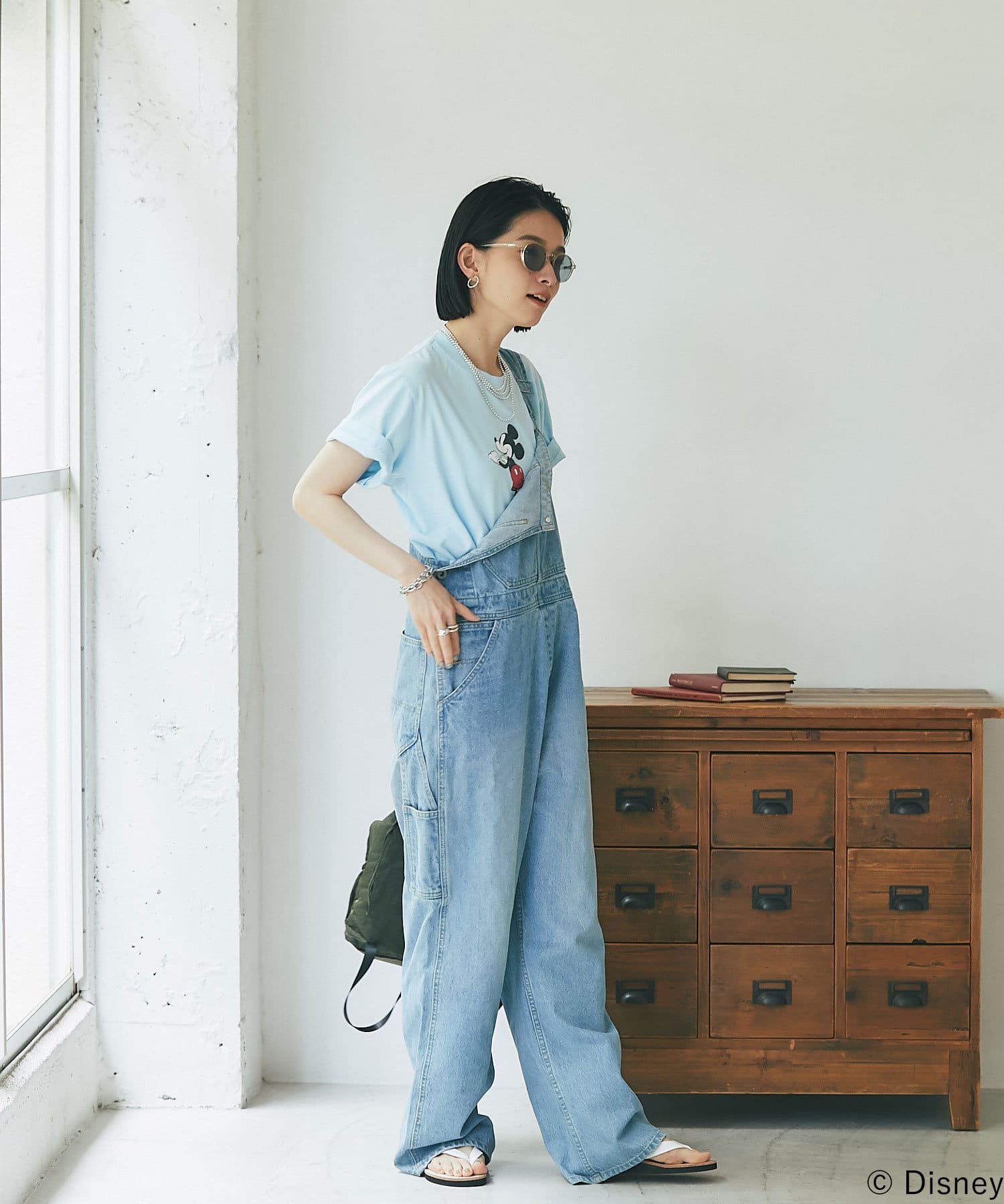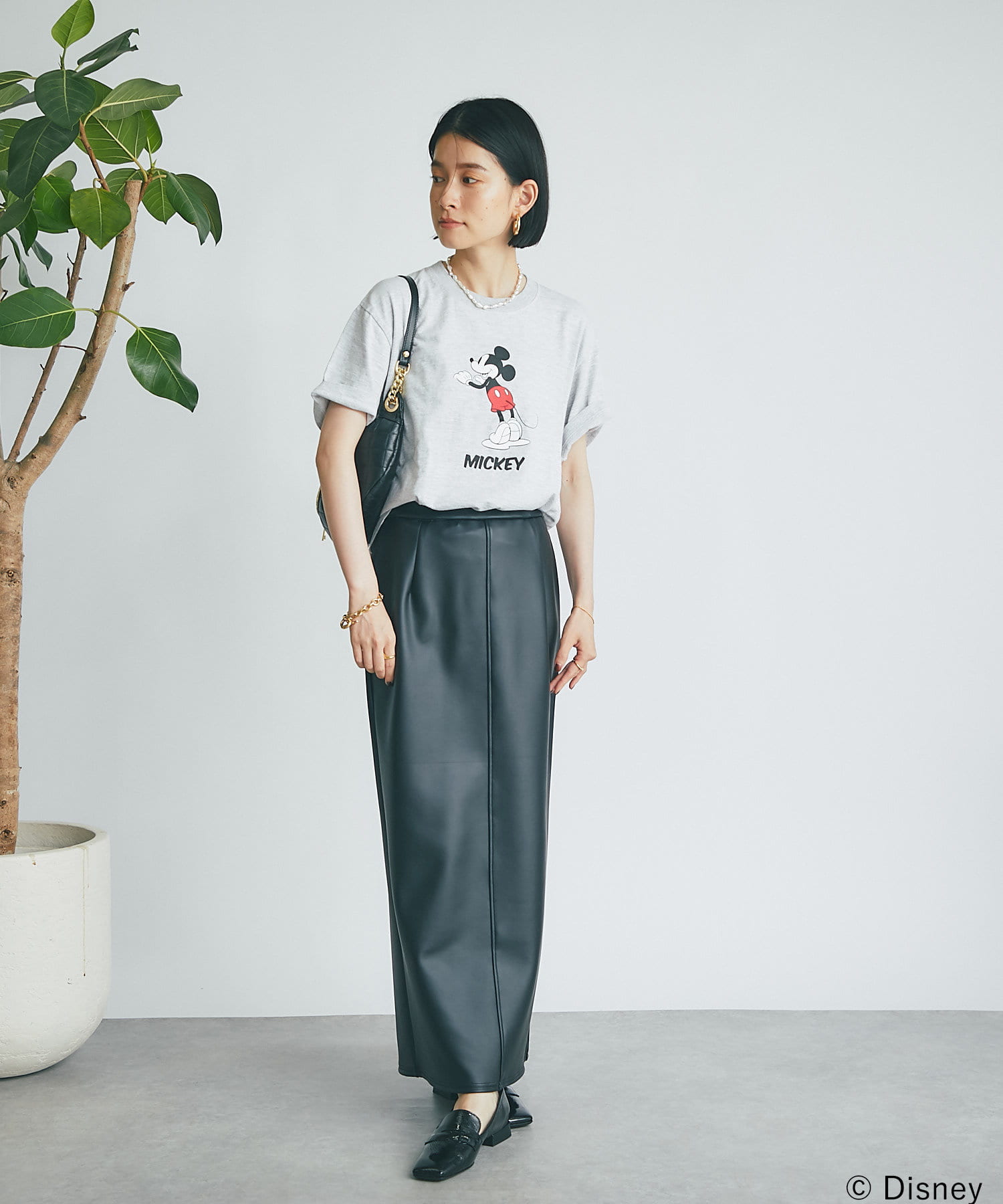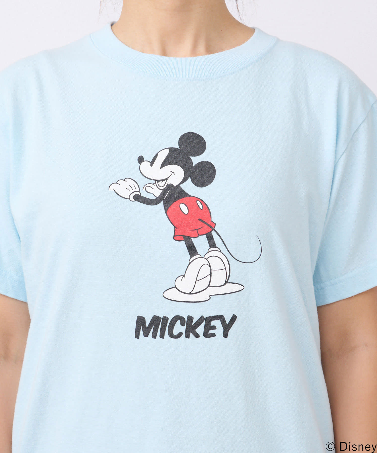 大人が着やすい、こなれ感のあるミッキープリントtee。