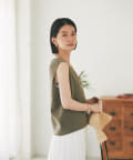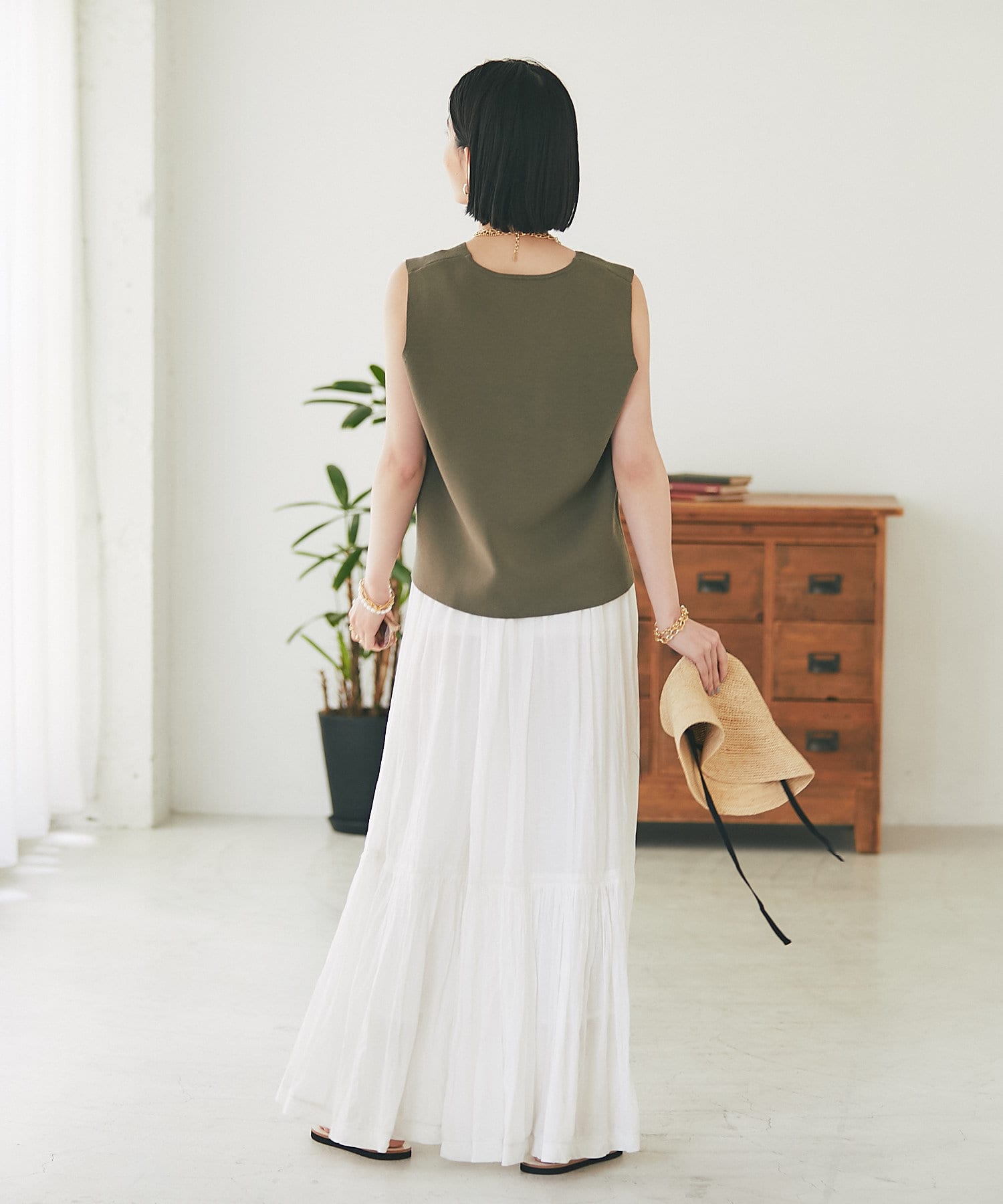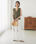 一枚で着用する際は見えても良いキャミソールやタンクトップを合わせて。