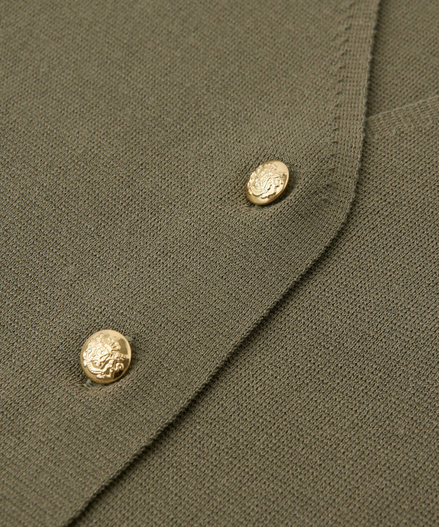 金ボタンがトラッドで上品見えしてくれるので、一枚で着ても様になります。
