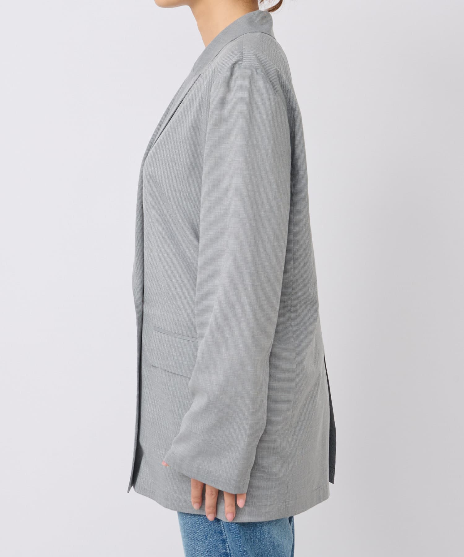 細身の衿とスッキリ&ボクシーなシルエットでボリュームスカートとの相性もよく、甘さを引き締めるのにもピッタリです。
