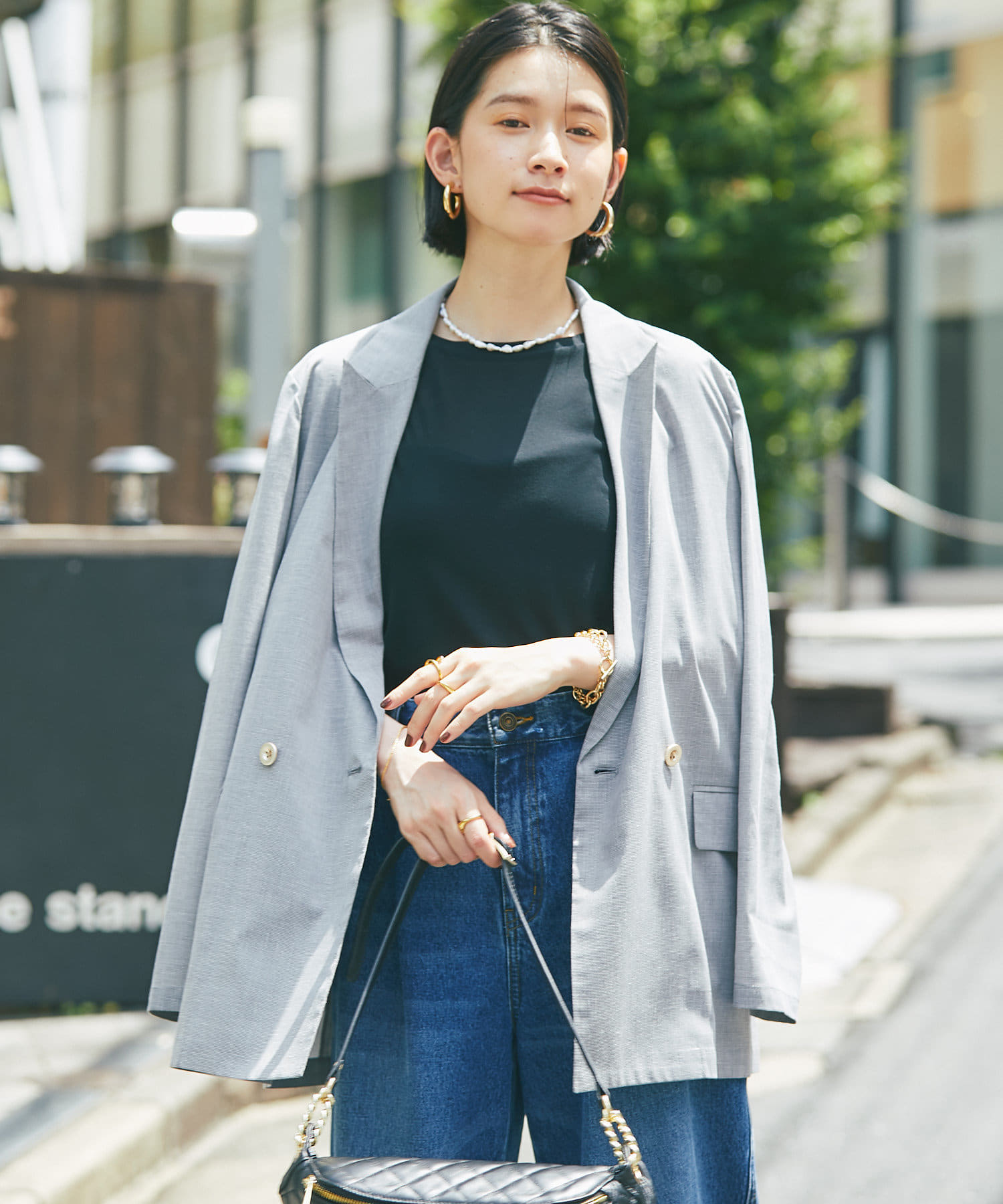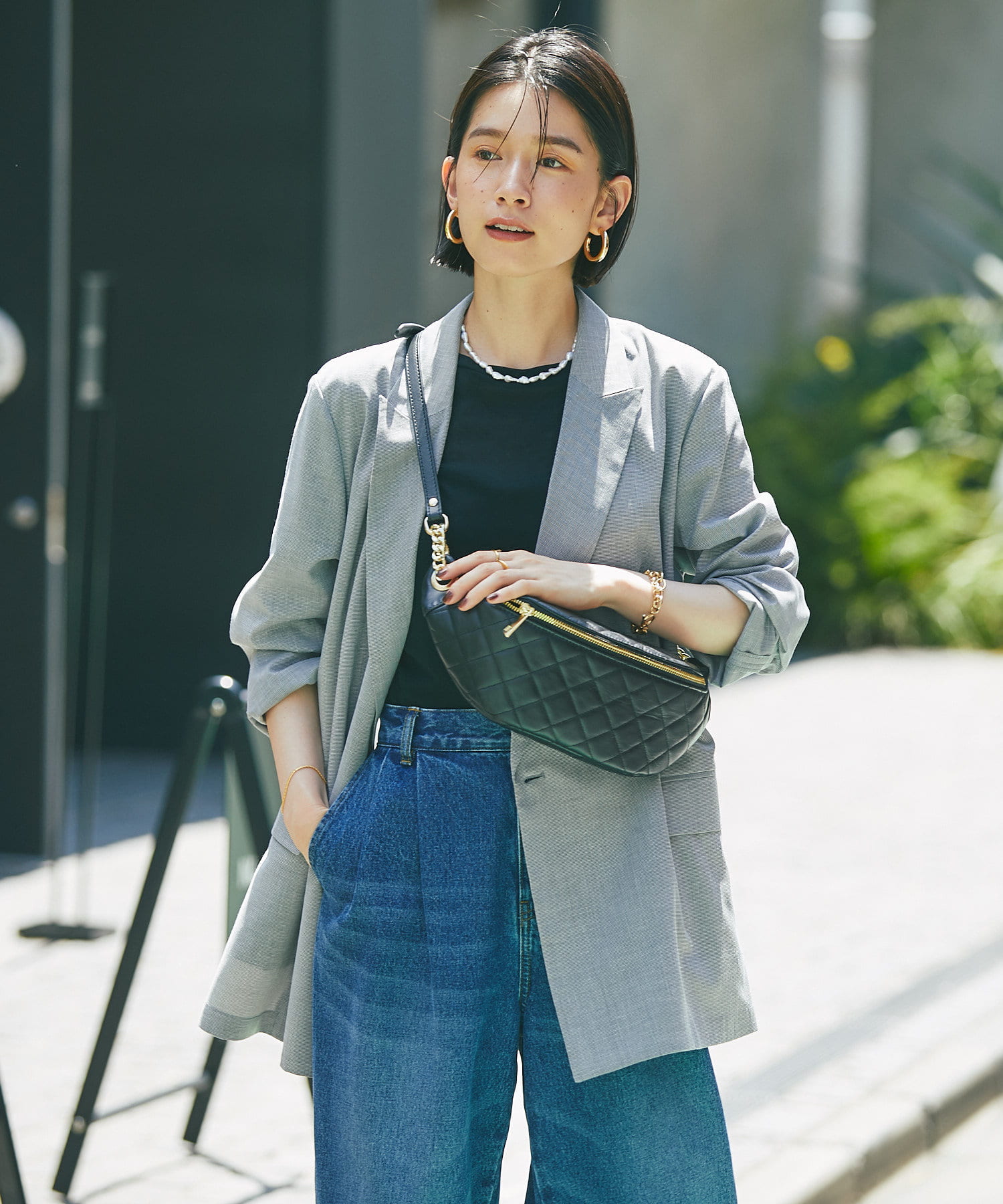 カットソー&デニムなどシンプルなコーディネートにプラスすれば、今季トレンドのメンスライクで抜け感のあるコーディネートに。