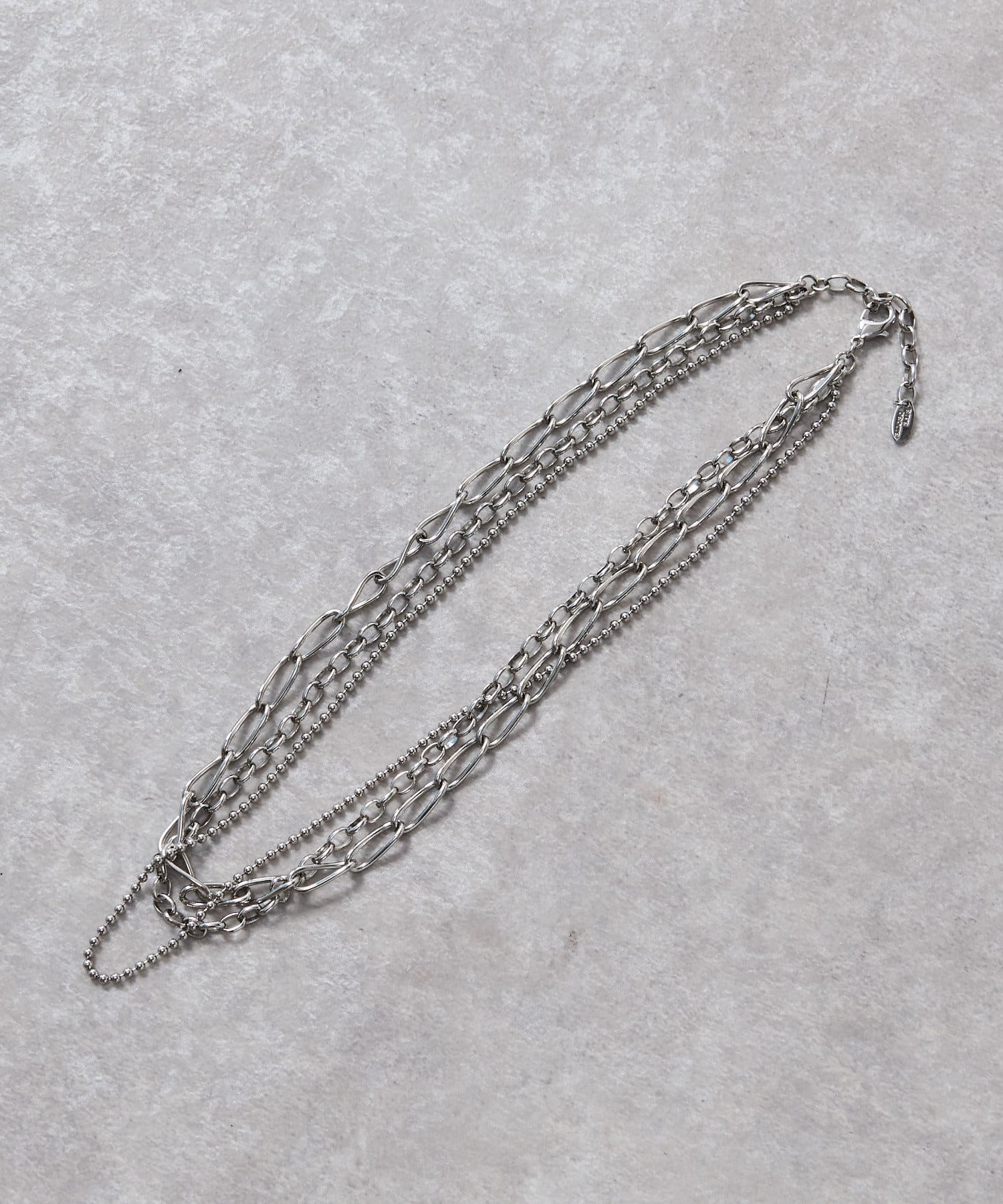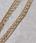 デザインの異なる3つのチェーンを、じゃらっと重ね付けしたようなネックレス。