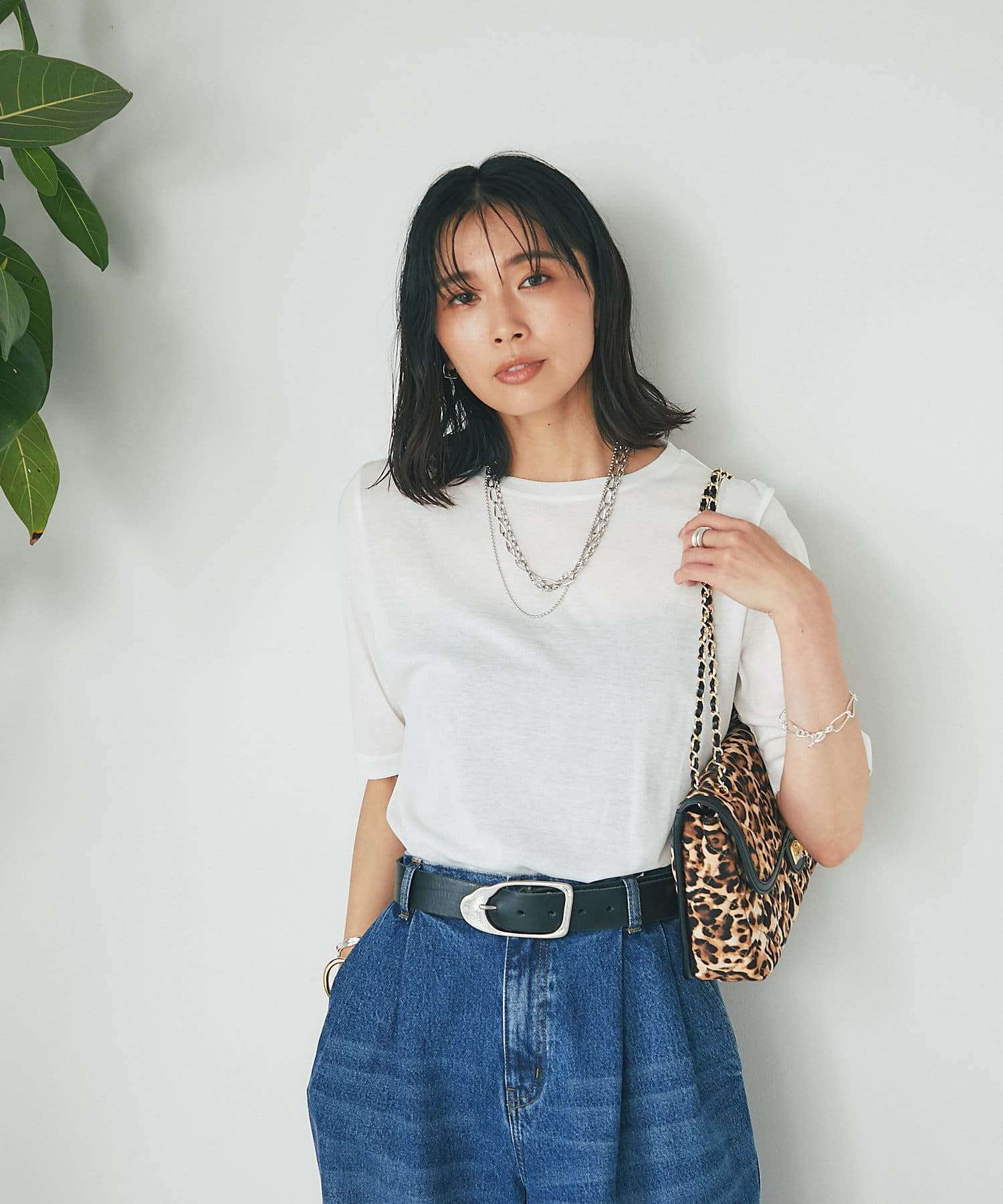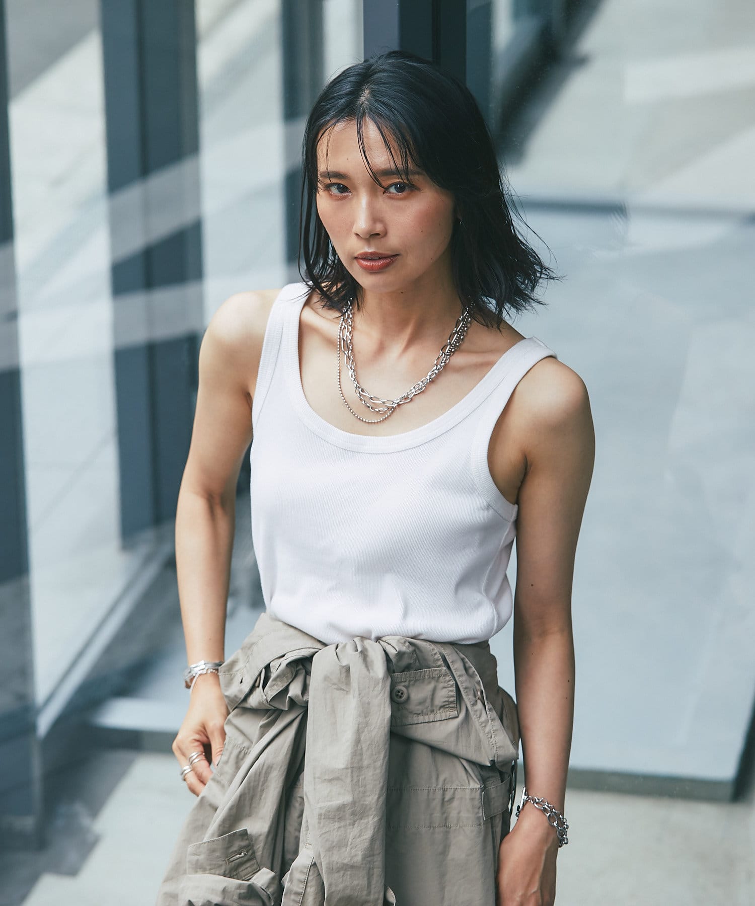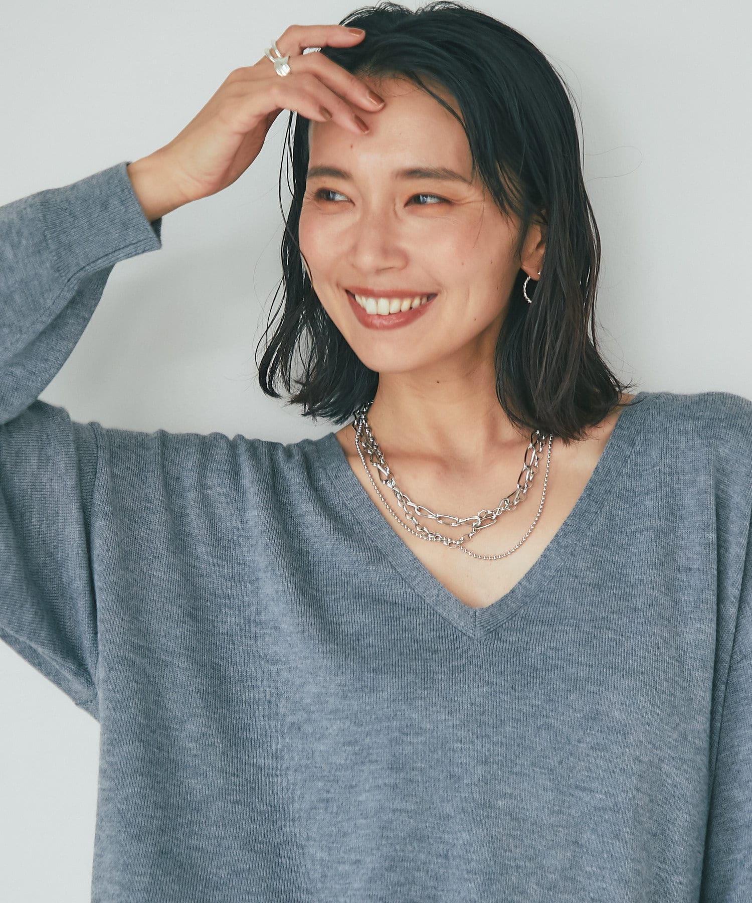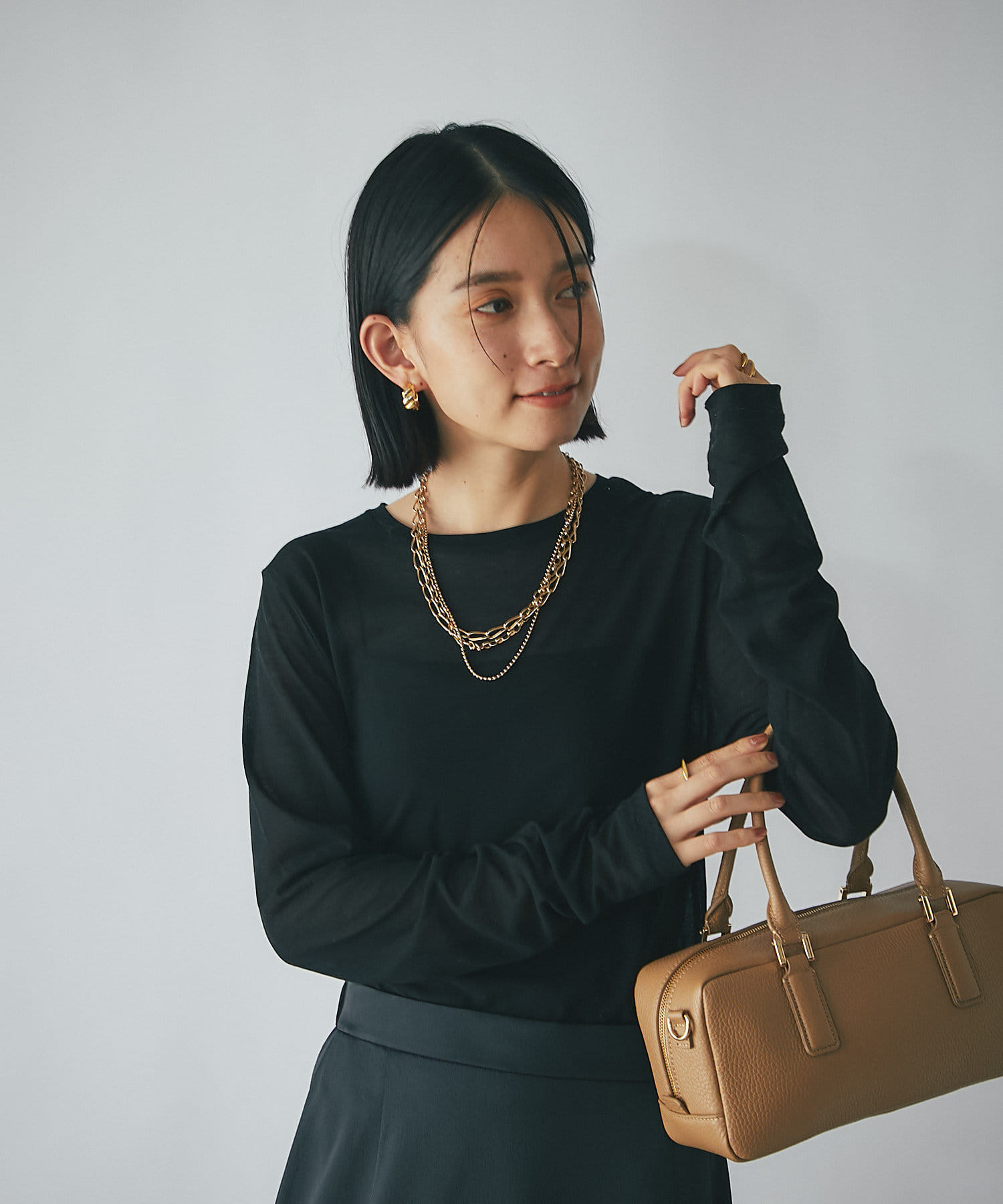 ネックラインの種類を選ばず、シンプルな服をアップデートする万能タイプのネックレス。